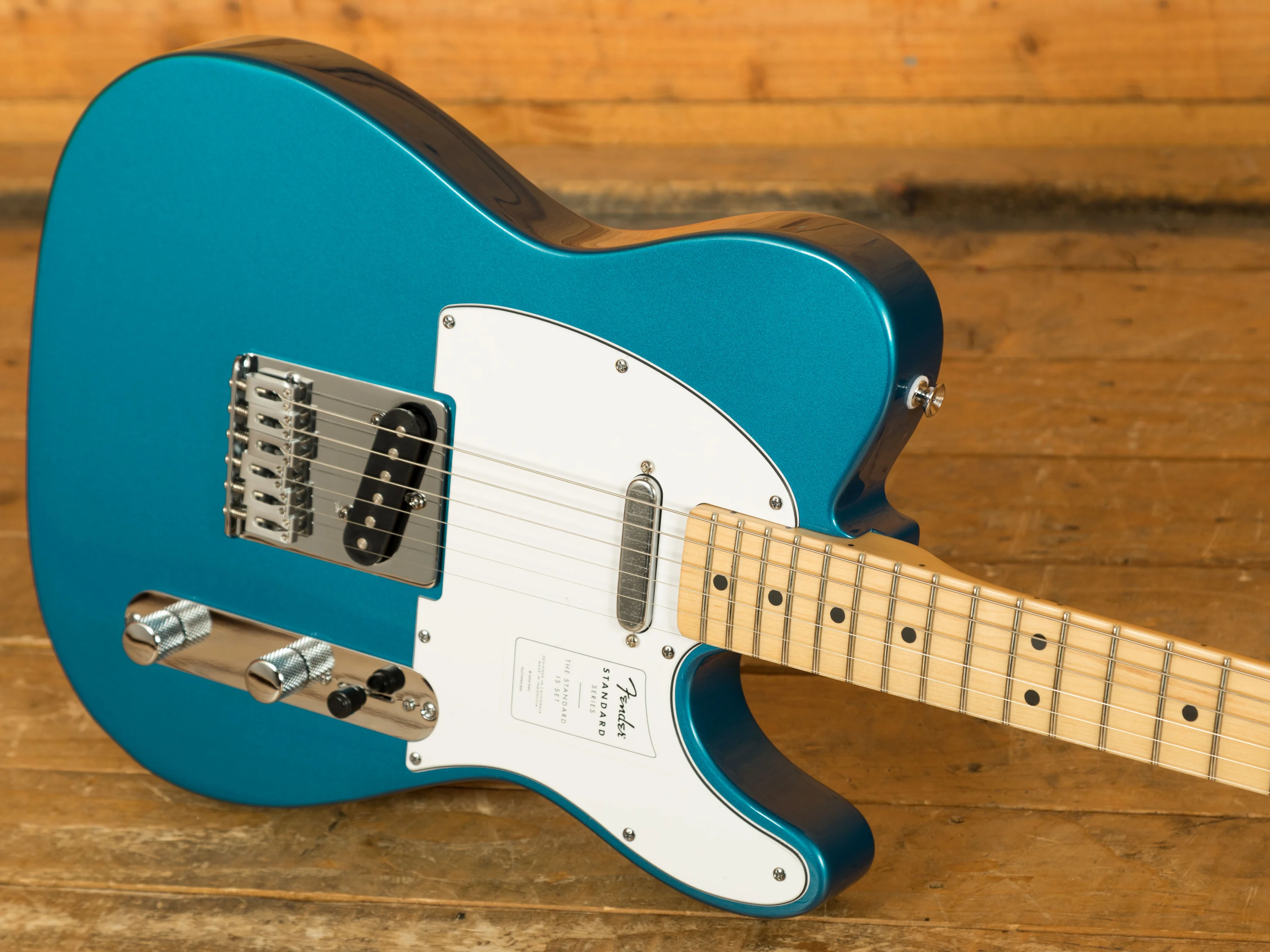The Standard Telecaster's body is crafted from poplar, a tonewood known for its balanced tonal characteristics and lightweight nature. This makes the guitar comfortable to play for extended periods, whether rehearsing for hours or performing on stage. The gloss finish not only enhances the guitar's visual appeal but also provides a durable protective layer.