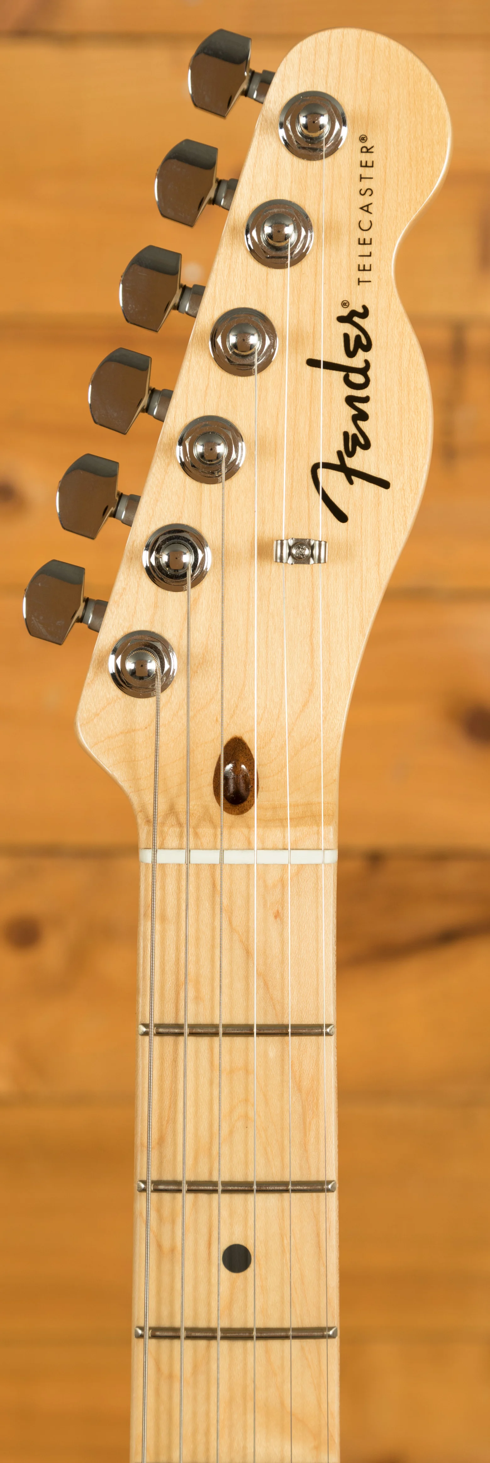 The neck of the Standard Telecaster features a comfortable "Modern C" profile. This shape is designed to fit comfortably in the player's hand, promoting smooth and effortless playing. The satin finish on the maple neck further enhances playability by reducing friction and providing a smooth, fast feel. The 9.5" fingerboard radius offers a comfortable balance between chording and bending, catering to a wide range of playing styles.