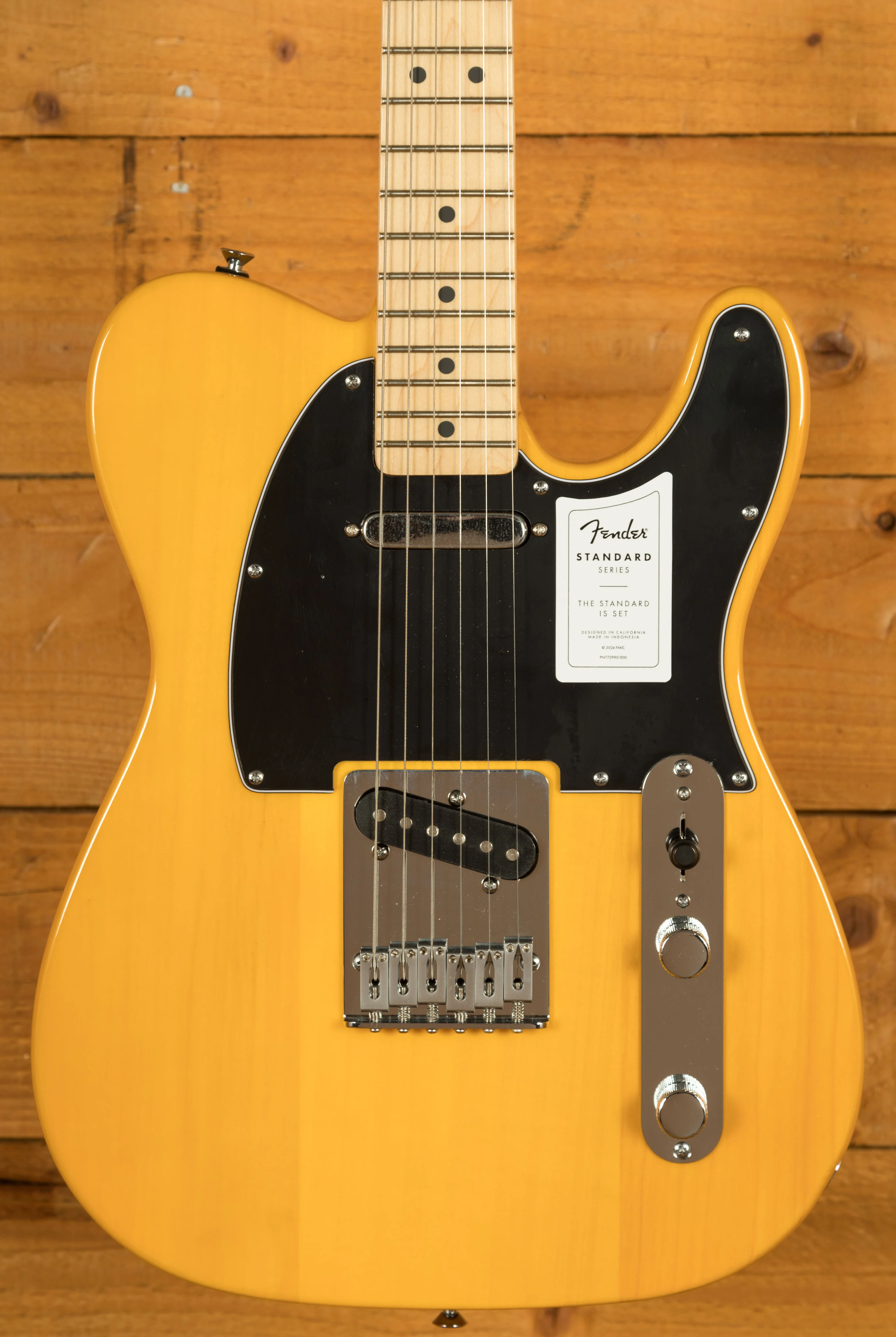 The Standard Telecaster's body is crafted from poplar, a tonewood known for its balanced tonal characteristics and lightweight nature. This makes the guitar comfortable to play for extended periods, whether rehearsing for hours or performing on stage. The gloss finish not only enhances the guitar's visual appeal but also provides a durable protective layer.