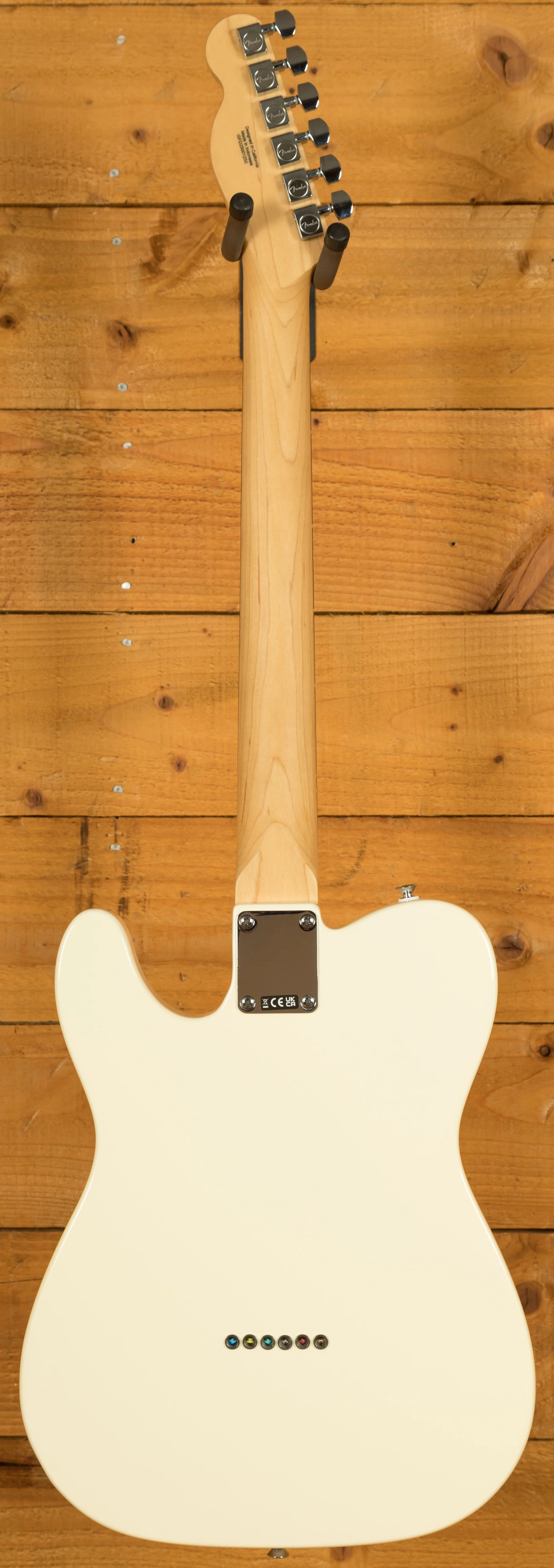 The string-through-body Tele bridge with satin chrome saddles is a key component of the Telecaster's iconic tone and sustain. This design allows for optimal transfer of string vibrations to the body, resulting in a resonant and full sound. The satin chrome saddles provide smooth string contact and contribute to the guitar's overall aesthetic appeal.