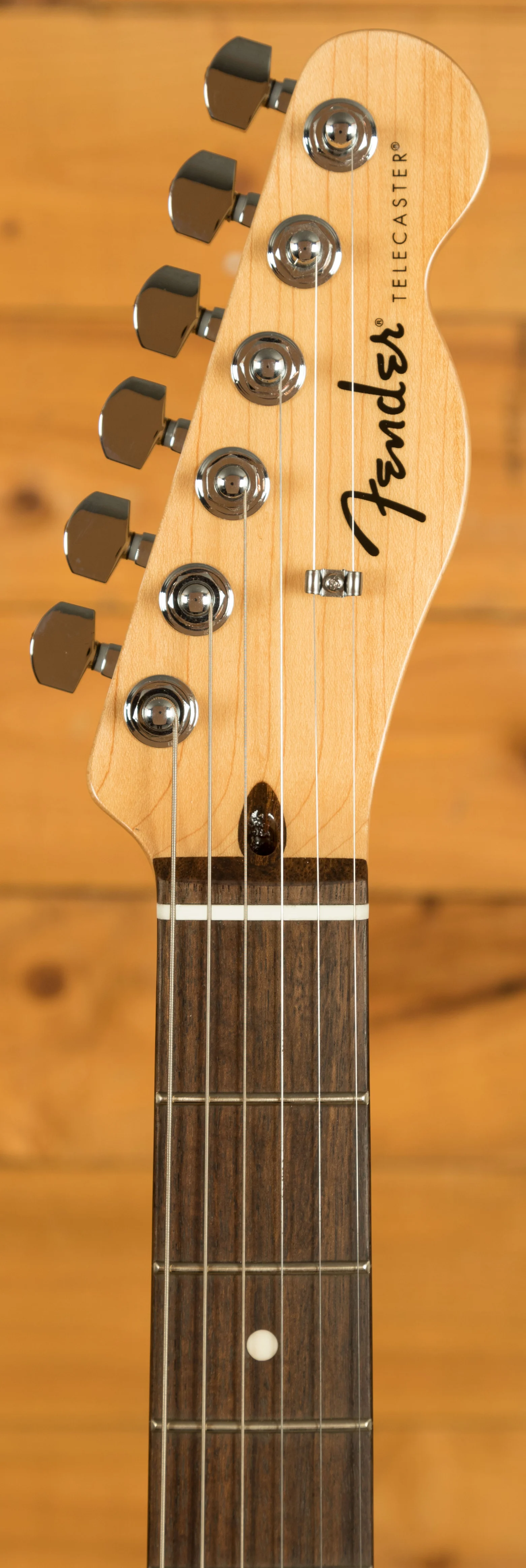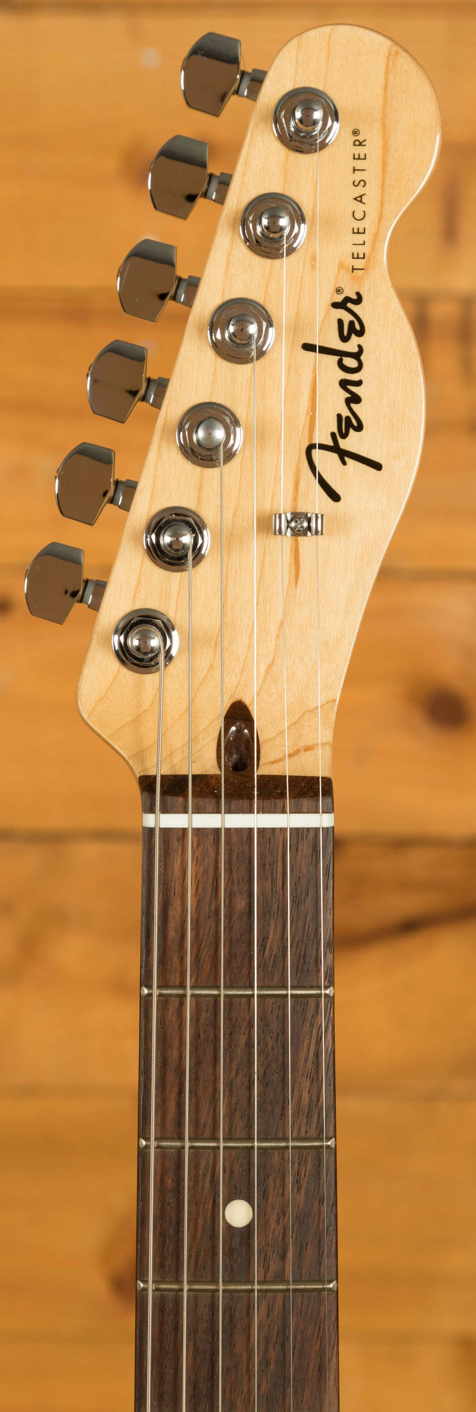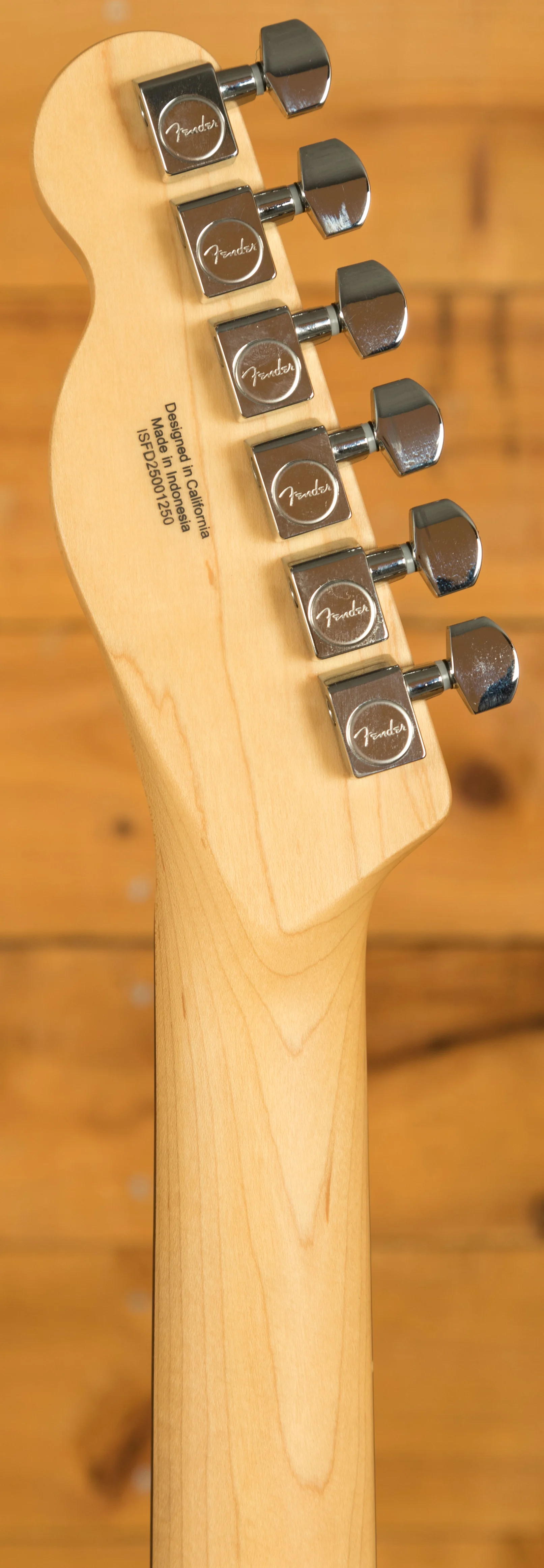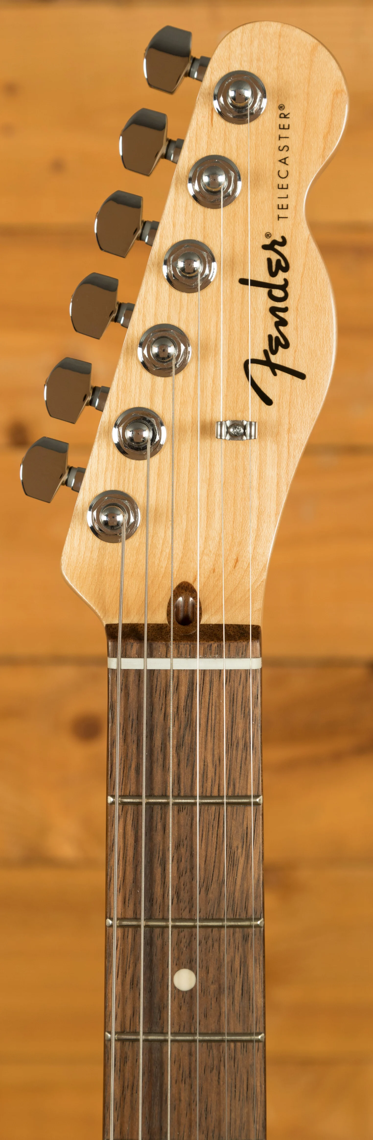 The neck of the Standard Telecaster features a comfortable "Modern C" profile. This shape is designed to fit comfortably in the player's hand, promoting smooth and effortless playing. The satin finish on the maple neck further enhances playability by reducing friction and providing a smooth, fast feel. The 9.5" fingerboard radius offers a comfortable balance between chording and bending, catering to a wide range of playing styles.