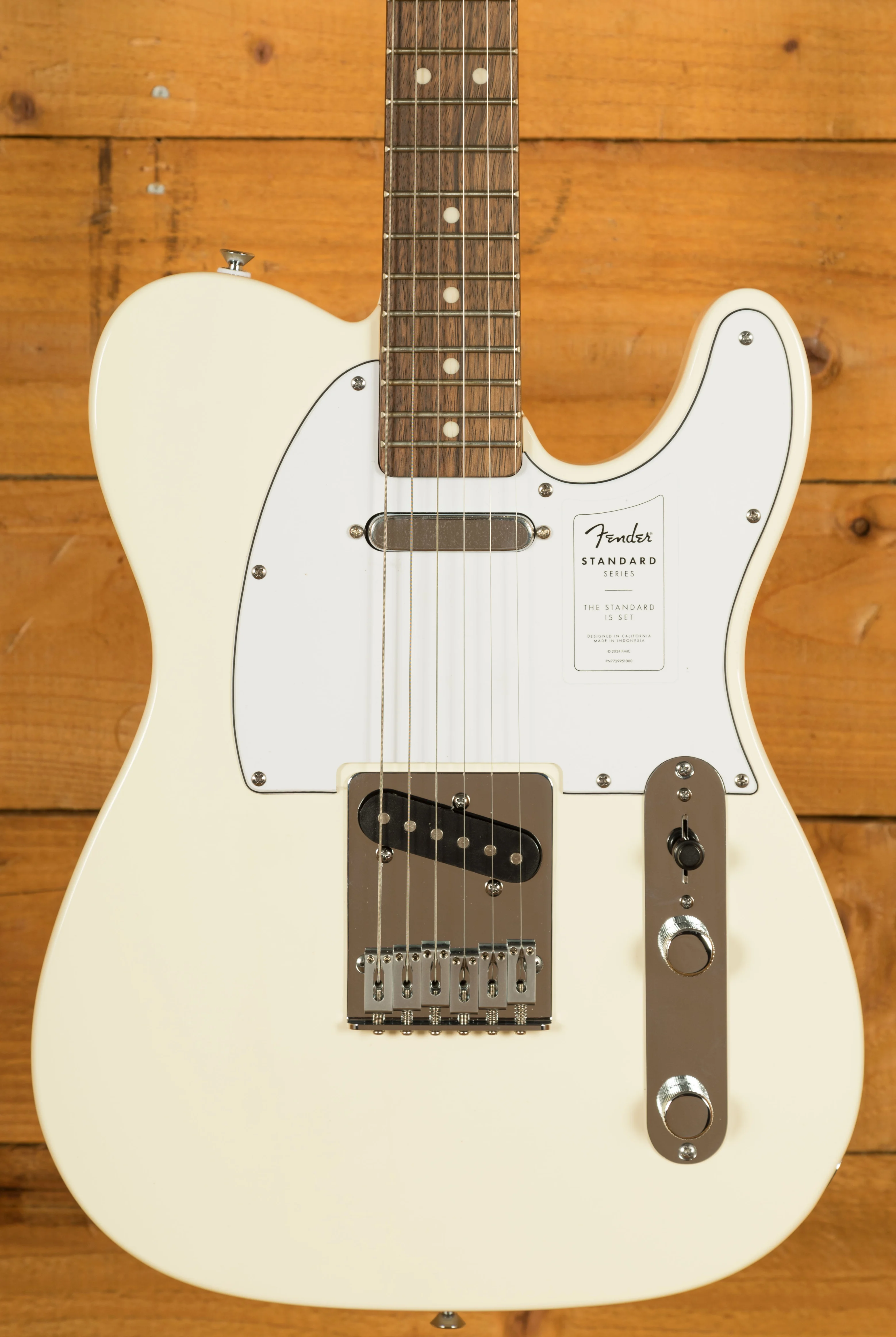 The Standard Telecaster's body is crafted from poplar, a tonewood known for its balanced tonal characteristics and lightweight nature. This makes the guitar comfortable to play for extended periods, whether rehearsing for hours or performing on stage. The gloss finish not only enhances the guitar's visual appeal but also provides a durable protective layer.