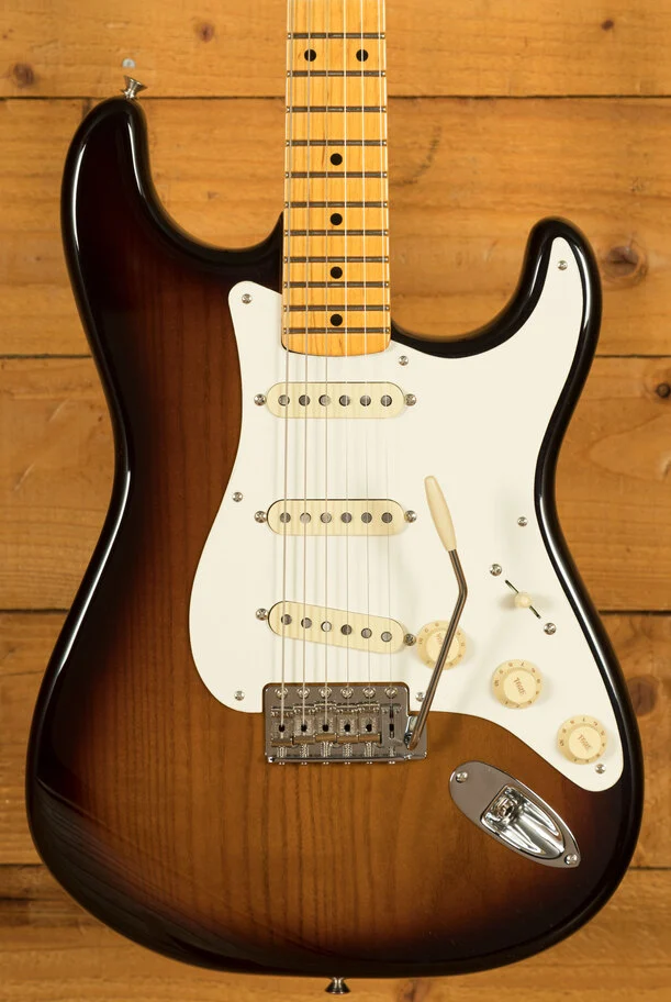 Eric Johnson, a renowned figure in the electric guitar community, possessed his 1954 "Virginia" Stratocaster during the creation of groundbreaking albums like Tones and the Platinum Ah Via Musicom. Today, Eric remains an influential force, continuously releasing exceptional music and captivating audiences worldwide. In 2020, Fender Custom Shop and the Fender Corona Production line will reproduce Eric's 1954 Virginia Stratocaster in limited quantities. Featuring a rare rift/quartersawn sassafras body, lacquer finish, custom wiring, and more, the Eric Johnson 1954 Virginia Stratocaster promises to delight both players and collectors with its unique aesthetics and exceptional sound.