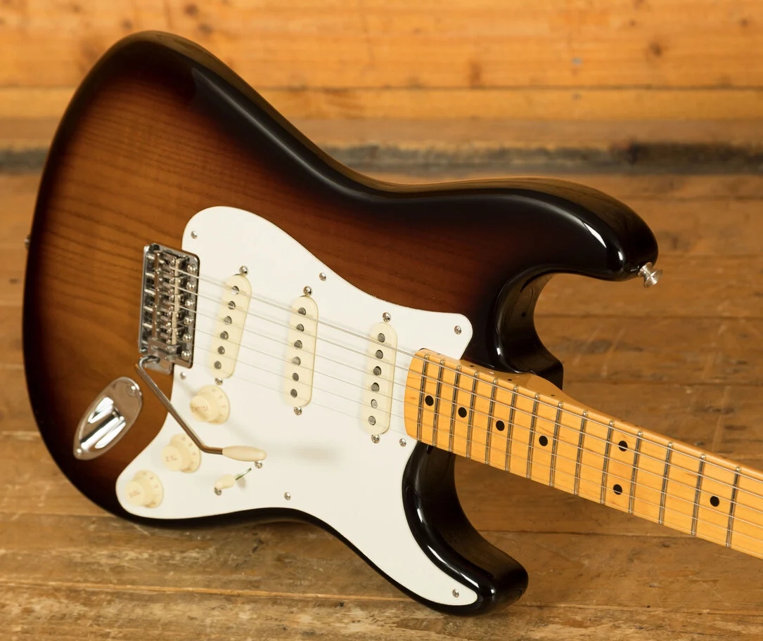 Equipped with a custom pickup configuration, including a DiMarzio HS-2 stacked humbucking pickup and a pair of Fender 57/62 pickups, this guitar captures Eric Johnson's signature tone while offering versatility. The custom wiring ensures that the middle and neck pickups are out of phase with the bridge pickup, providing access to Johnson's unique "koto" tone in position two.