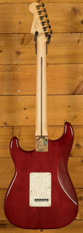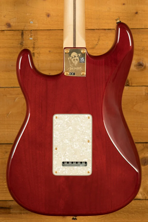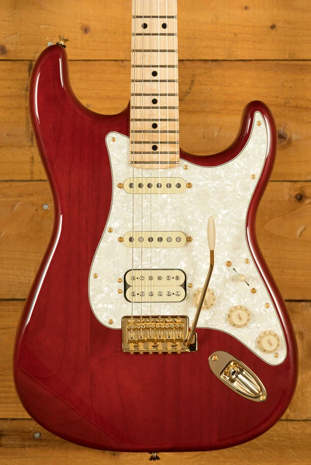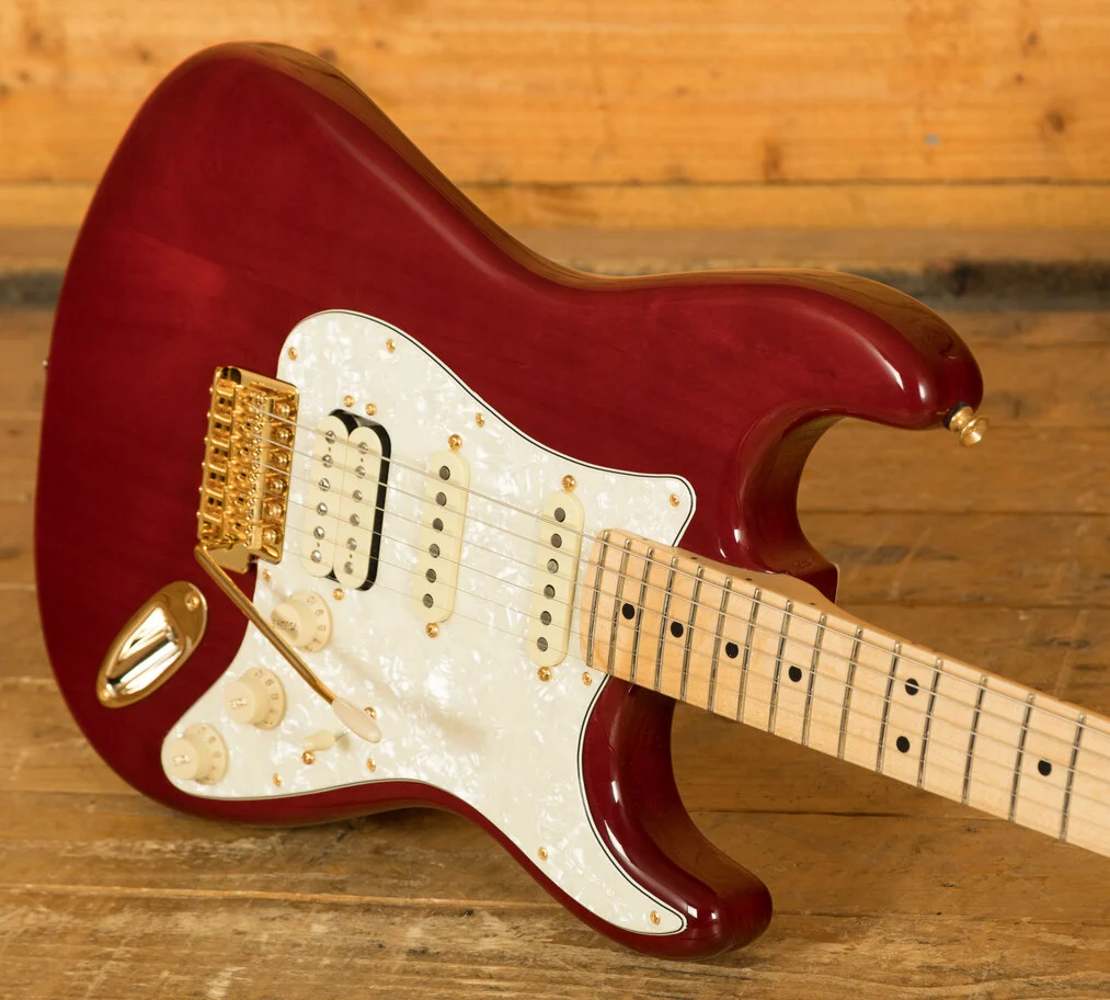 Constructed with an Alder body paired with a Maple neck and fingerboard, you know your in for some serious tone when these woods come together, Finished in a gorgeous transparent cherry with stunning Gold Hardware. This guitar looks awesome and is sure to turn a heads in amazement.