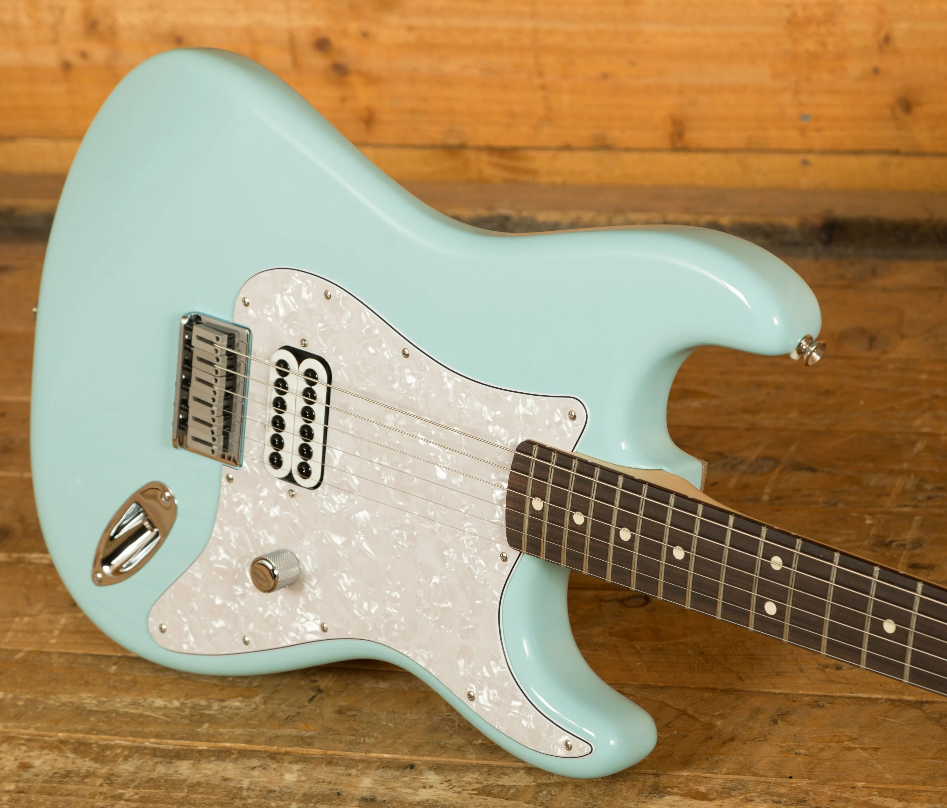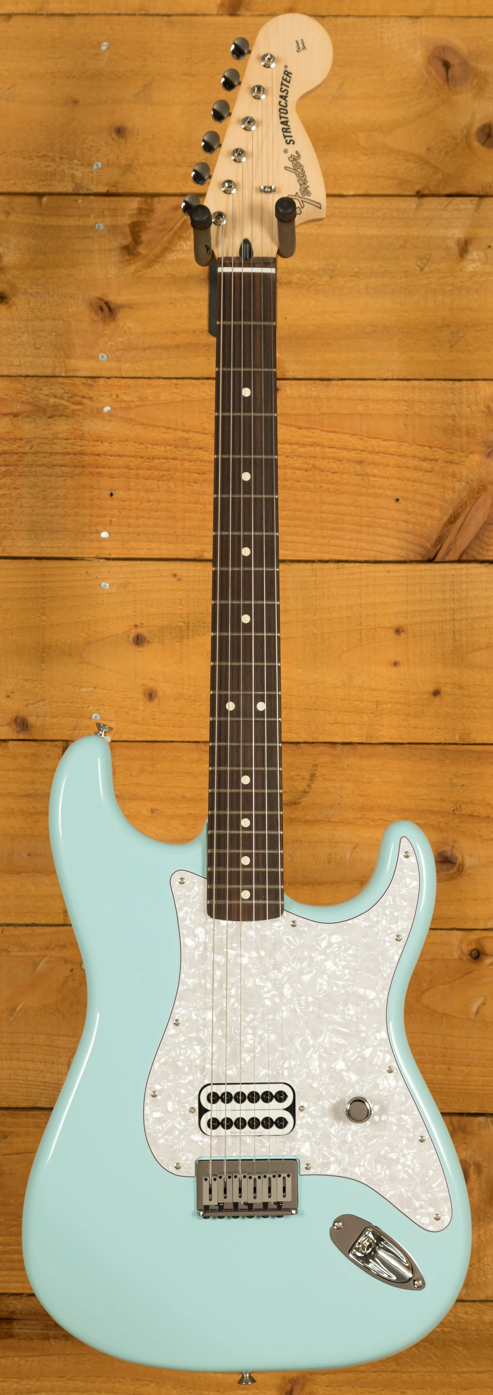 Tom DeLonge is one of the most influential guitarists of his generation. Best Known for his work with Blink-182 and Angel & Airwaves his playing takes no prisoners and has truly inspired a whole generation. This Limited Edition Strat benefits from an Alder body, typically well balanced and comfortable, as all Strat's are, its a real player friendly instrument. It's super resonant and offers punchy mids and robust lows with flawless precision. Finished in Daphne Blue this Strat looks the real deal and perfectly complements this guitars punk status!