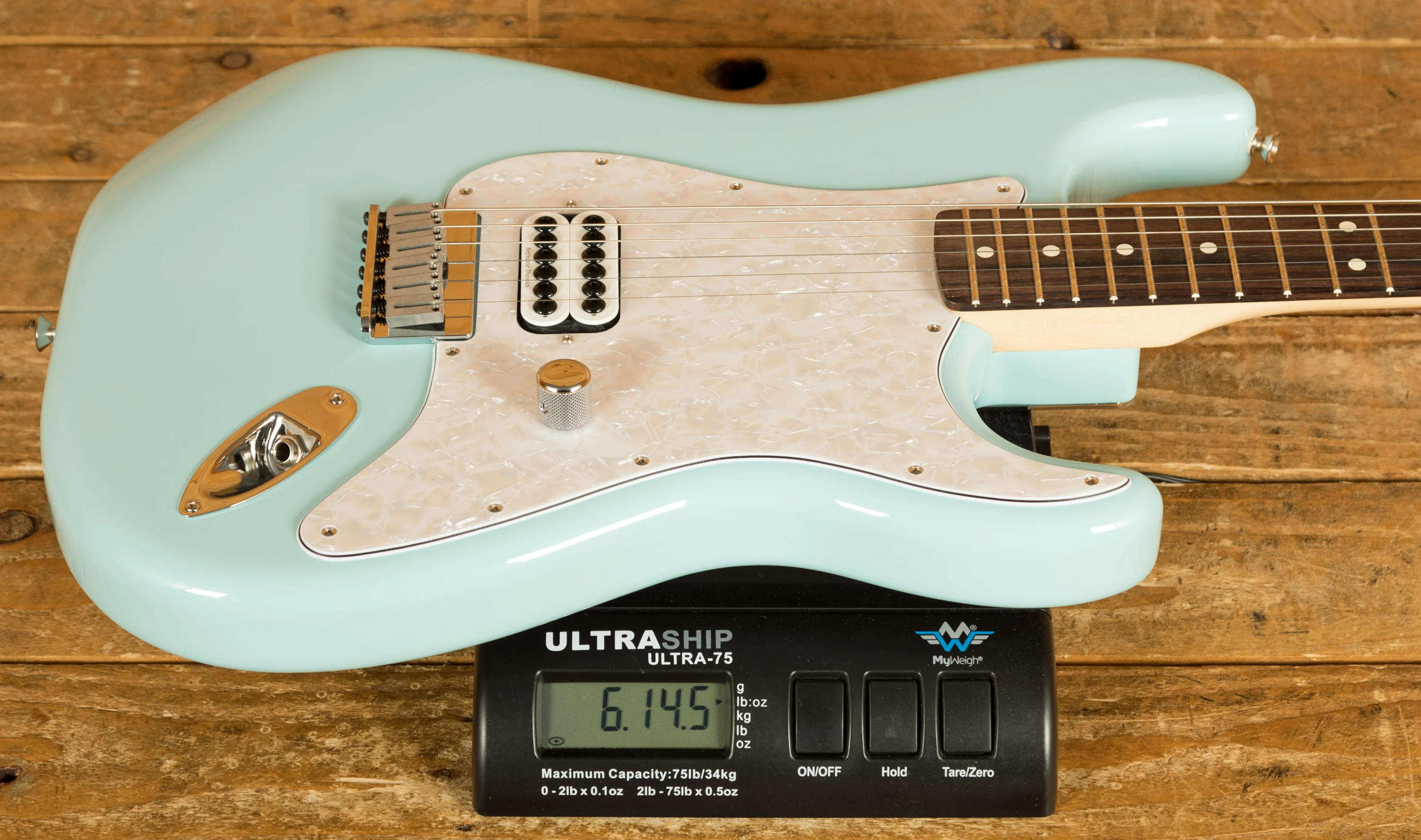 The Tom DeLonge Stratocaster boasts a Seymour Duncan Invader humbucker for immense output and turbo-charged tone that's perfect for chunky power chords and crunchy riffs. But it's not all about power - the streamlined control setup consisting of a single master volume combined with a treble bleed circuit preserves the guitars natural high-end, ensuring sparkly cleans and chime-y edge-of-breakup tones!
