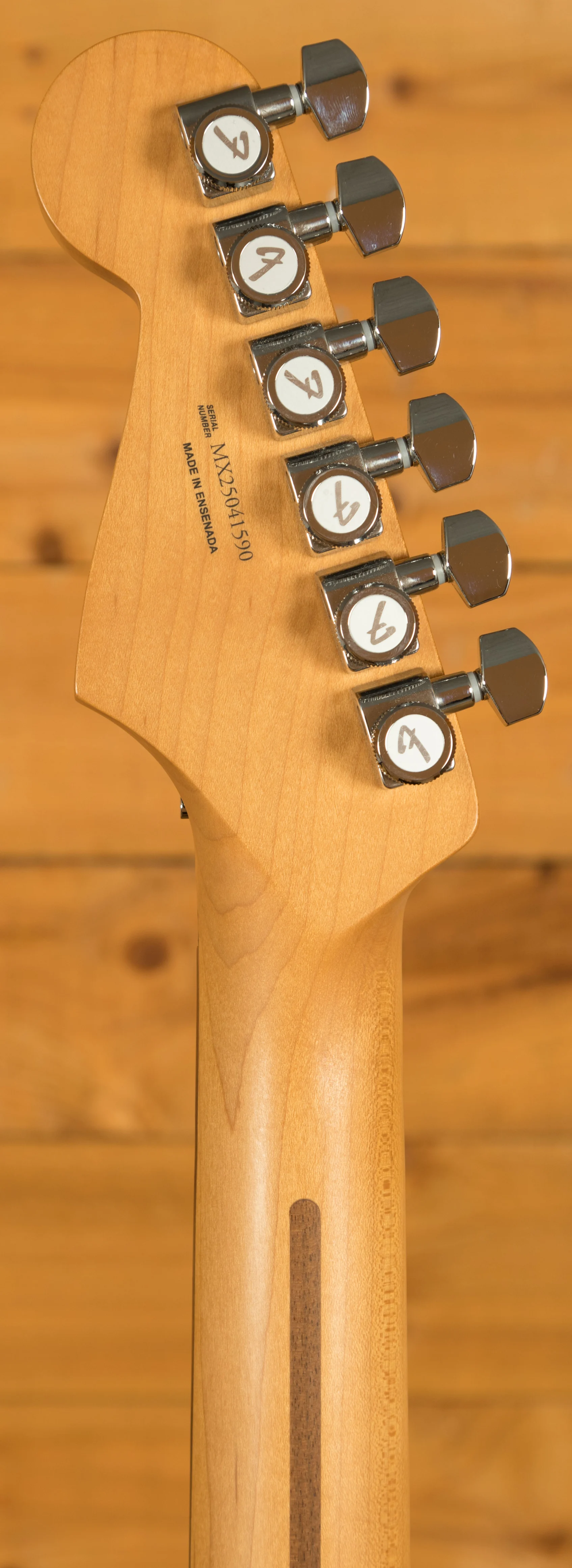 A Modern "C" shape Maple neck provides a comfortable and stable playing platform, adorned with a dark Rosewood fingerboard which features a 9.5"-14" Radius, 22 medium jumbo frets and a 1.675" nut width