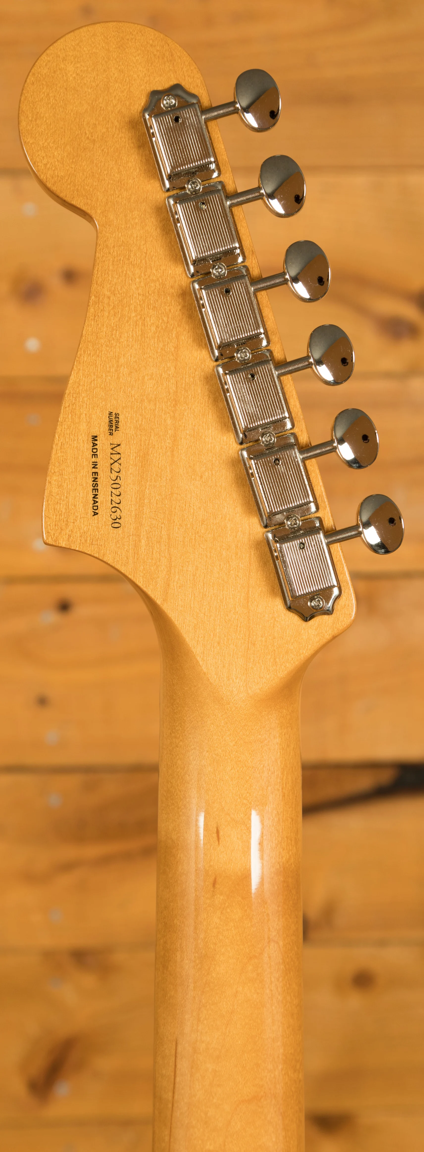 Beneath the surface lies a pair of vintage-style '50s single-coil pickups, faithfully capturing the sweet, sparkling tones that have defined Fender's legacy. The vintage-style floating tremolo system enables players to explore a range of dynamic possibilities, from subtle dives to raucous wails, while the inclusion of vintage-style tuning machines ensures classic aesthetics with enhanced tuning stability.