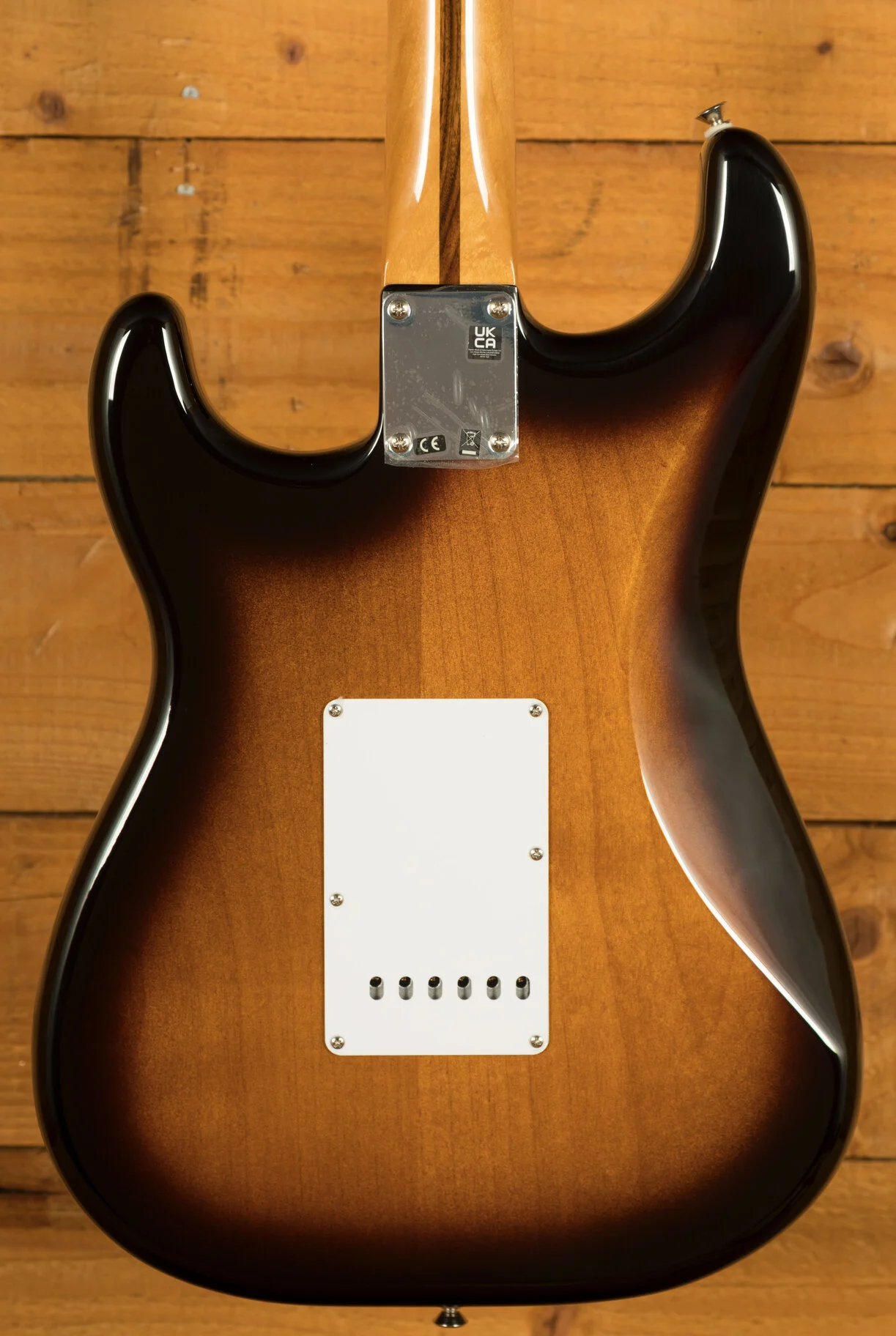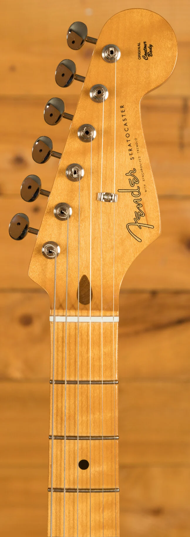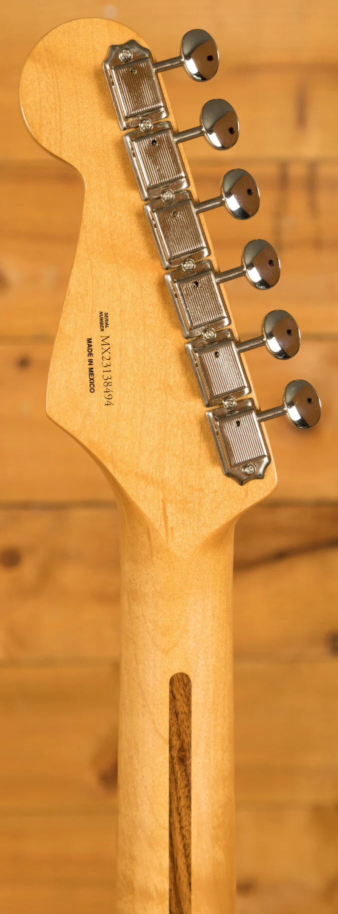 Designed for vintage enthusiasts, the 7.25" radius maple fingerboard boasts vintage-tall frets, offering both comfort and ample room for expressive playing techniques such as big bends and vibrato. Underneath the hood lies a trio of vintage-style '50s pickups, faithfully capturing the sweet, sparkling, warm, and woody tones that have made Fender guitars legendary.