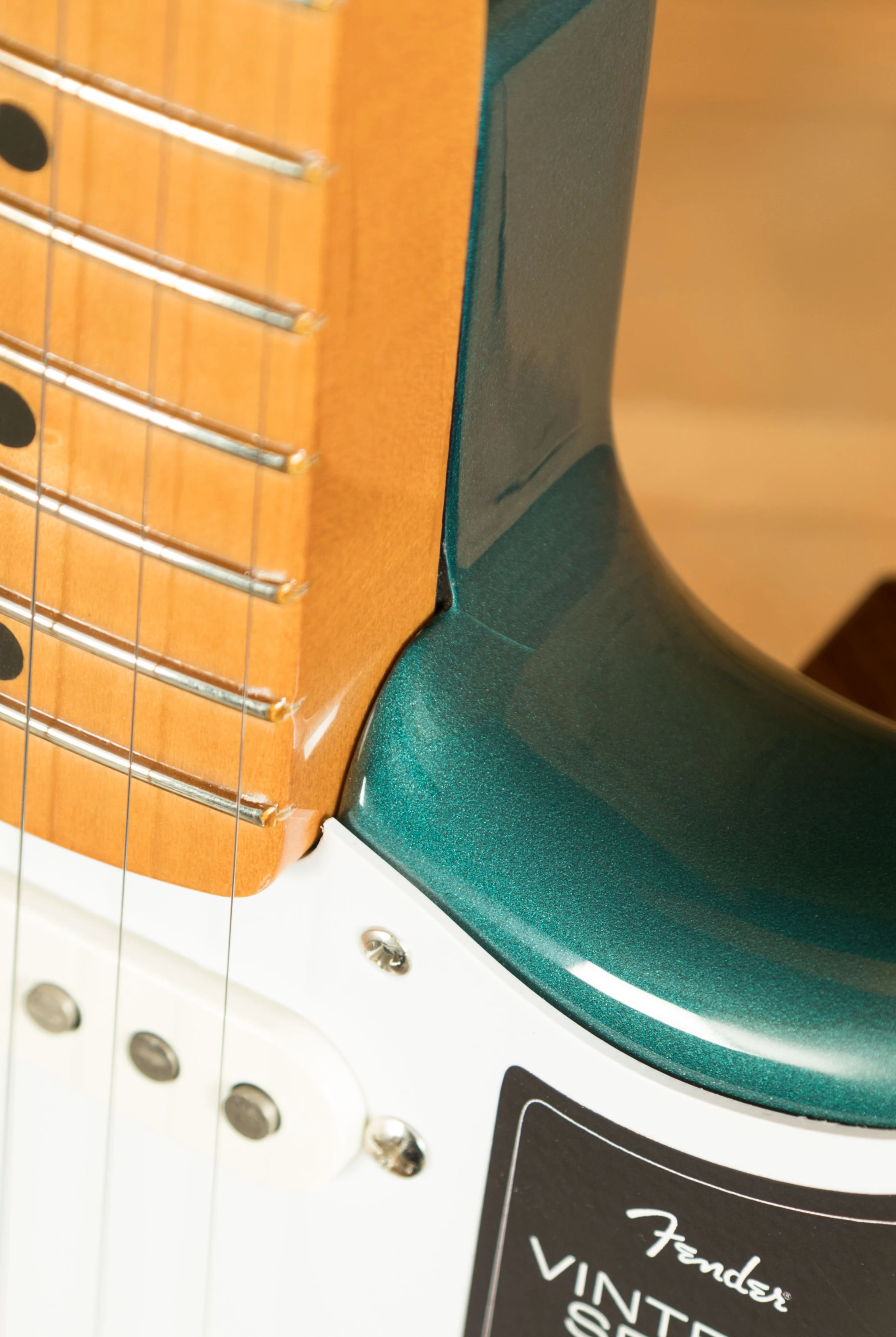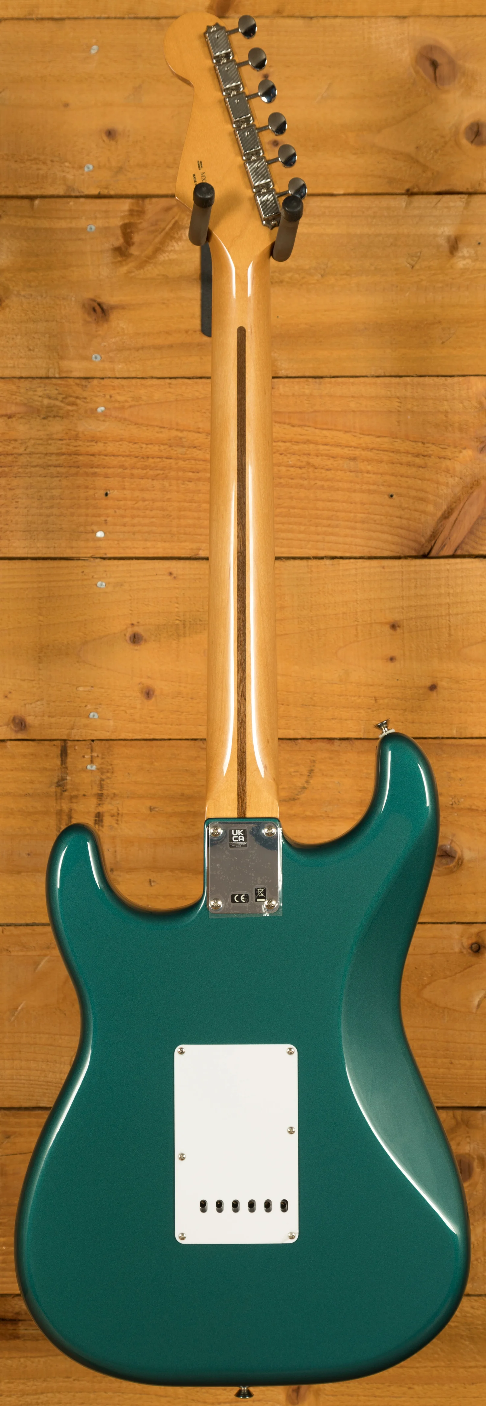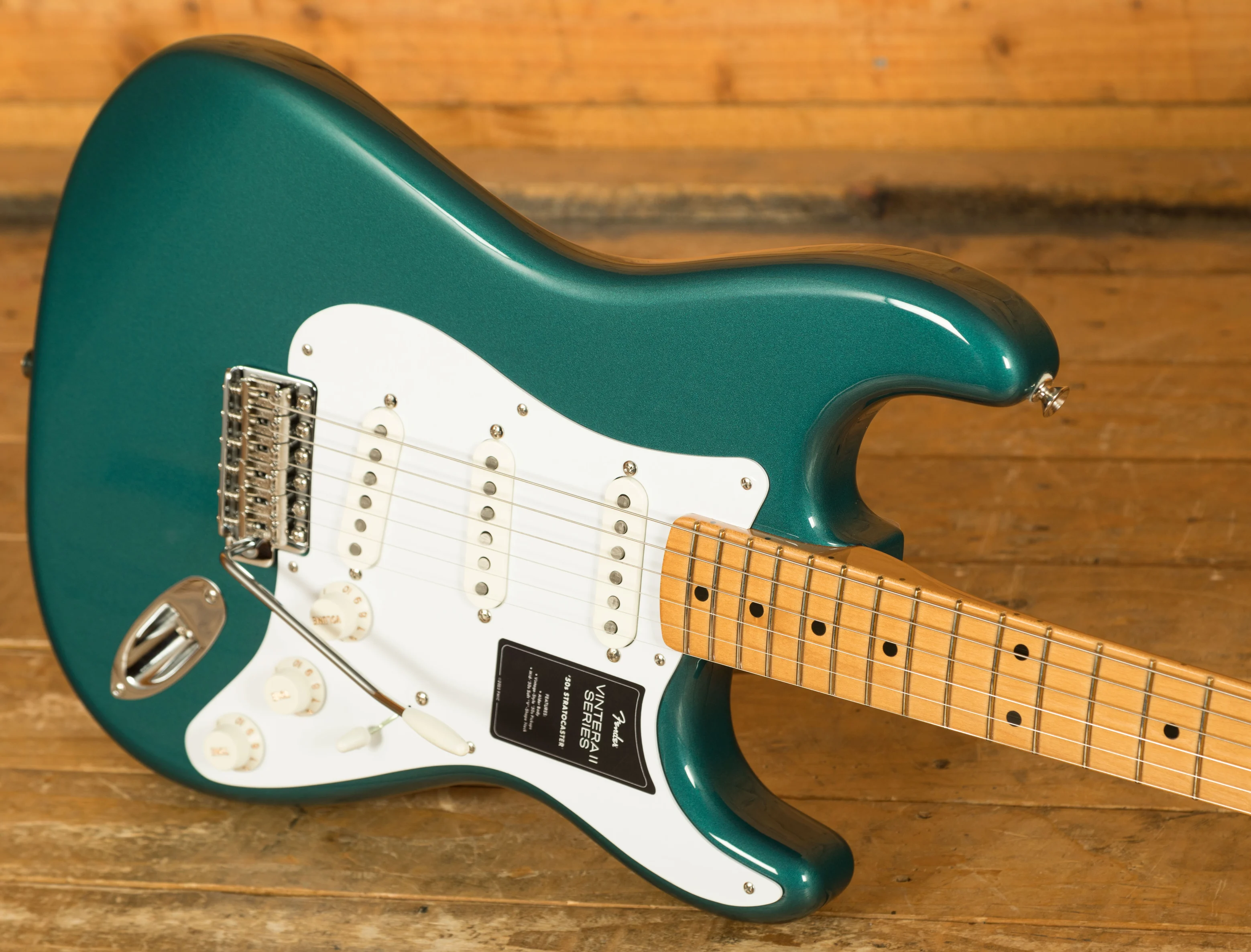Designed for vintage enthusiasts, the 7.25" radius maple fingerboard boasts vintage-tall frets, offering both comfort and ample room for expressive playing techniques such as big bends and vibrato. Underneath the hood lies a trio of vintage-style '50s pickups, faithfully capturing the sweet, sparkling, warm, and woody tones that have made Fender guitars legendary.
