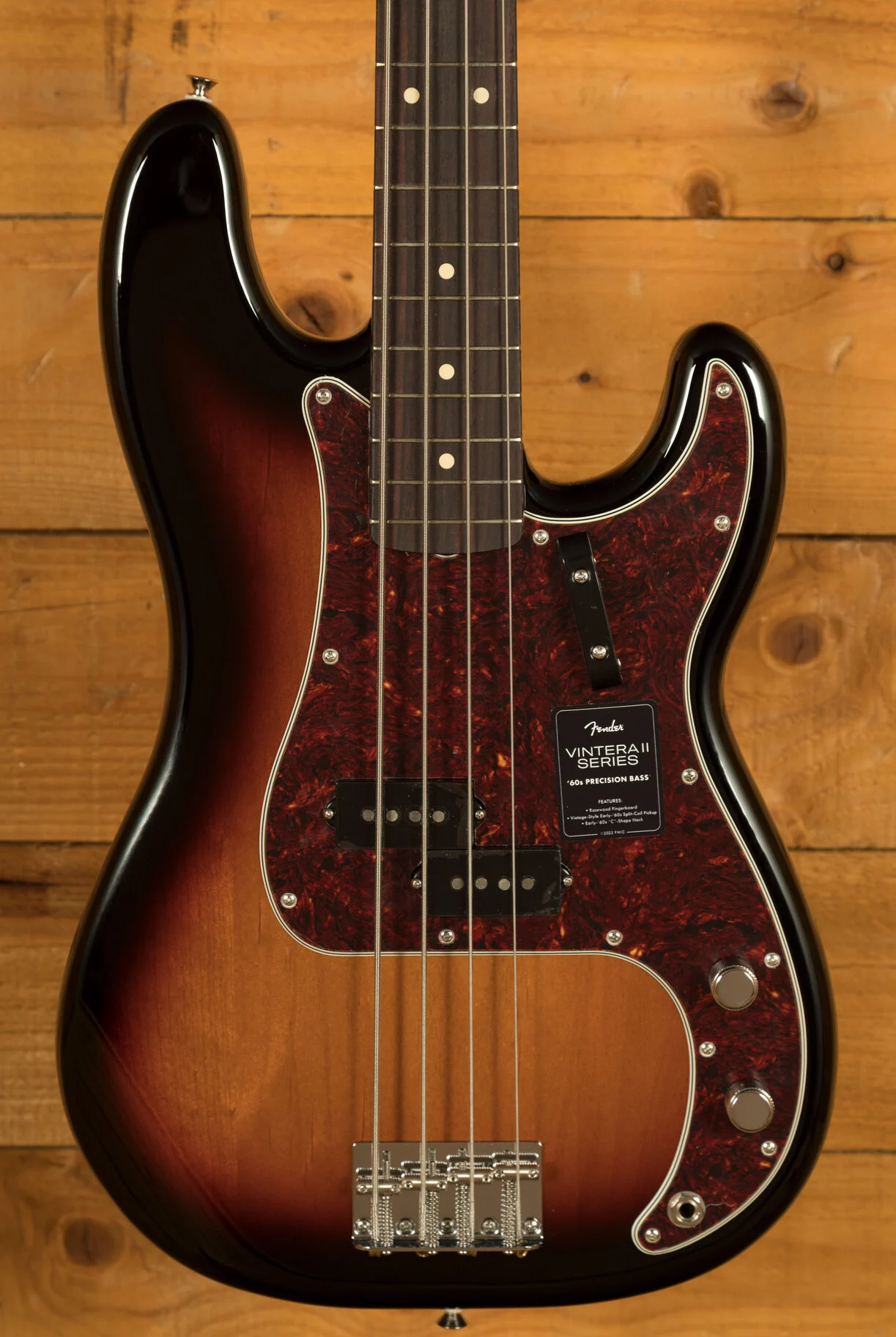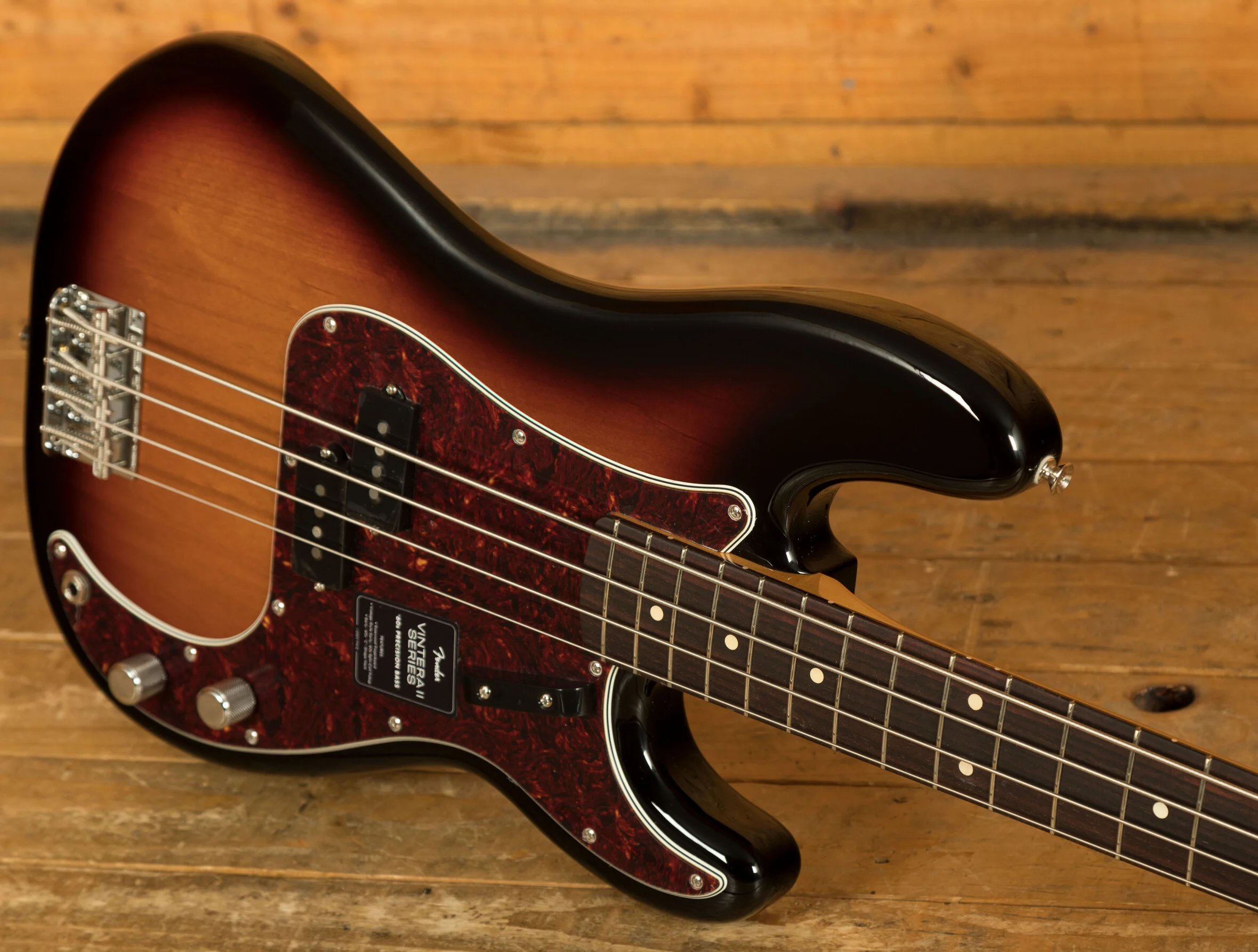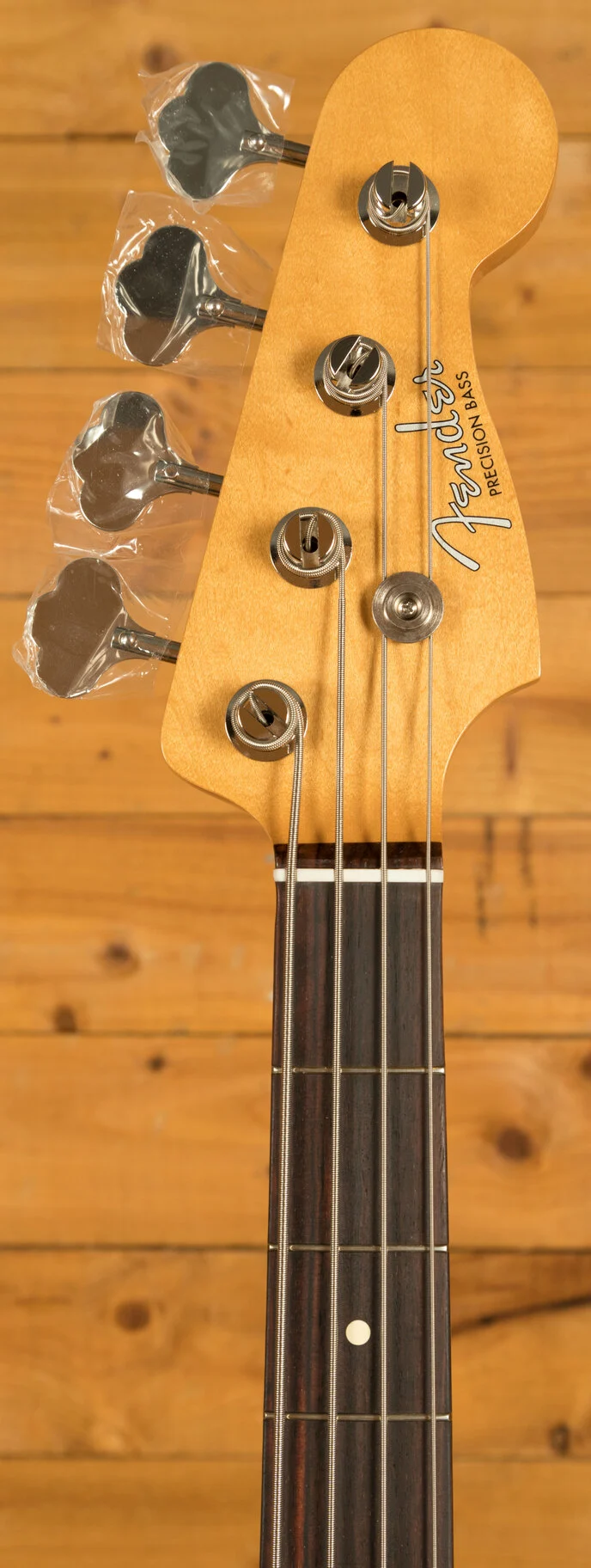 At the heart of the Vintera II '60s Precision Bass is its alder body and maple neck with a rosewood fingerboard. This combination delivers the classic Fender tone renowned for its punch and clarity. The neck boasts an early-'60s "C"-shape profile, reminiscent of the beloved '60s design, providing a comfortable and inviting playing experience. The 7.25" radius fingerboard, equipped with vintage-tall frets, ensures vintage-style comfort while offering ample room for expressive playing techniques like big bends and vibrato.