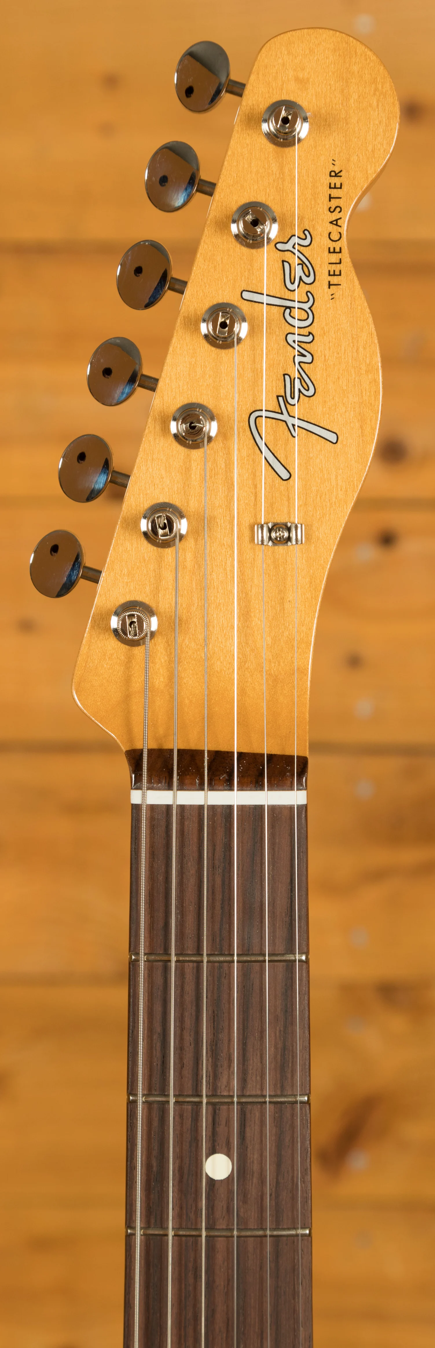 Beneath its sleek exterior, the Vintera II '60s Telecaster houses a pair of vintage-style '60s pickups, faithfully reproducing the crystal-clear chime and raw, steely twang that propelled Fender to fame. The vintage-style 3-saddle bridge, equipped with slotted steel saddles, delivers authentic '60s twang, ensuring that each note resonates with the unmistakable character of the era. Additionally, vintage-style tuning machines not only contribute to the instrument's classic aesthetics but also offer a finer gear ratio and enhanced tuning stability.