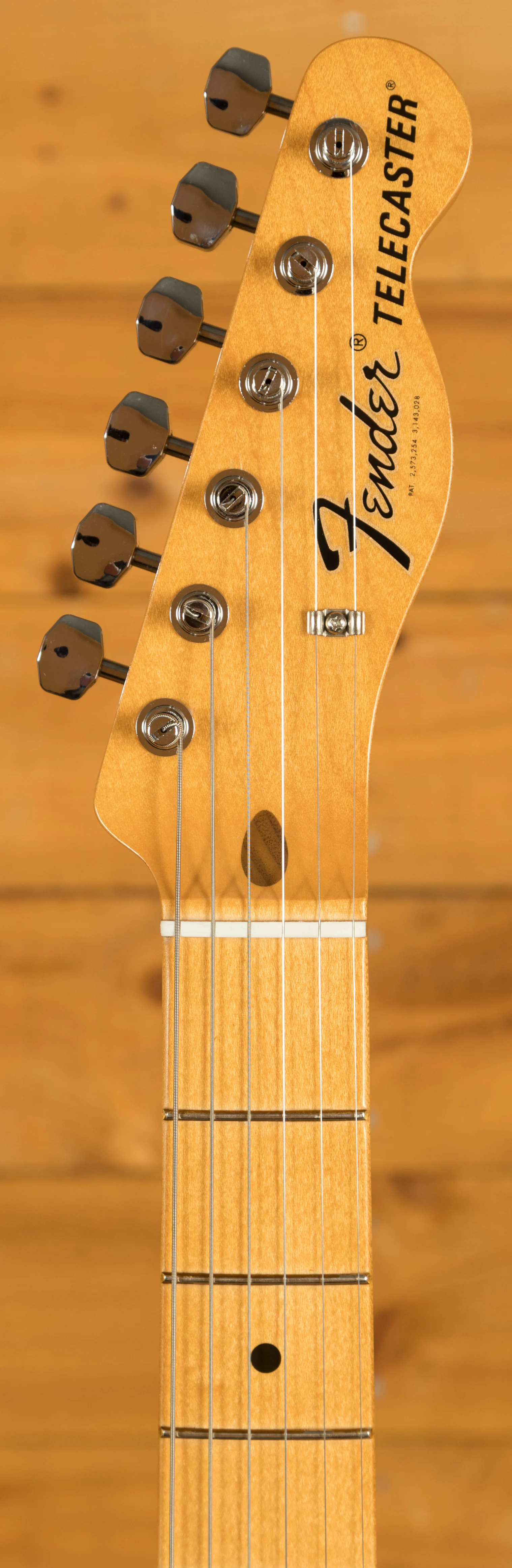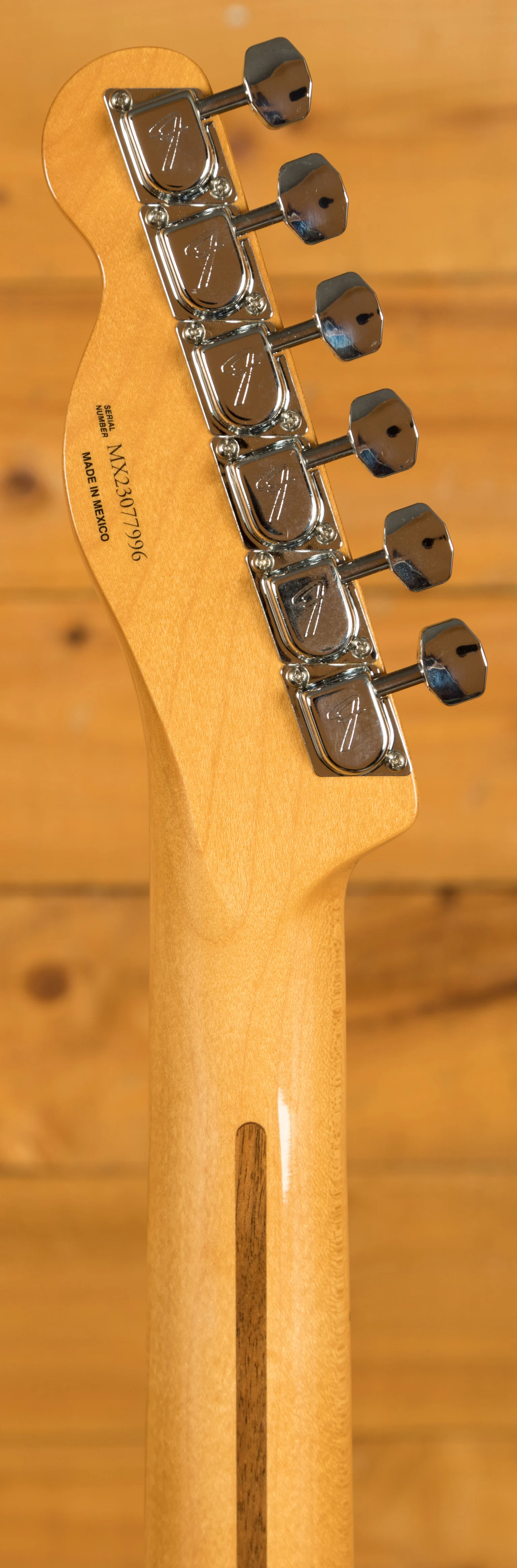 Underneath its vintage exterior lies a pair of vintage-style '60s pickups, renowned for their crystal-clear chime and raw, steely twang, hallmarks of the Fender legacy. Complementing the pickups is a vintage-style 3-saddle bridge with slotted steel saddles, delivering authentic '60s twang with precision. Meanwhile, the vintage-style tuning machines not only enhance the instrument's aesthetic appeal with their classic design but also provide finer gear ratios and improved tuning stability.