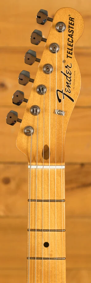 Underneath its vintage exterior lies a pair of vintage-style '60s pickups, renowned for their crystal-clear chime and raw, steely twang, hallmarks of the Fender legacy. Complementing the pickups is a vintage-style 3-saddle bridge with slotted steel saddles, delivering authentic '60s twang with precision. Meanwhile, the vintage-style tuning machines not only enhance the instrument's aesthetic appeal with their classic design but also provide finer gear ratios and improved tuning stability.