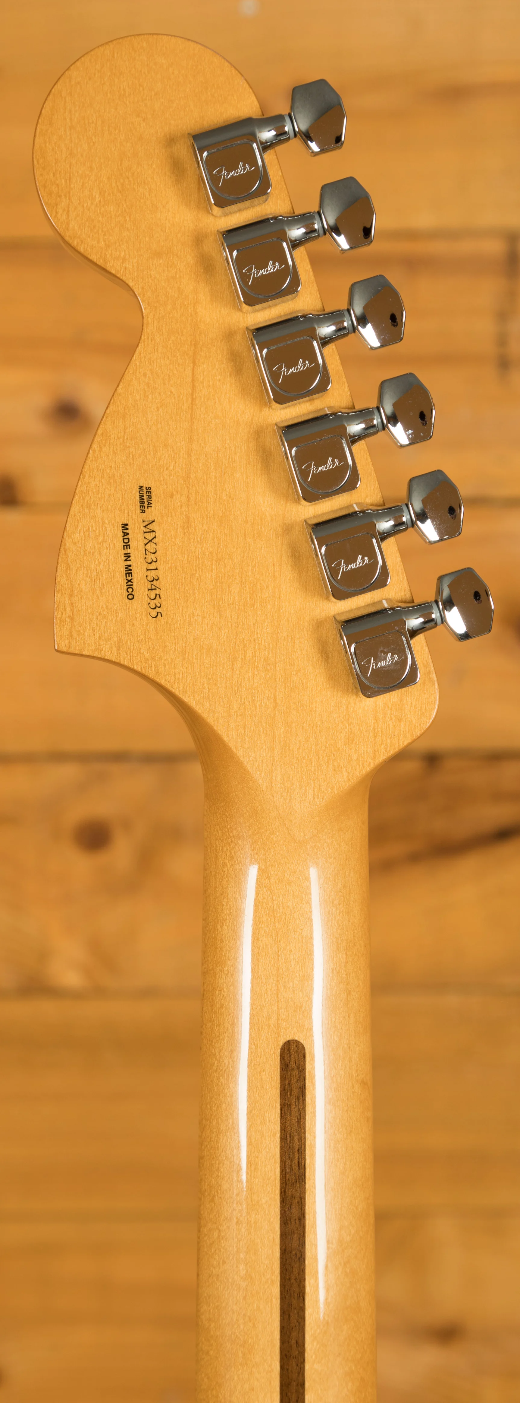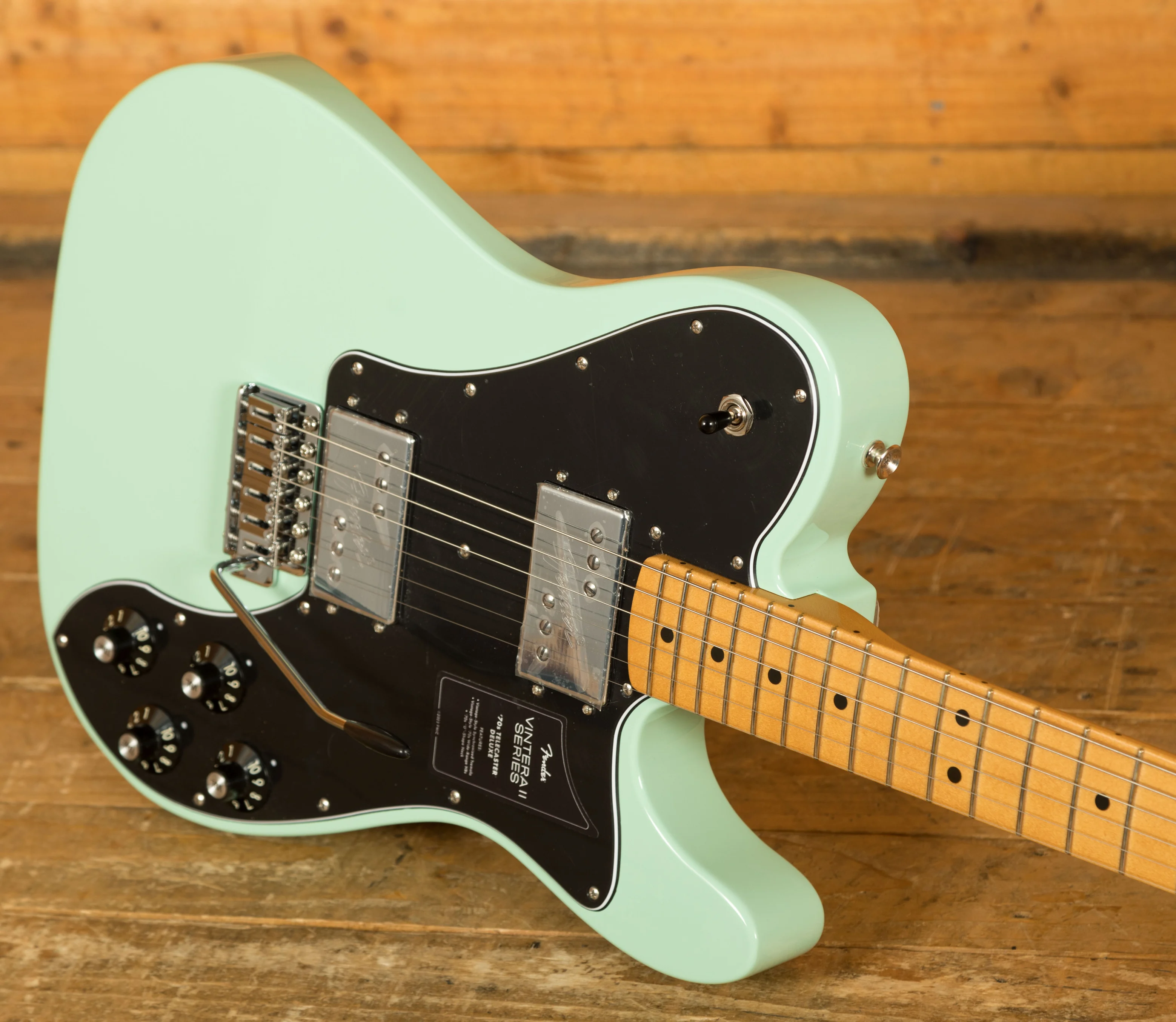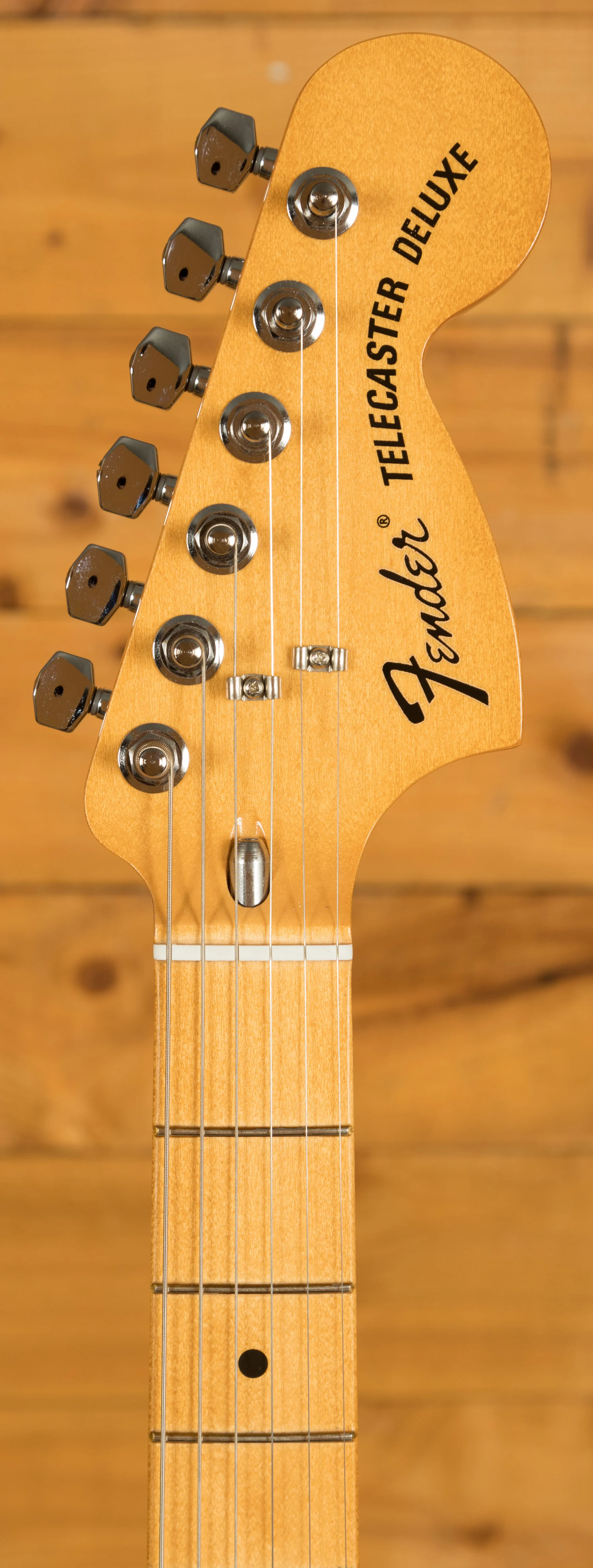 Underneath the hood lies a pair of vintage-style '70s wide-range humbuckers, delivering the signature sweet and sparkling, warm and woody tone that has made Fender renowned. The vintage-style synchronised tremolo system invites exploration, enabling dives and wails with abandon. Vintage-style Telecaster Deluxe tuning machines grace the headstock, offering classic aesthetics with a finer gear ratio and enhanced tuning stability, culminating in a complete package of timeless allure.