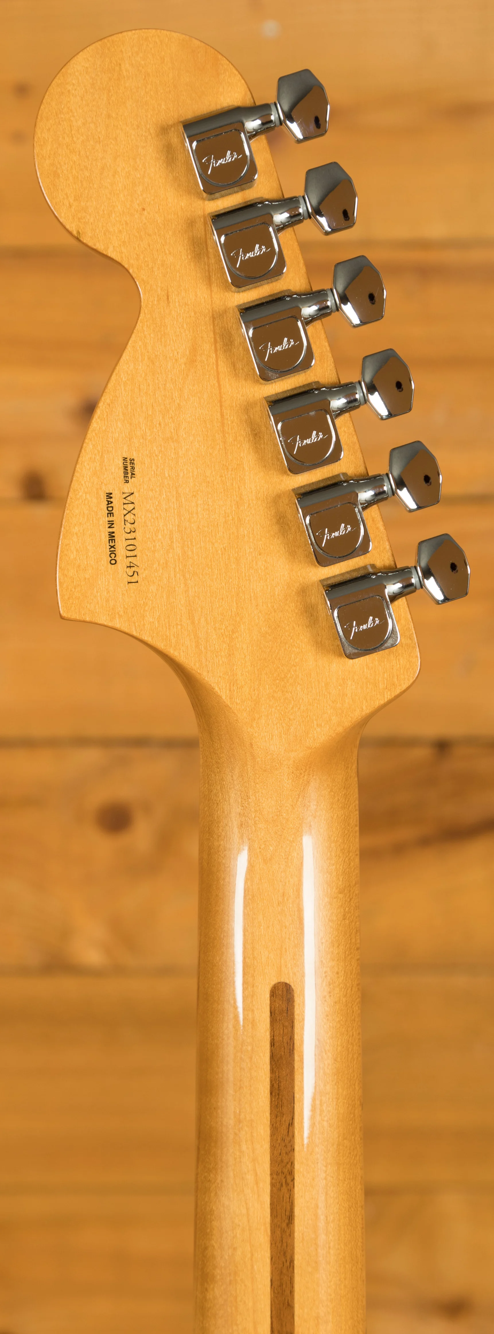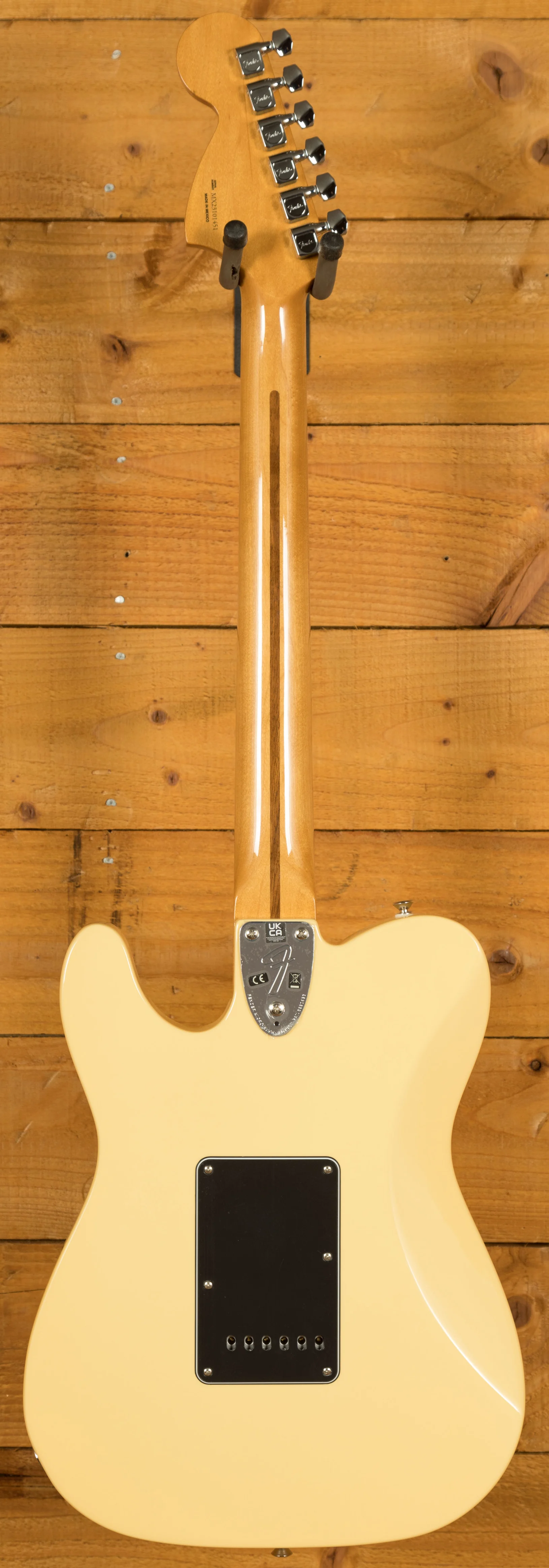 Underneath the hood lies a pair of vintage-style '70s wide-range humbuckers, delivering the signature sweet and sparkling, warm and woody tone that has made Fender renowned. The vintage-style synchronised tremolo system invites exploration, enabling dives and wails with abandon. Vintage-style Telecaster Deluxe tuning machines grace the headstock, offering classic aesthetics with a finer gear ratio and enhanced tuning stability, culminating in a complete package of timeless allure.