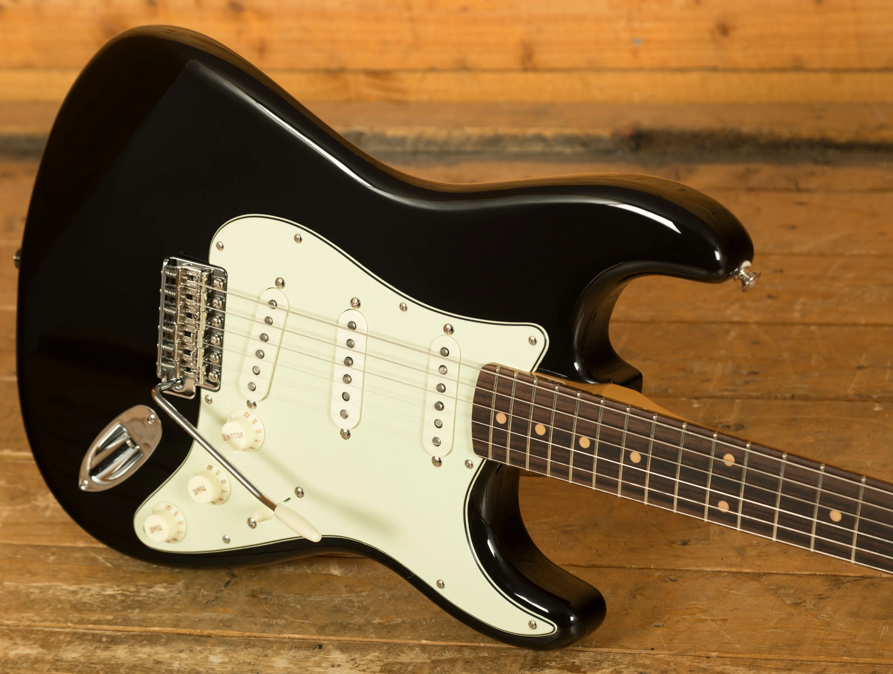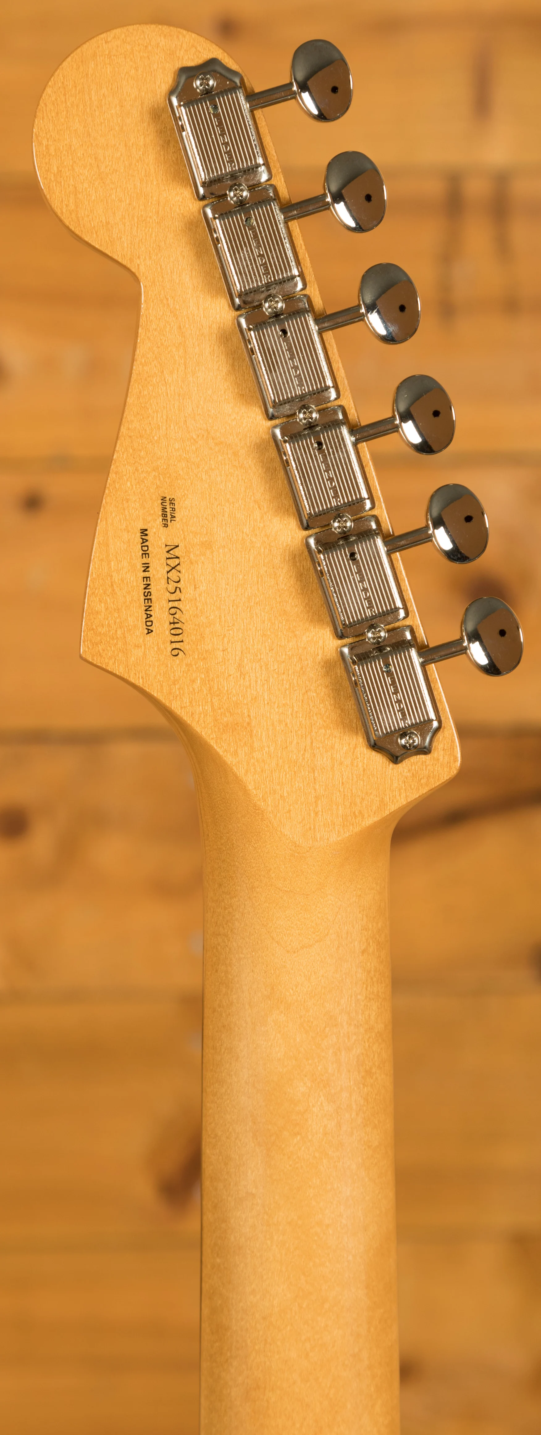 A vintage-style synchronised tremolo with bent steel saddles allows for expressive vibrato and precise adjustability, while period-correct tuning machines combine traditional aesthetics with improved stability and accuracy. Altogether, this model delivers timeless looks, feel, and sound, staying true to one of Fender's most iconic eras.