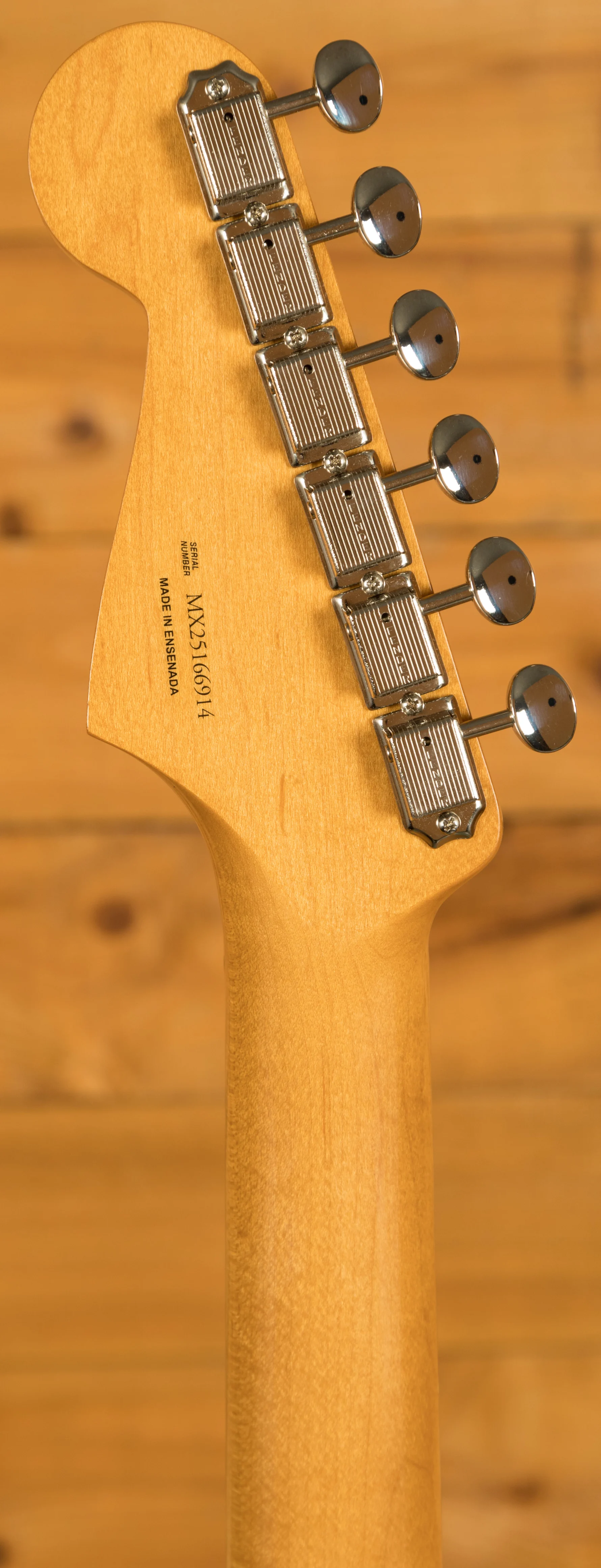 A vintage-style synchronised tremolo with bent steel saddles allows for expressive vibrato and precise adjustability, while period-correct tuning machines combine traditional aesthetics with improved stability and accuracy. Altogether, this model delivers timeless looks, feel, and sound, staying true to one of Fender's most iconic eras.