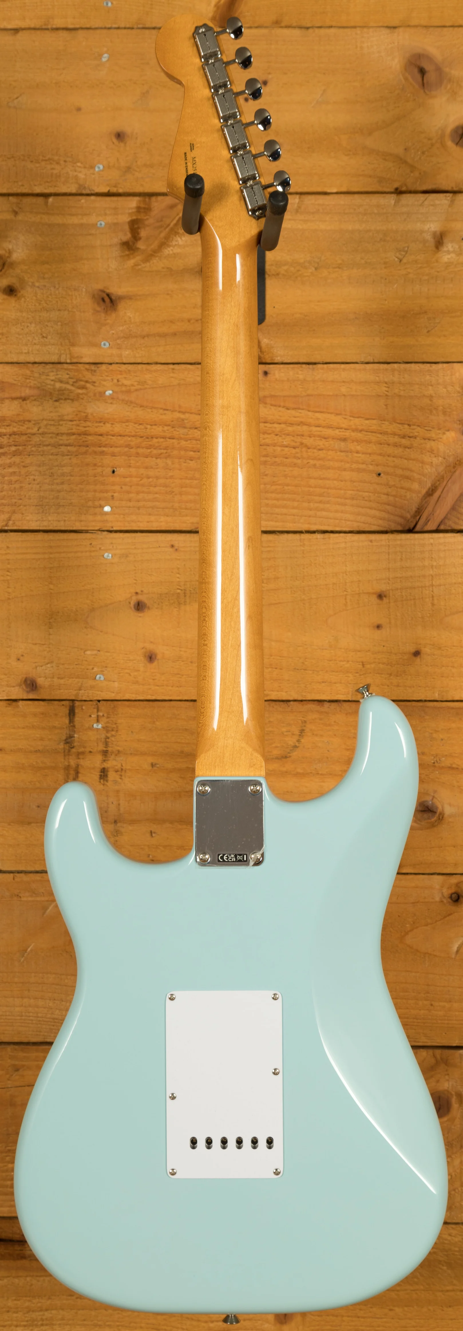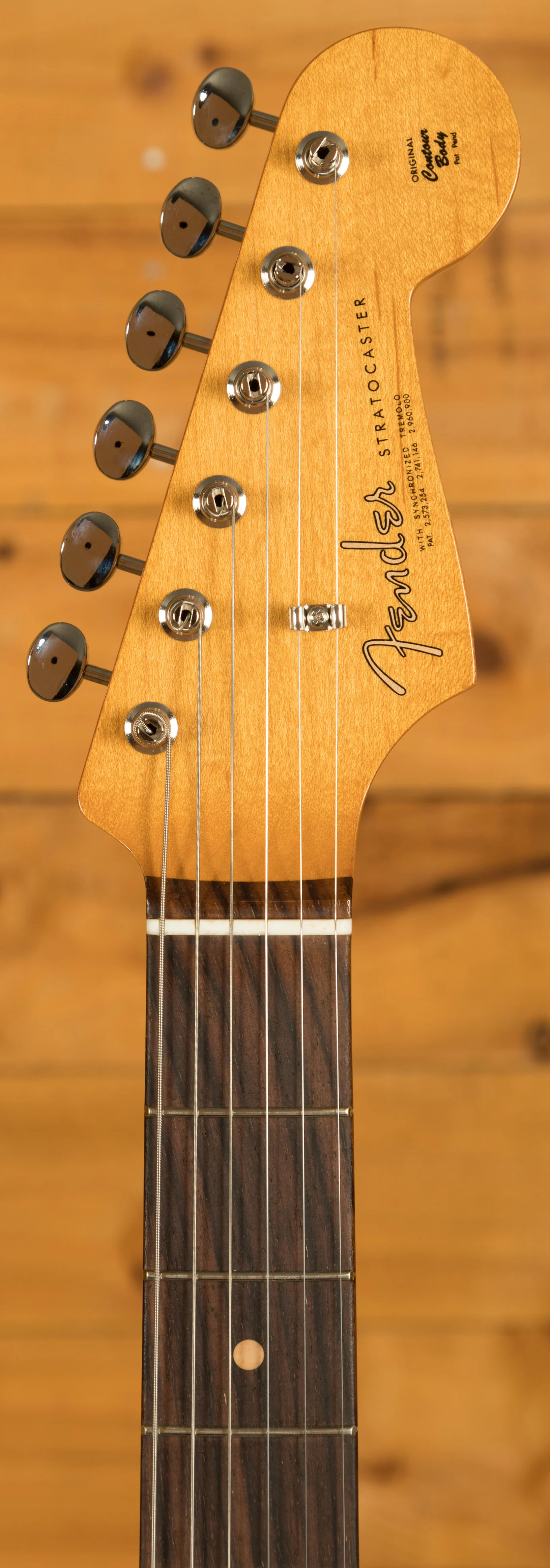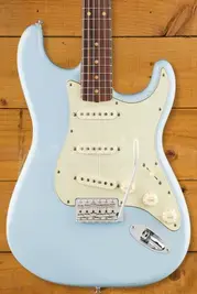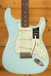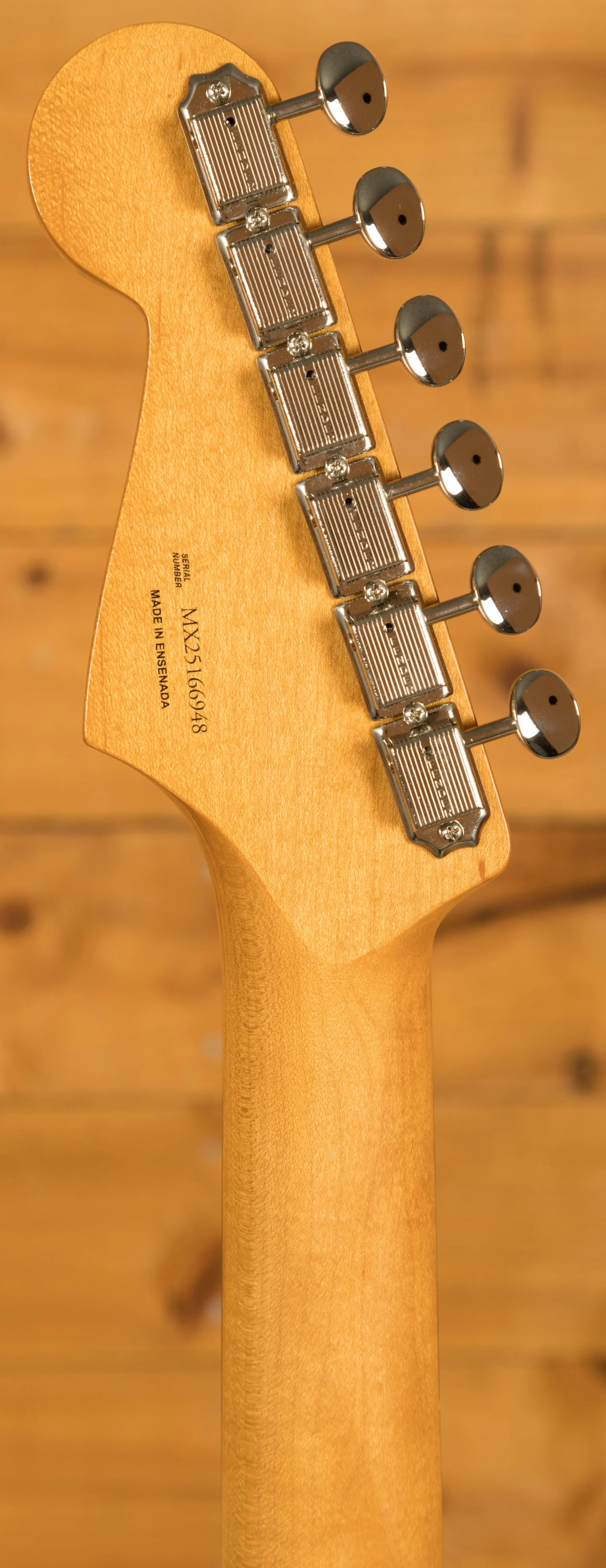 A vintage-style synchronised tremolo with bent steel saddles allows for expressive vibrato and precise adjustability, while period-correct tuning machines combine traditional aesthetics with improved stability and accuracy. Altogether, this model delivers timeless looks, feel, and sound, staying true to one of Fender's most iconic eras.
