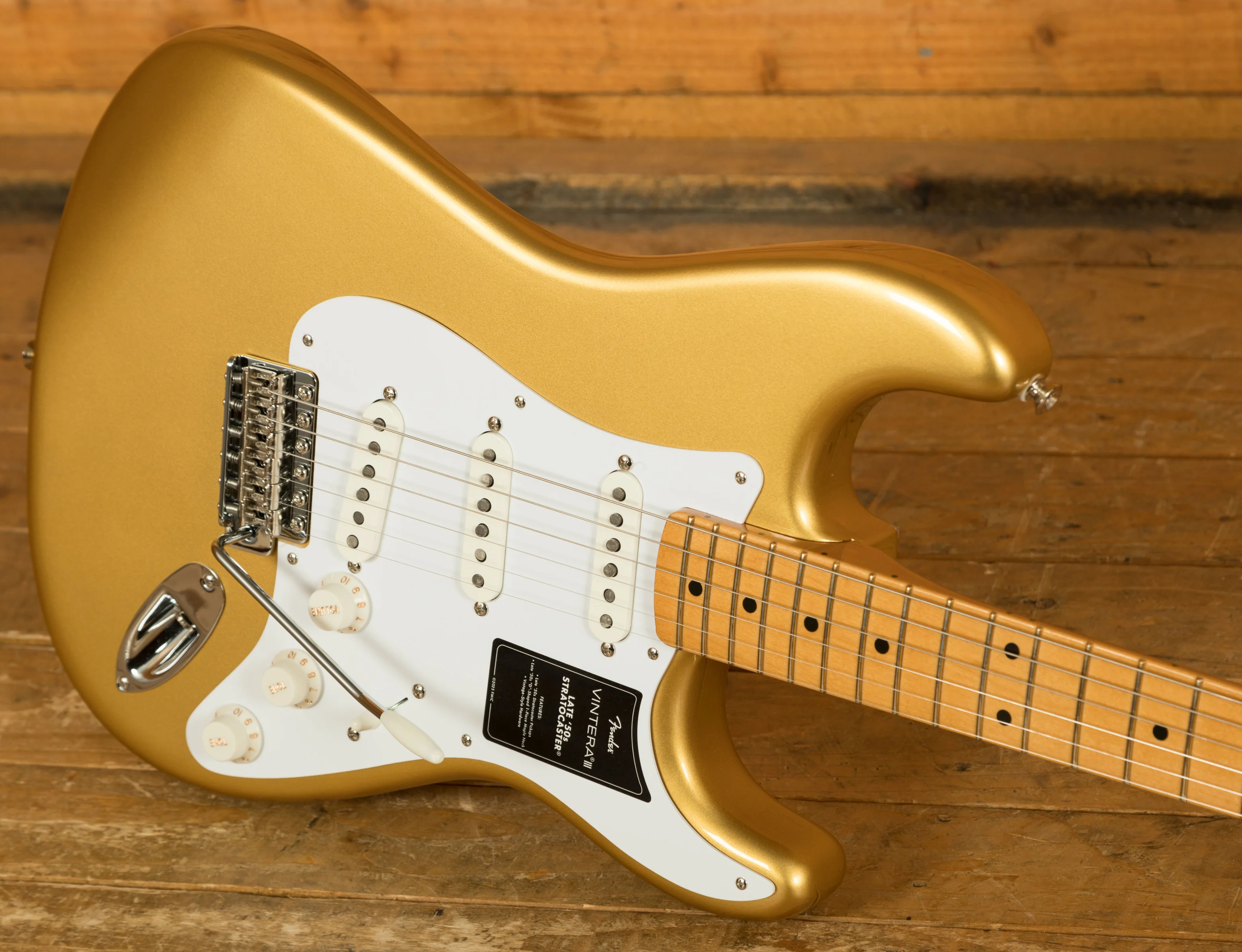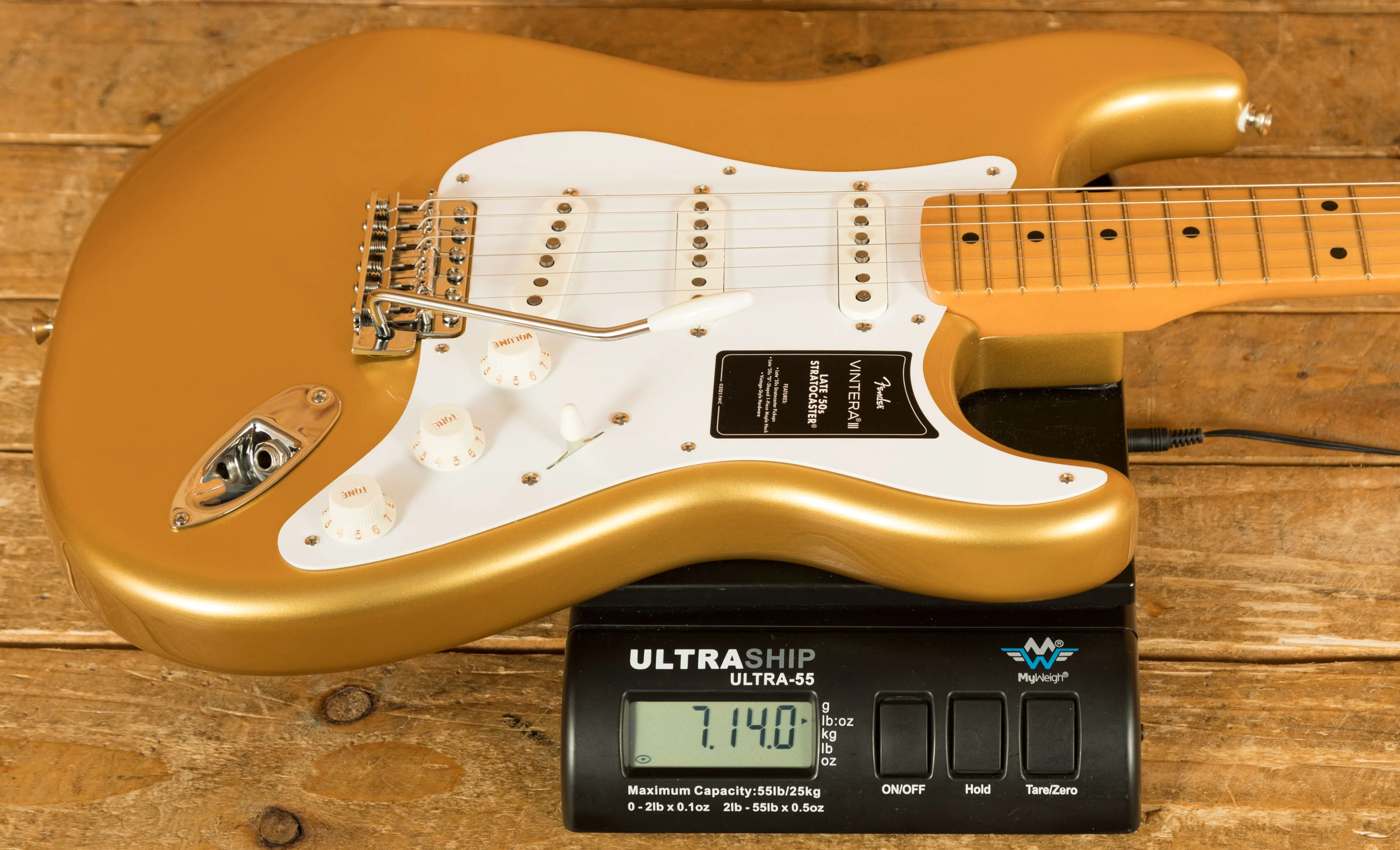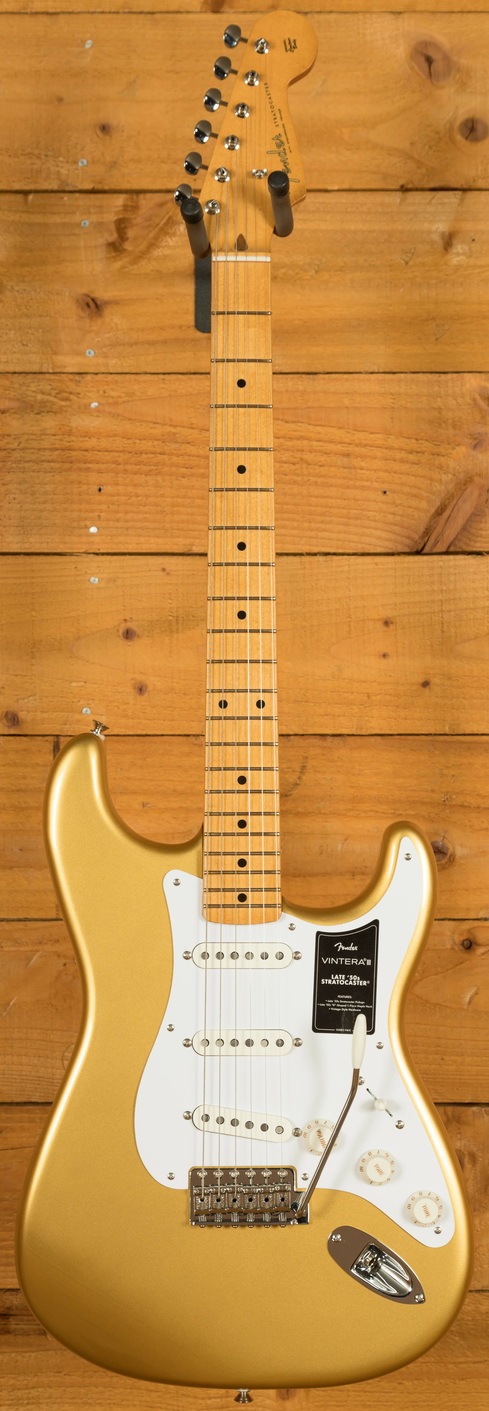 The Fender Vintera III Late '50s Stratocaster pairs an alder body with a one-piece maple neck and fingerboard to deliver the unmistakable Fender tone - punchy, resonant, and crystal clear. Its authentic late '50s "D"-shaped neck feels instantly familiar, while the 7.25" radius and vintage-tall frets provide a comfortable, vintage-style playing experience with added ease for bends and vibrato. Three late '50s-spec pickups capture the bright, singing, bell-like tones that defined the era, offering warmth, clarity, and classic Strat character.
