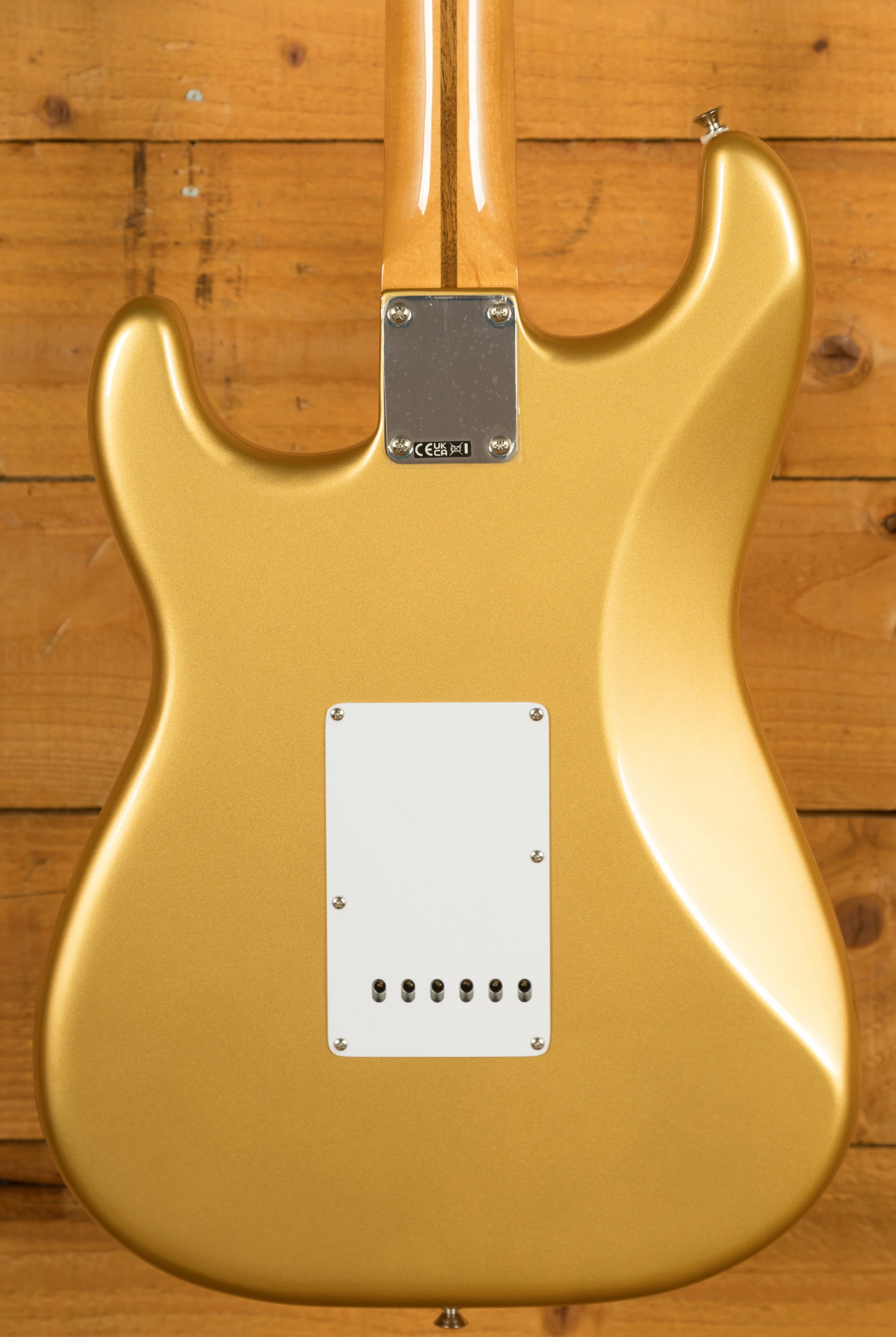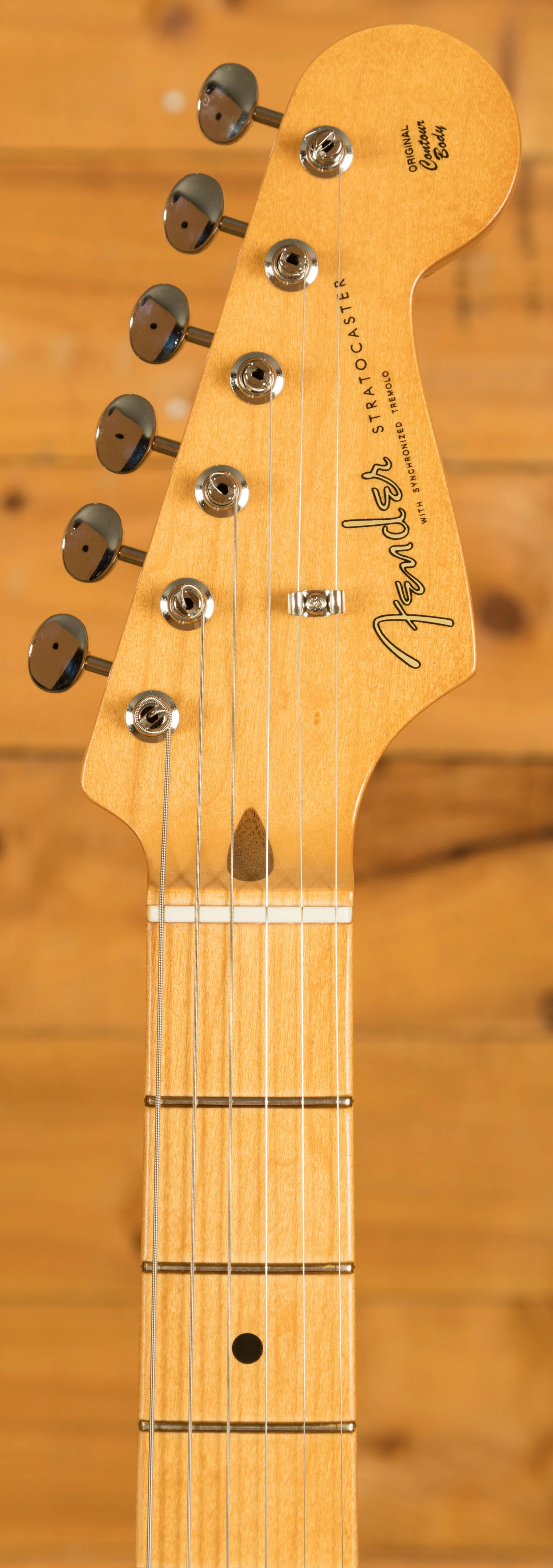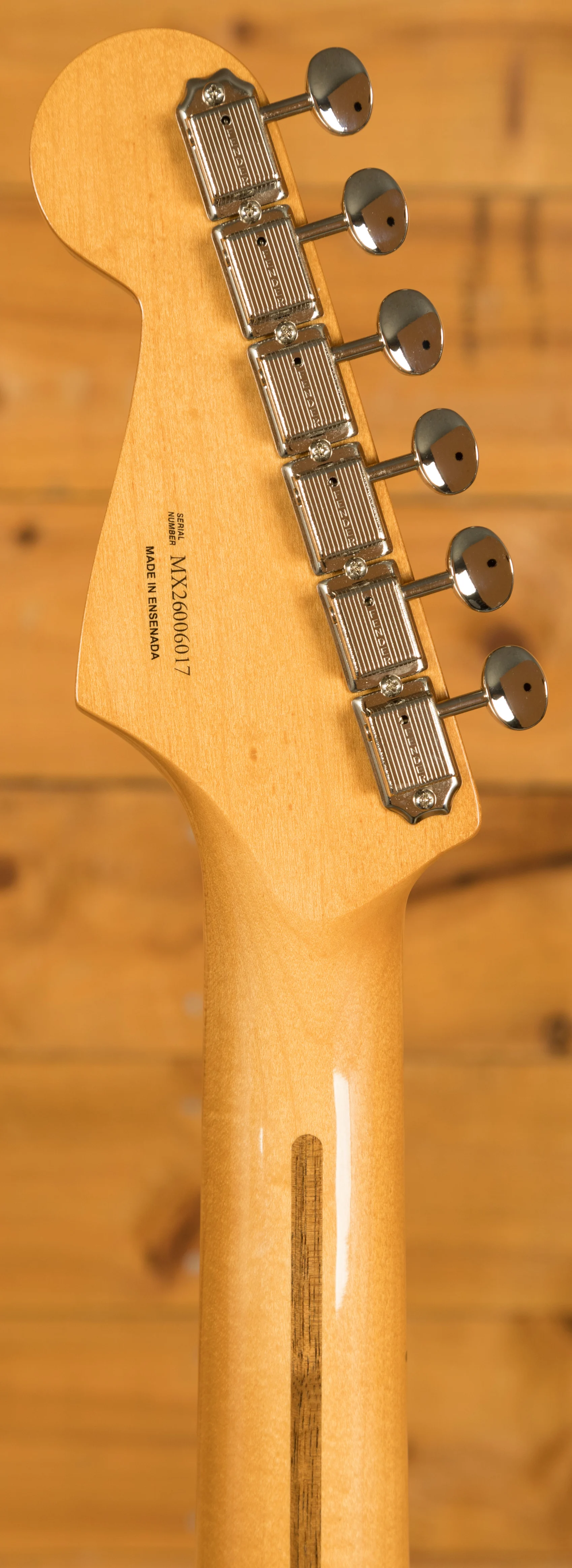 A vintage-style synchronised tremolo with bent steel saddles allows for expressive vibrato and precise adjustability, while period-correct tuning machines combine traditional aesthetics with improved stability and accuracy. Altogether, this model delivers timeless looks, feel, and sound, staying true to one of Fender's most iconic eras.