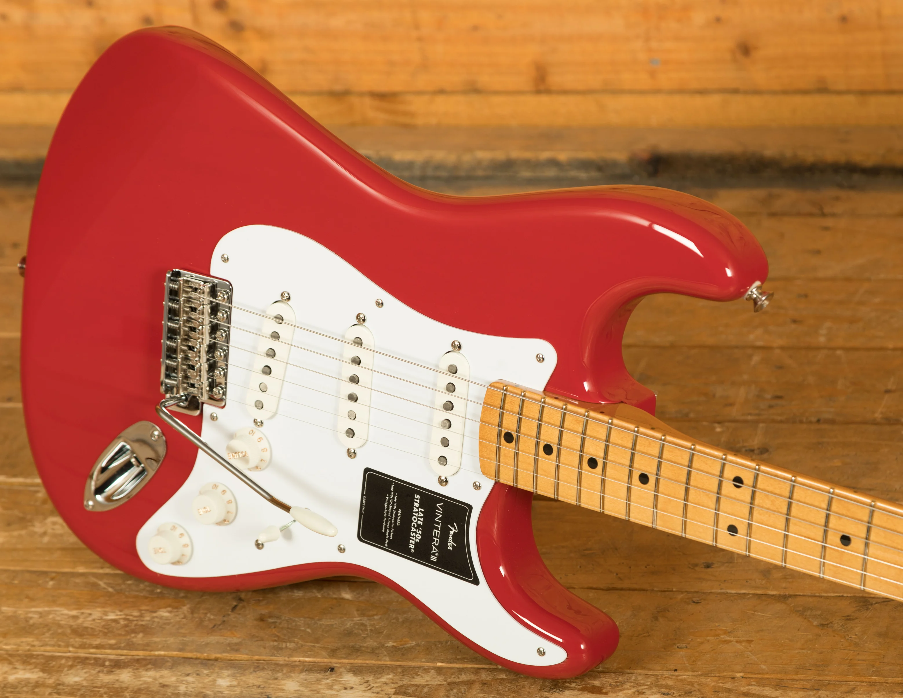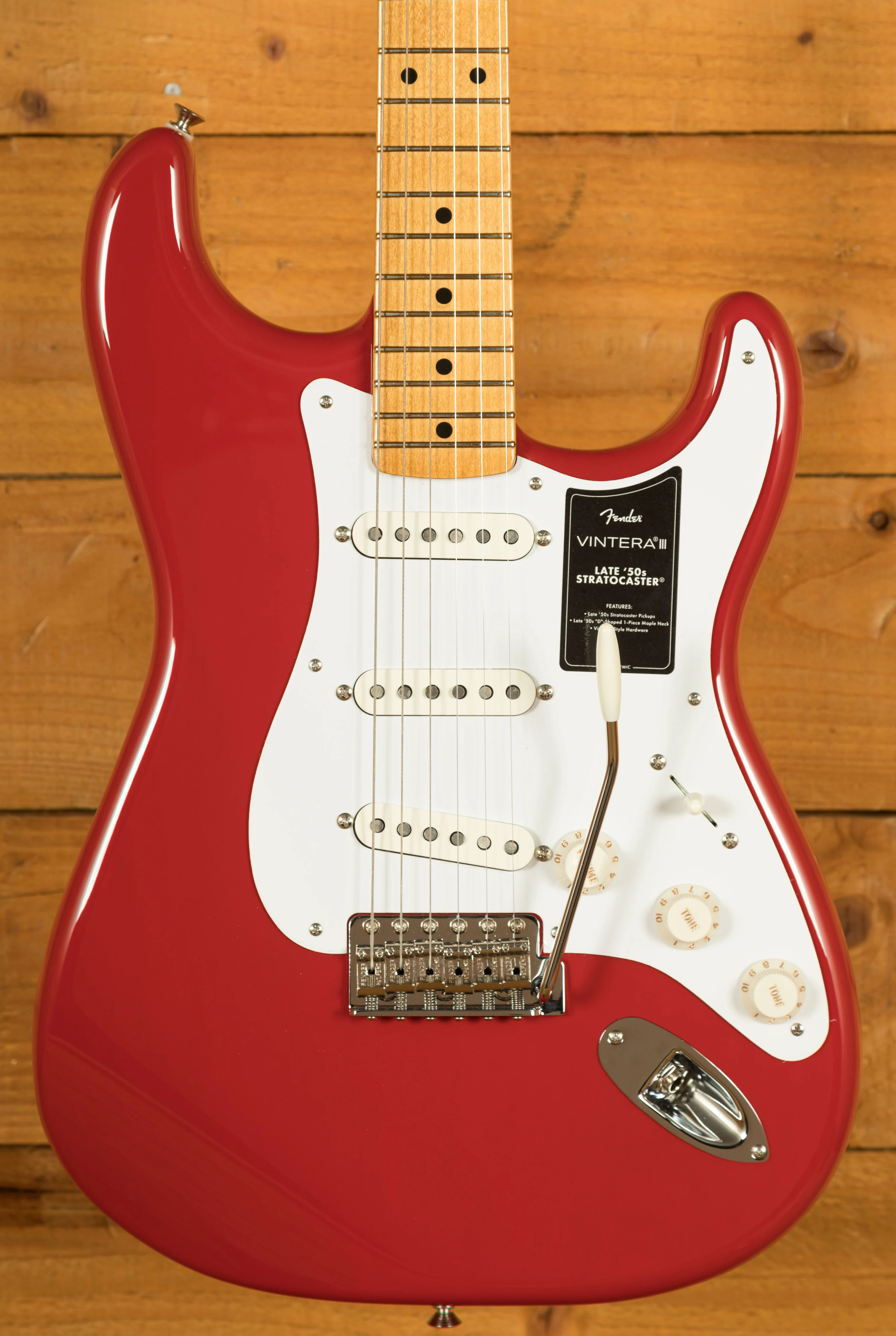 The Fender Vintera III Late '50s Stratocaster pairs an alder body with a one-piece maple neck and fingerboard to deliver the unmistakable Fender tone - punchy, resonant, and crystal clear. Its authentic late '50s "D"-shaped neck feels instantly familiar, while the 7.25" radius and vintage-tall frets provide a comfortable, vintage-style playing experience with added ease for bends and vibrato. Three late '50s-spec pickups capture the bright, singing, bell-like tones that defined the era, offering warmth, clarity, and classic Strat character.