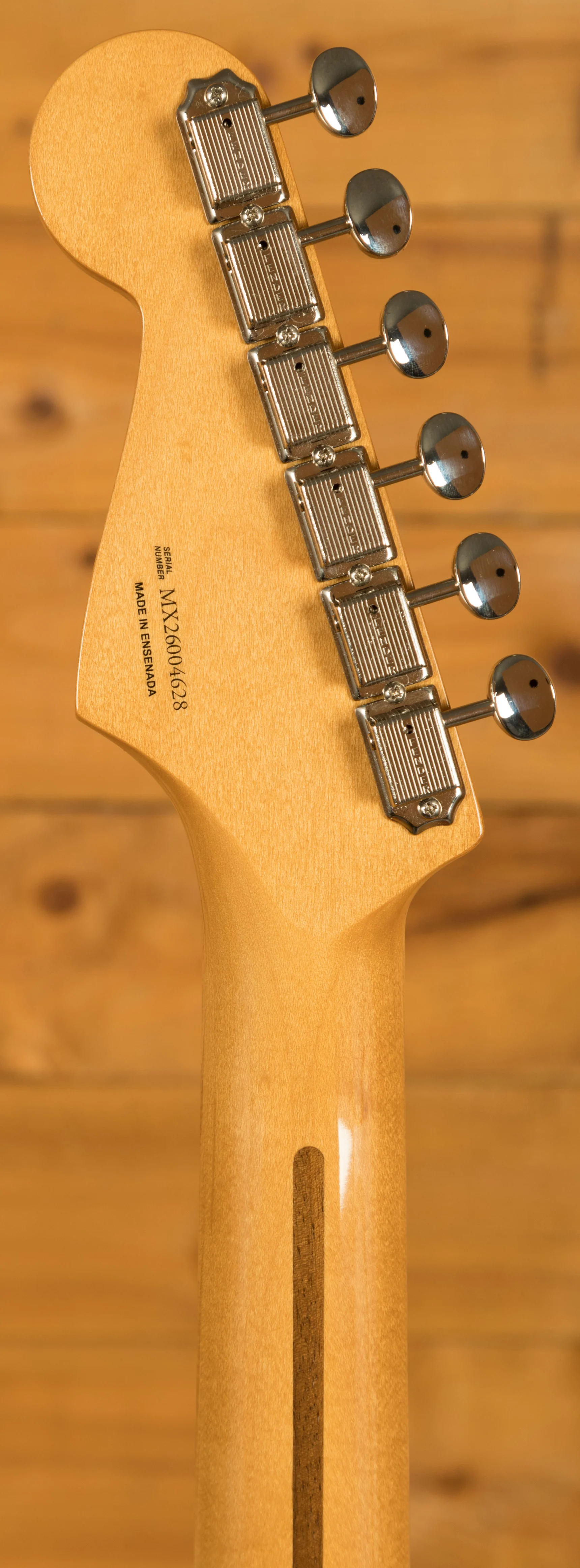 A vintage-style synchronised tremolo with bent steel saddles allows for expressive vibrato and precise adjustability, while period-correct tuning machines combine traditional aesthetics with improved stability and accuracy. Altogether, this model delivers timeless looks, feel, and sound, staying true to one of Fender's most iconic eras.