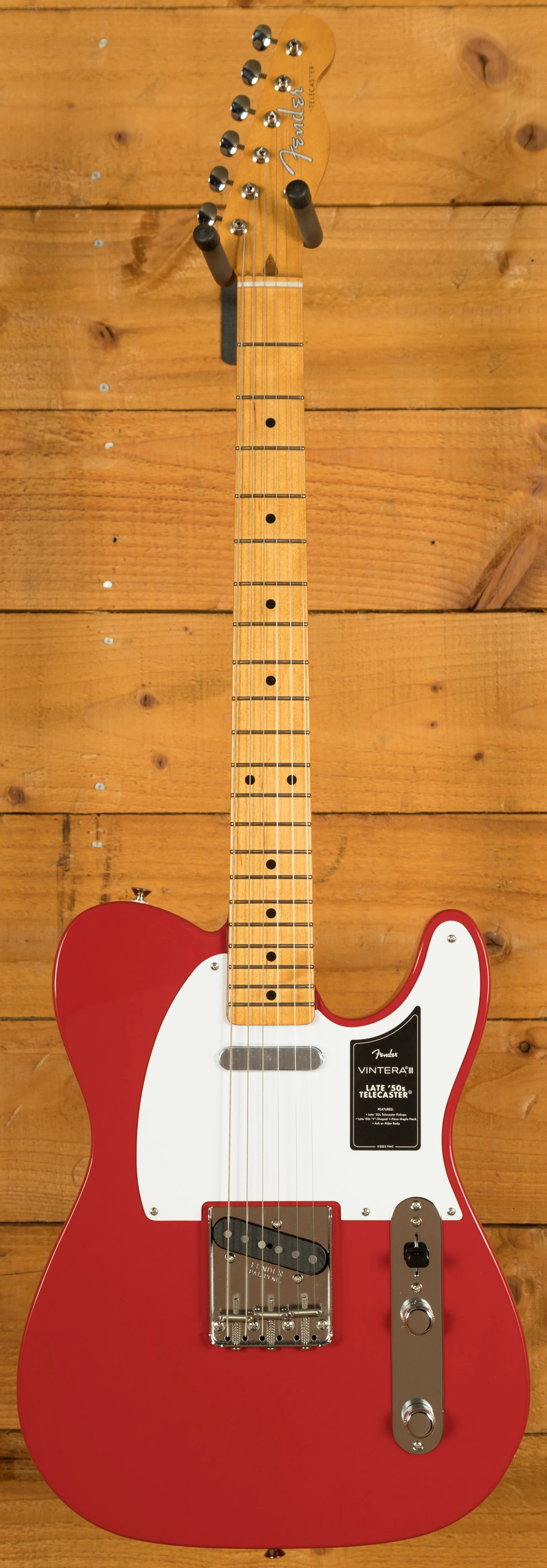 The Fender Vintera III Late '50s Telecaster pairs an alder body with a 1-piece maple neck and maple fingerboard to deliver the unmistakable Fender tone - punchy, resonant, and crystal clear. Its authentic Late '50s "V"-shaped neck feels instantly familiar, while the 7.25" radius and vintage-tall frets provide a comfortable, vintage-style playing experience with added ease for bends and vibrato. Two Late '50s-spec pickups capture the bright and cutting tones that defined the Teles of this era - with articulate highs, punchy mids, and warm lows.