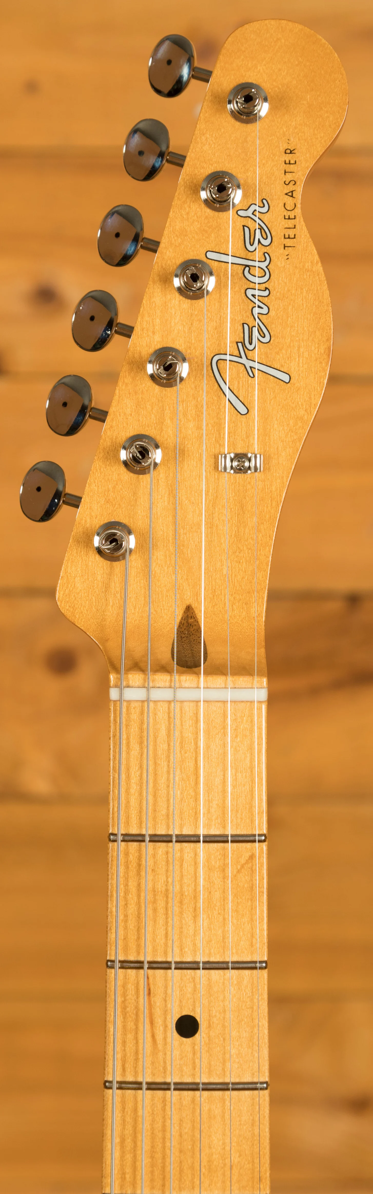 A vintage-style 3-saddle bridge with steel barrel saddles delivers authentic twang, while period-correct tuning machines combine traditional aesthetics with improved stability and accuracy. Altogether, this model delivers timeless looks, feel, and sound, staying true to one of Fender's most iconic eras.