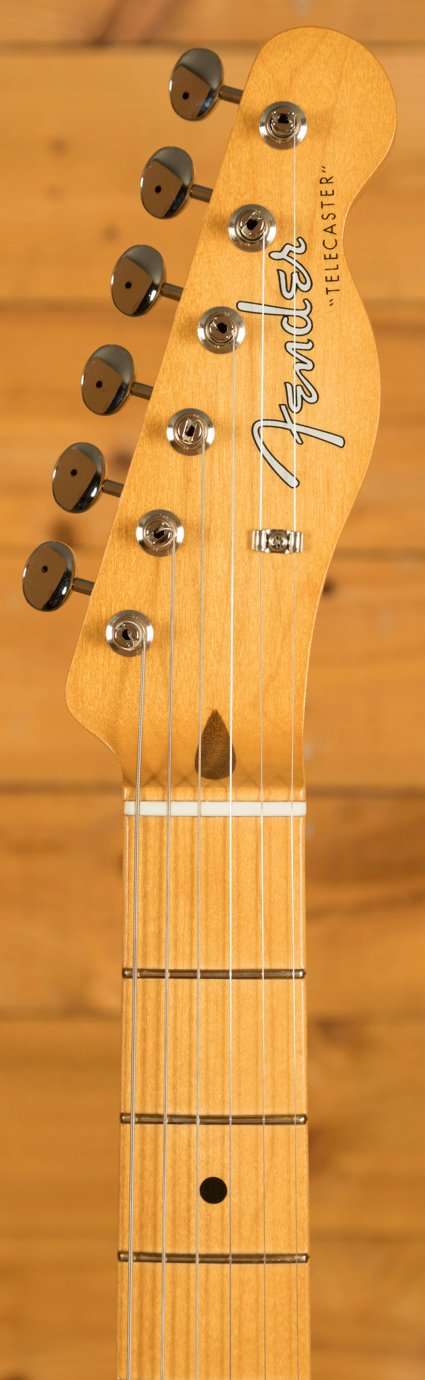 A vintage-style 3-saddle bridge with steel barrel saddles delivers authentic twang, while period-correct tuning machines combine traditional aesthetics with improved stability and accuracy. Altogether, this model delivers timeless looks, feel, and sound, staying true to one of Fender's most iconic eras.
