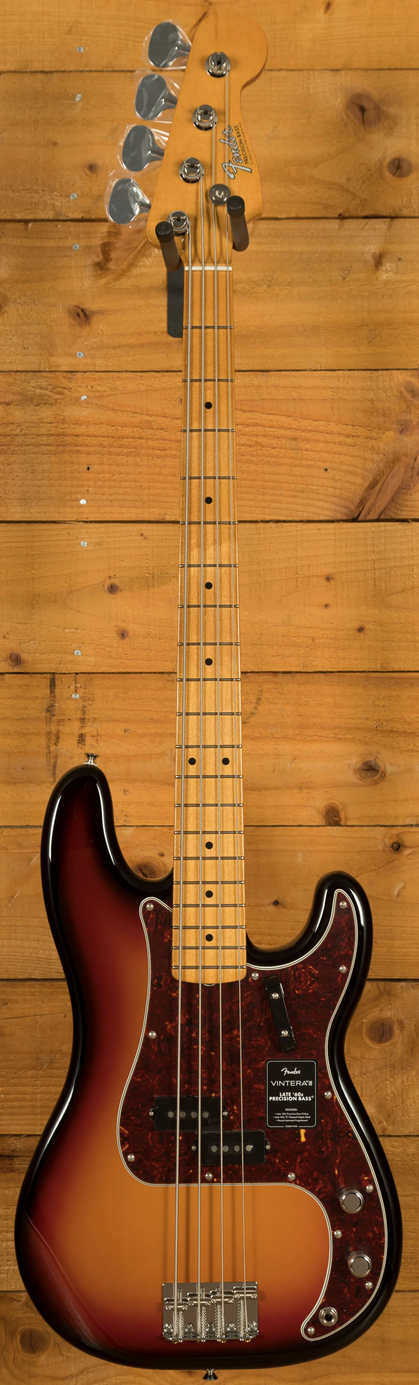 The Fender Vintera III Late '60s Precision Bass pairs an alder body with a maple neck and round-laminated maple fingerboard to deliver the unmistakable Fender tone - punchy, resonant, and crystal clear. Its authentic Late '60s "C"-shaped neck feels instantly familiar, while the 7.25" radius and vintage-tall frets provide a comfortable, vintage-style playing experience with added ease for bends and vibrato. A Late '60s-spec split pickup captures the punchiness and thump that defined the Precision Basses of this era - with exceptional note definition, low-end presence, and crisp articulation.