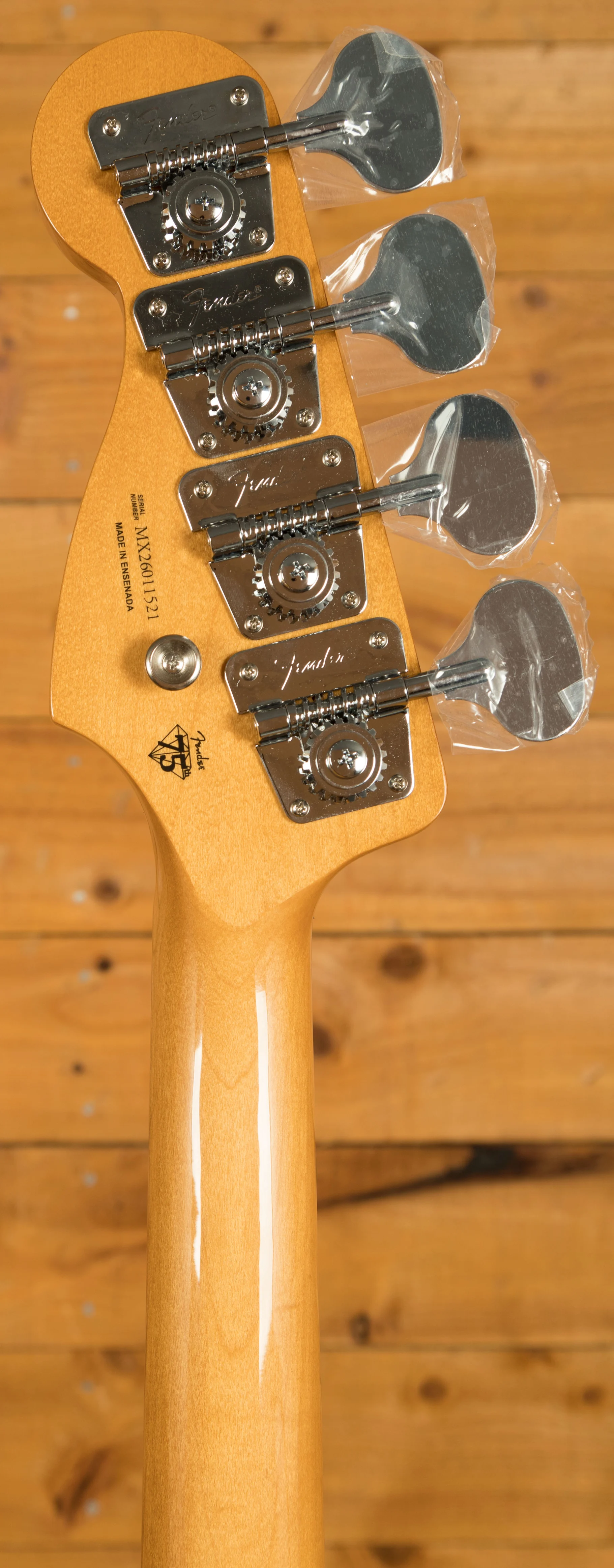 A vintage-style 4-saddle bridge with threaded steel saddles offers precise intonation, while period-correct tuning machines combine traditional aesthetics with improved stability and accuracy. Altogether, this model delivers timeless looks, feel, and sound, staying true to one of Fender's most iconic eras.