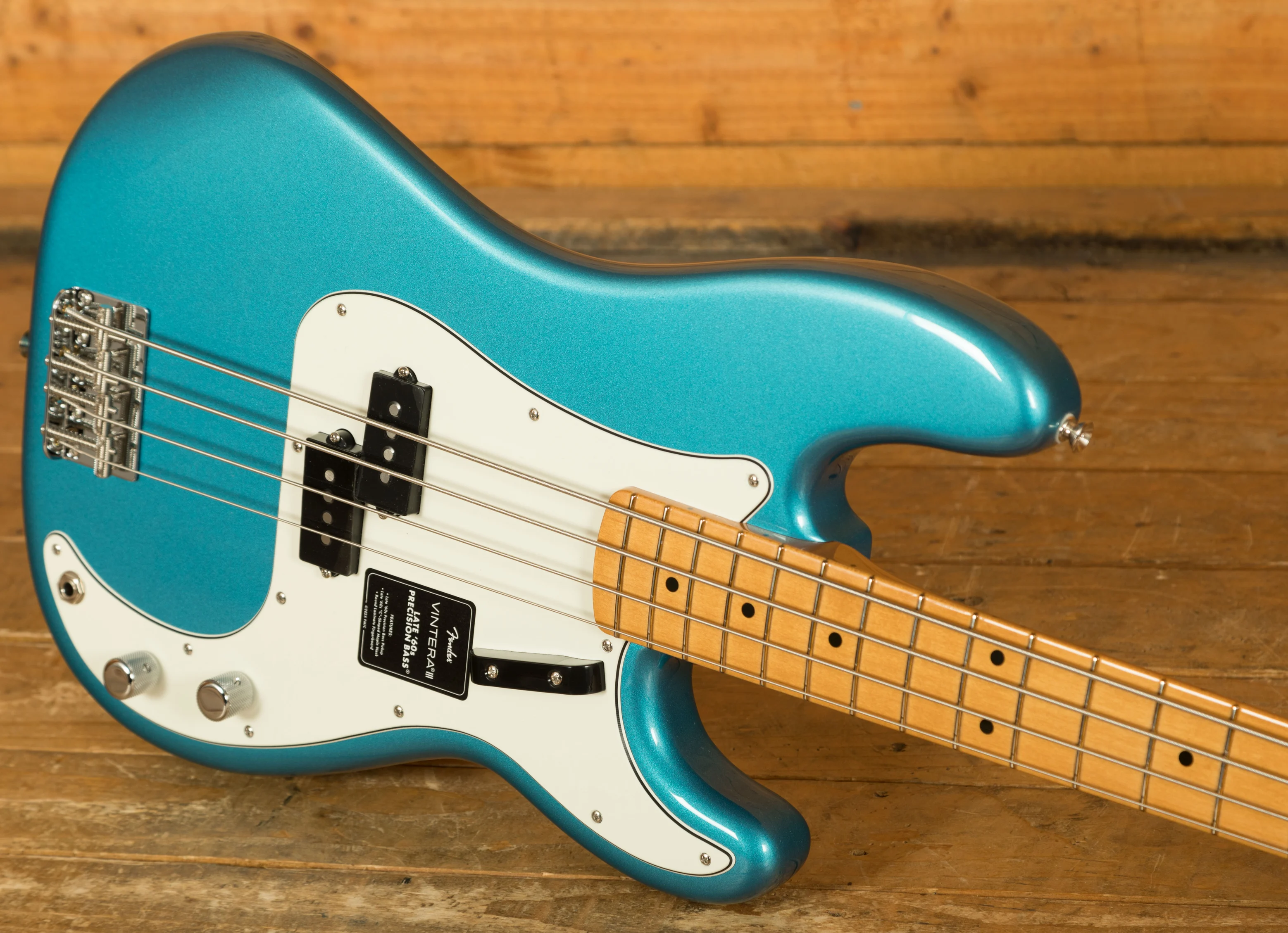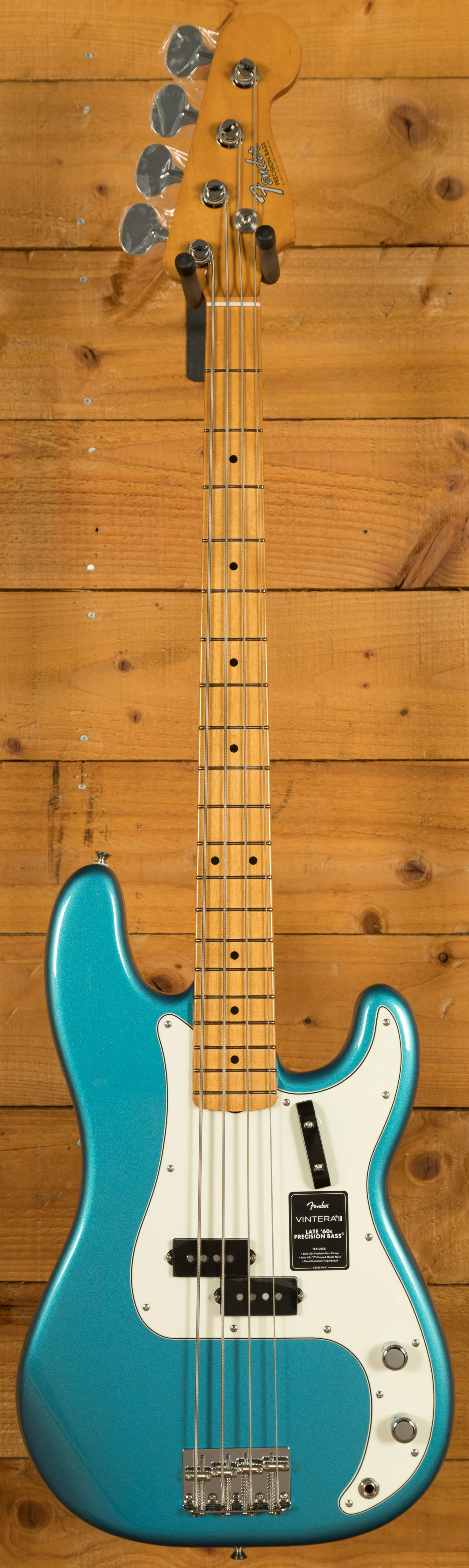 The Fender Vintera III Late '60s Precision Bass pairs an alder body with a maple neck and round-laminated maple fingerboard to deliver the unmistakable Fender tone - punchy, resonant, and crystal clear. Its authentic Late '60s "C"-shaped neck feels instantly familiar, while the 7.25" radius and vintage-tall frets provide a comfortable, vintage-style playing experience with added ease for bends and vibrato. A Late '60s-spec split pickup captures the punchiness and thump that defined the Precision Basses of this era - with exceptional note definition, low-end presence, and crisp articulation.