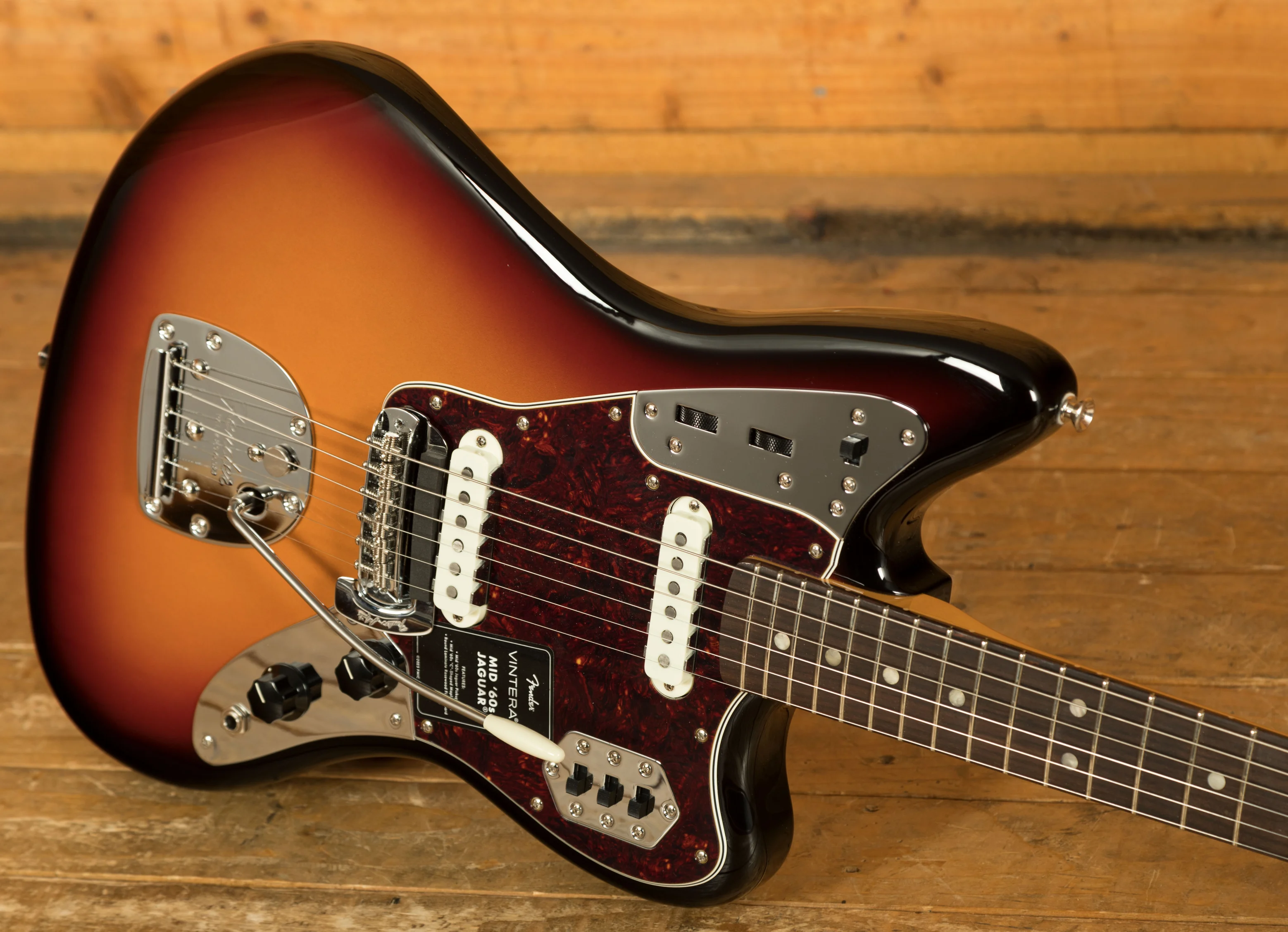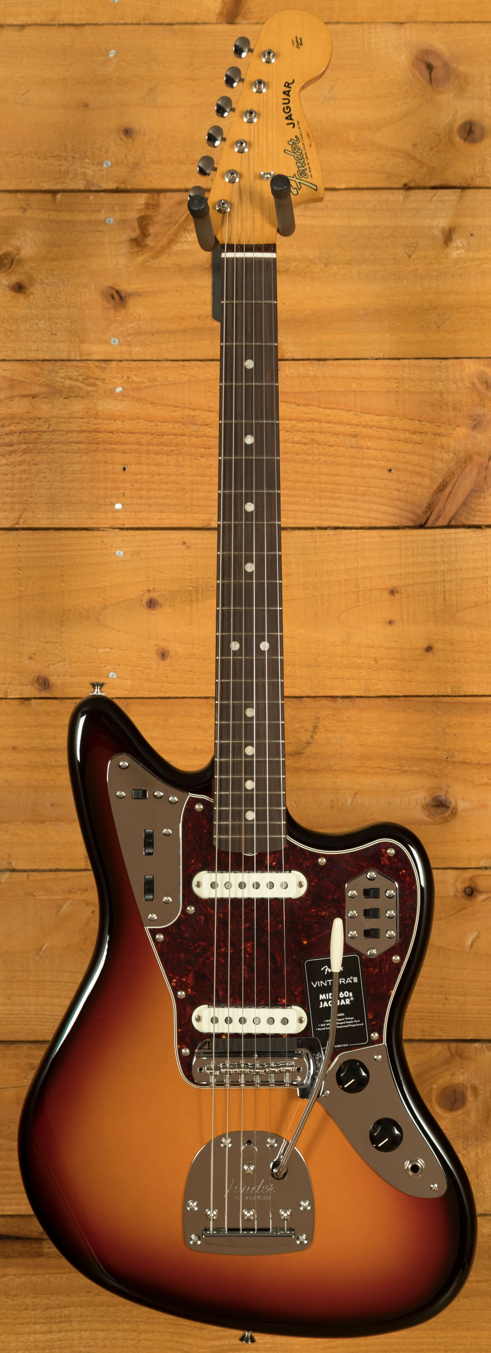 The Fender Vintera III Mid '60s Jaguar pairs an alder body with a maple neck and round-laminated rosewood fingerboard to deliver the unmistakable Fender tone - punchy, resonant, and crystal clear. Its authentic Mid '60s "C"-shaped neck feels instantly familiar, while the 7.25" radius and vintage-tall frets provide a comfortable, vintage-style playing experience with added ease for bends and vibrato. Two Mid '60s-spec pickups capture the shimmering attack that defined the Jaguars of this era - with shimmering attack, distinctive bite and sparkle, and a crisp, articulate sound. Includes controls for the iconic Lead/Rhythm circuit as well as a special bass-cut "Strangle" circuit switch.