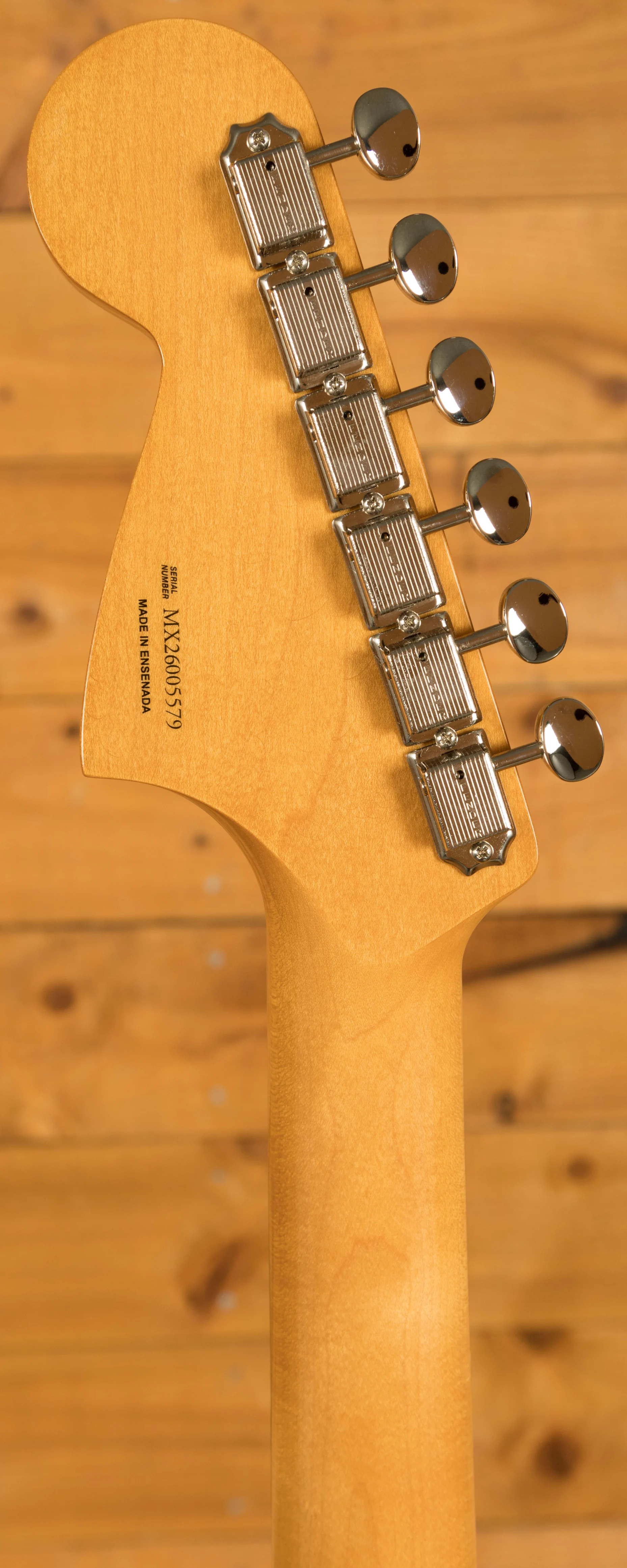 A vintage-style floating tremolo with 6-saddle adjustable bridge and integrated mute provide easy access to vibrato and flutters, while period-correct tuning machines combine traditional aesthetics with improved stability and accuracy. Altogether, this model delivers timeless looks, feel, and sound, staying true to one of Fender's most iconic eras.