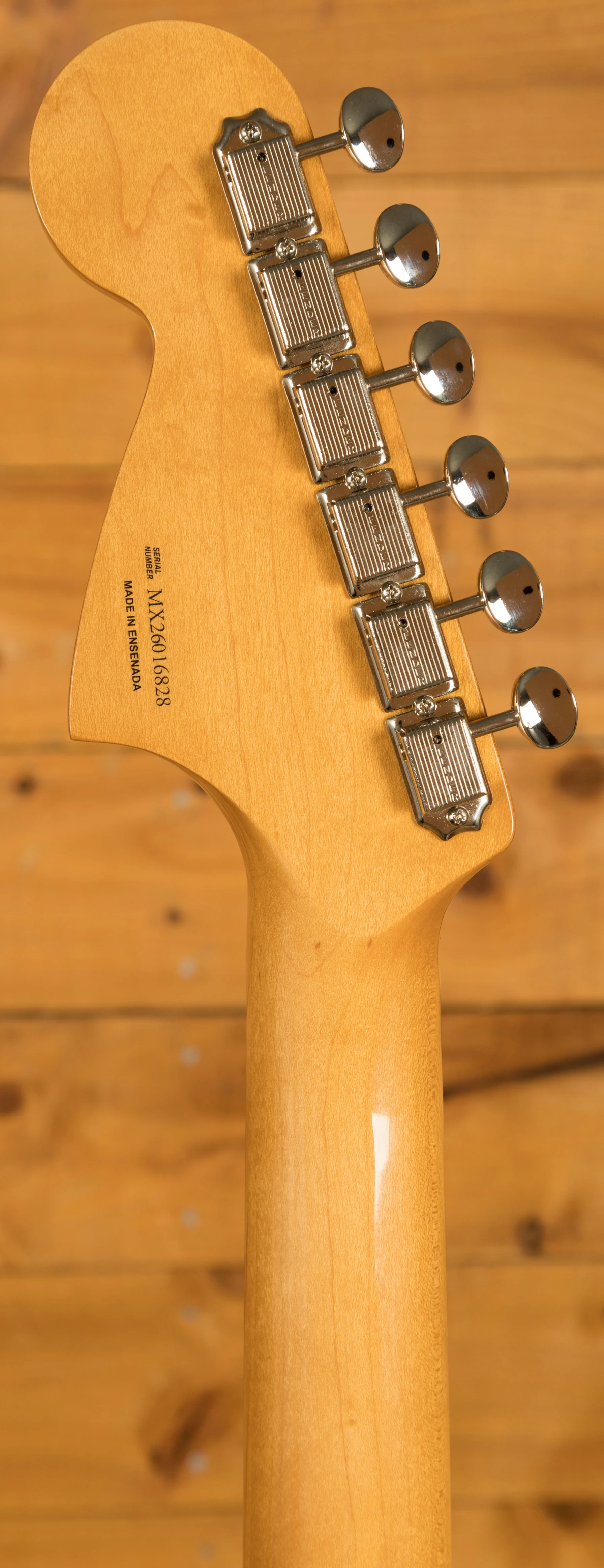 The Fender Vintera III Mid '60s Jaguar pairs an alder body with a maple neck and round-laminated rosewood fingerboard to deliver the unmistakable Fender tone - punchy, resonant, and crystal clear. Its authentic Mid '60s "C"-shaped neck feels instantly familiar, while the 7.25" radius and vintage-tall frets provide a comfortable, vintage-style playing experience with added ease for bends and vibrato. Two Mid '60s-spec pickups capture the shimmering attack that defined the Jaguars of this era - with shimmering attack, distinctive bite and sparkle, and a crisp, articulate sound. Includes controls for the iconic Lead/Rhythm circuit as well as a special bass-cut "Strangle" circuit switch.