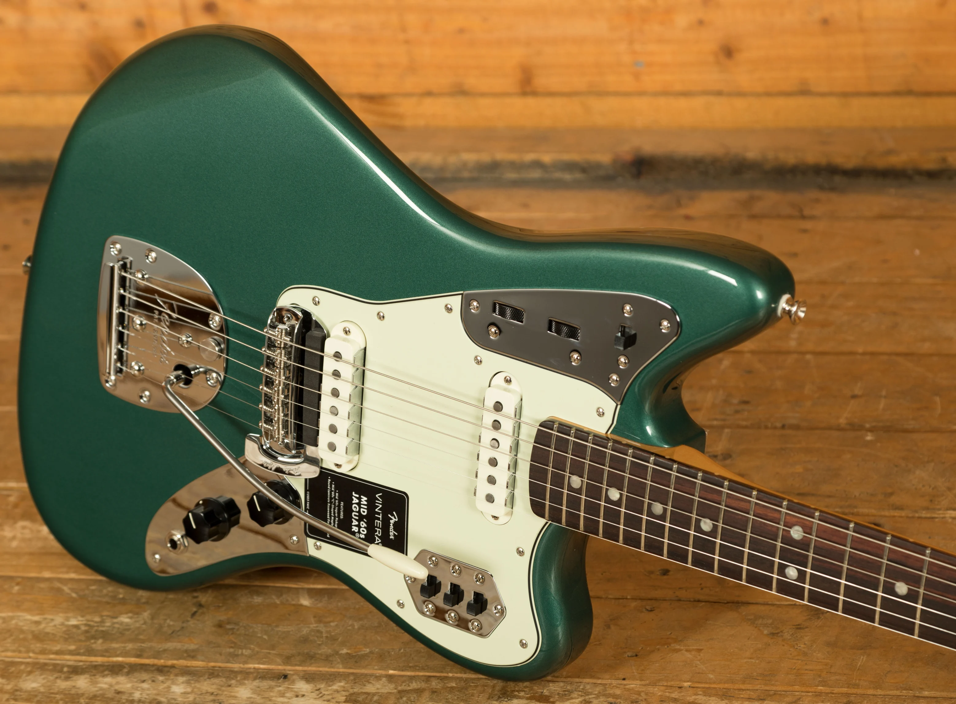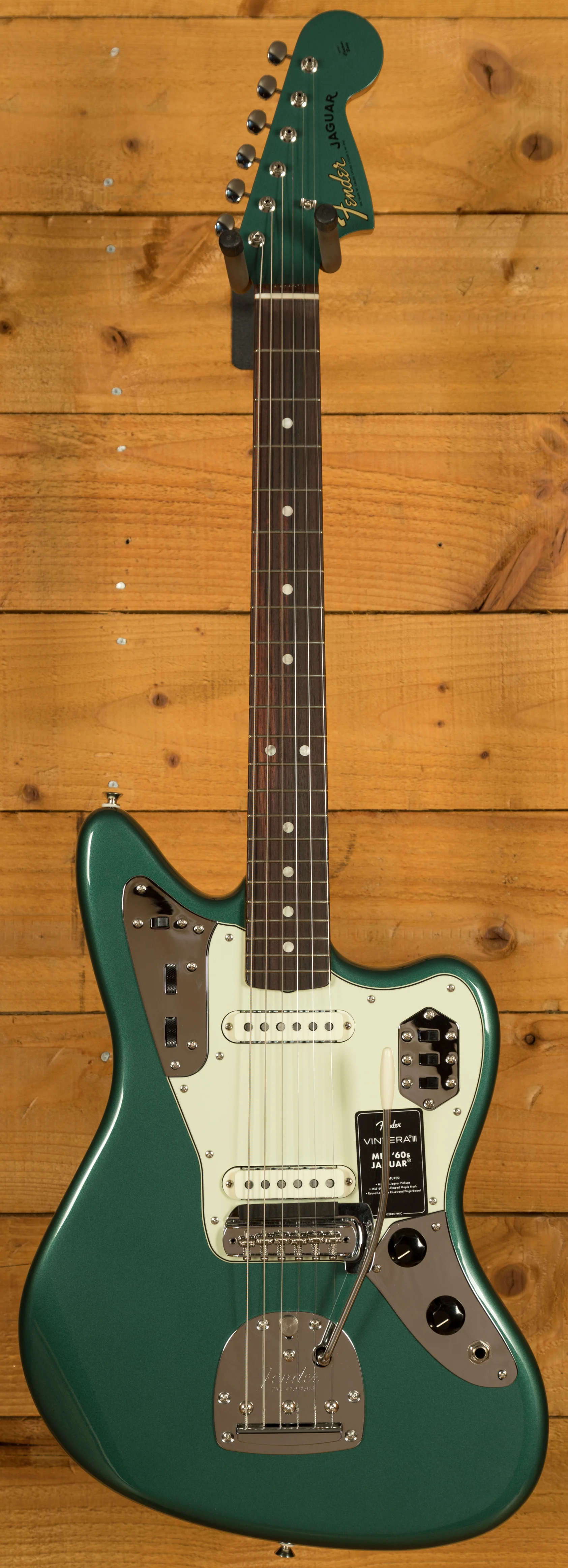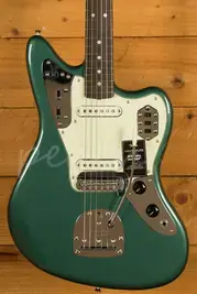 The Fender Vintera III Mid '60s Jaguar pairs an alder body with a maple neck and round-laminated rosewood fingerboard to deliver the unmistakable Fender tone - punchy, resonant, and crystal clear. Its authentic Mid '60s "C"-shaped neck feels instantly familiar, while the 7.25" radius and vintage-tall frets provide a comfortable, vintage-style playing experience with added ease for bends and vibrato. Two Mid '60s-spec pickups capture the shimmering attack that defined the Jaguars of this era - with shimmering attack, distinctive bite and sparkle, and a crisp, articulate sound. Includes controls for the iconic Lead/Rhythm circuit as well as a special bass-cut "Strangle" circuit switch.
