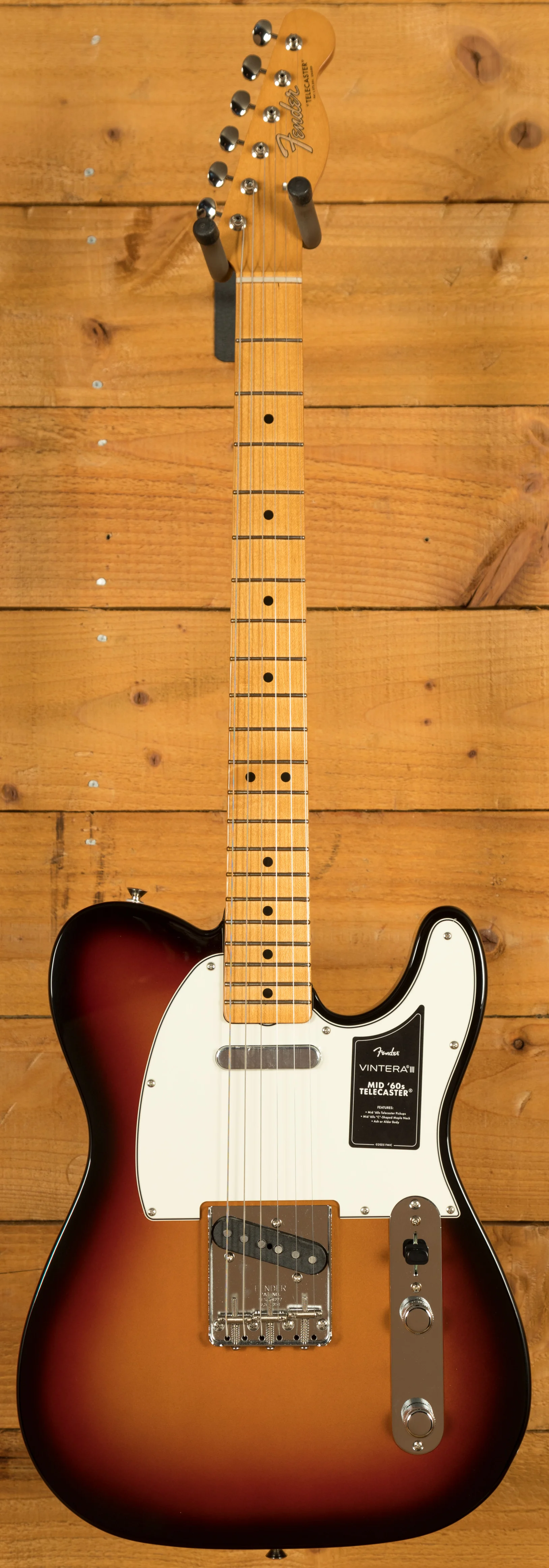 The Fender Vintera III Mid '60s Telecaster pairs an alder body with a maple neck and round-laminated maple fingerboard to deliver the unmistakable Fender tone - punchy, resonant, and crystal clear. Its authentic Mid '60s "C"-shaped neck feels instantly familiar, while the 7.25" radius and vintage-tall frets provide a comfortable, vintage-style playing experience with added ease for bends and vibrato. Two Mid '60s-spec pickups capture the bright and cutting tones that defined the Teles of this era - with crystal-clear chime and raw, steely twang.