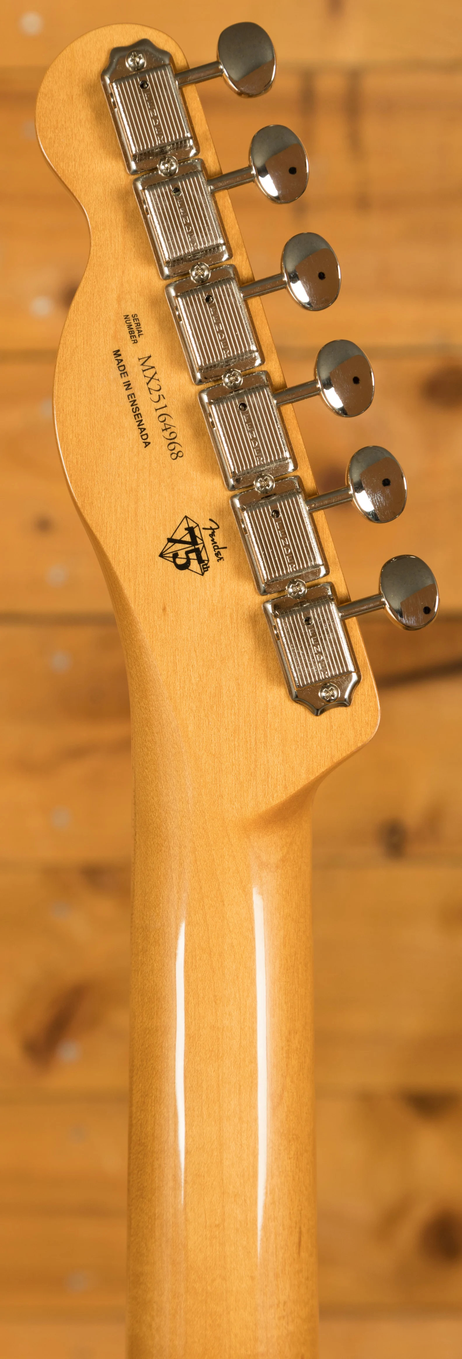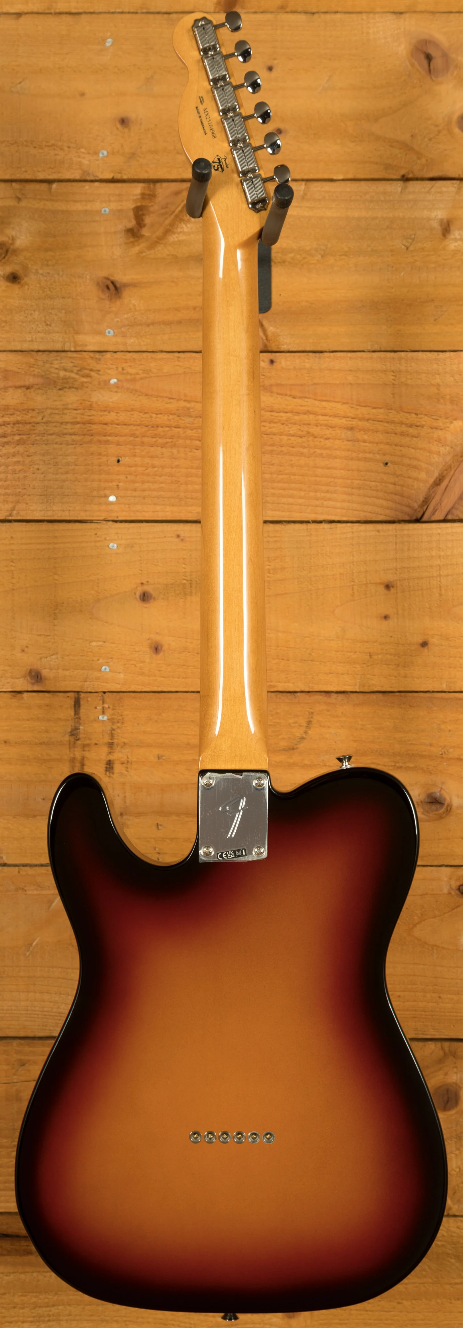 A vintage-style 3-saddle bridge with threaded steel saddles delivers authentic twang, while period-correct tuning machines combine traditional aesthetics with improved stability and accuracy. Altogether, this model delivers timeless looks, feel, and sound, staying true to one of Fender's most iconic eras.
