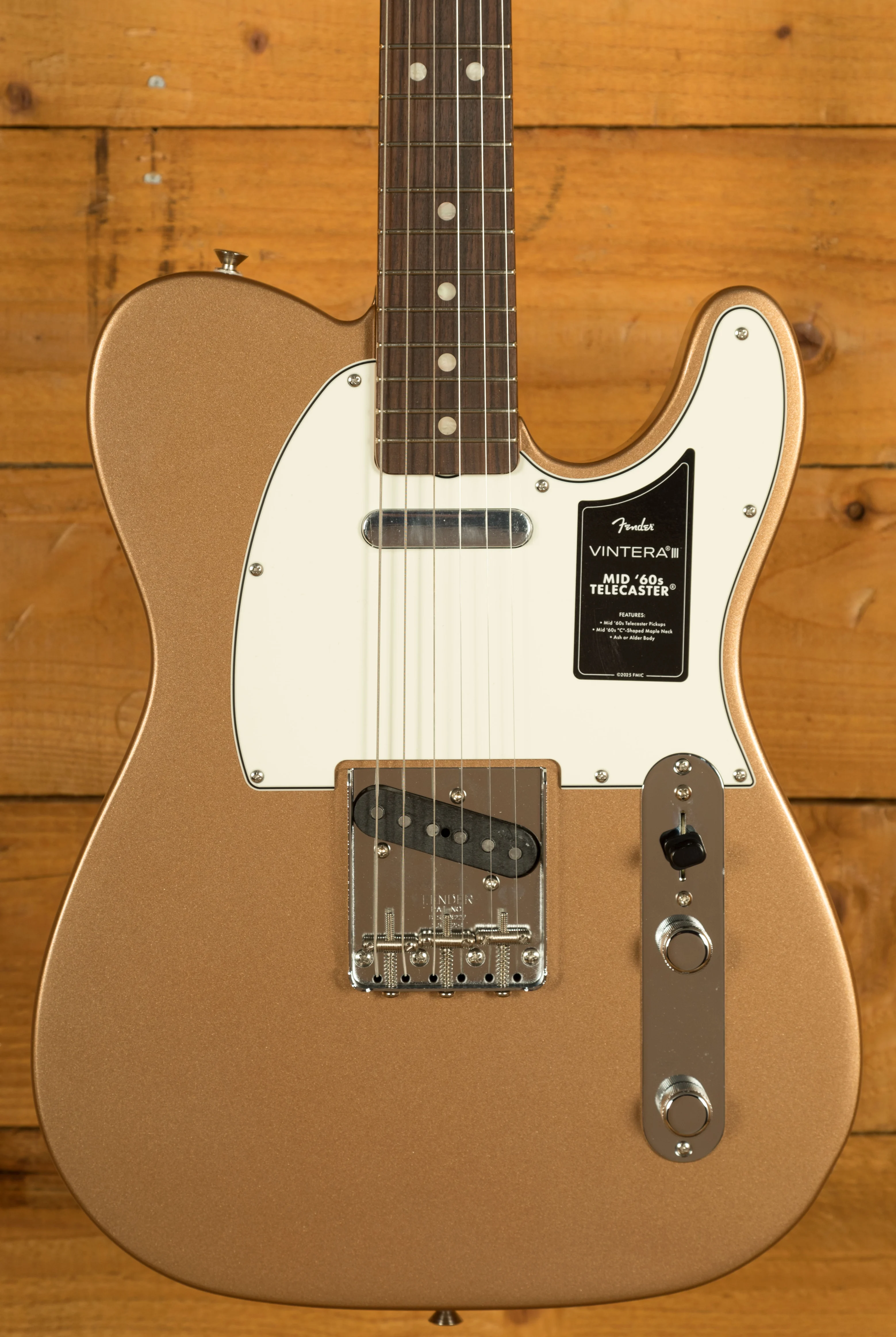 The Fender Vintera III Mid '60s Telecaster pairs an alder body with a maple neck and round-laminated rosewood fingerboard to deliver the unmistakable Fender tone - punchy, resonant, and crystal clear. Its authentic Mid '60s "C"-shaped neck feels instantly familiar, while the 7.25" radius and vintage-tall frets provide a comfortable, vintage-style playing experience with added ease for bends and vibrato. Two Mid '60s-spec pickups capture the bright and cutting tones that defined the Teles of this era - with crystal-clear chime and raw, steely twang.