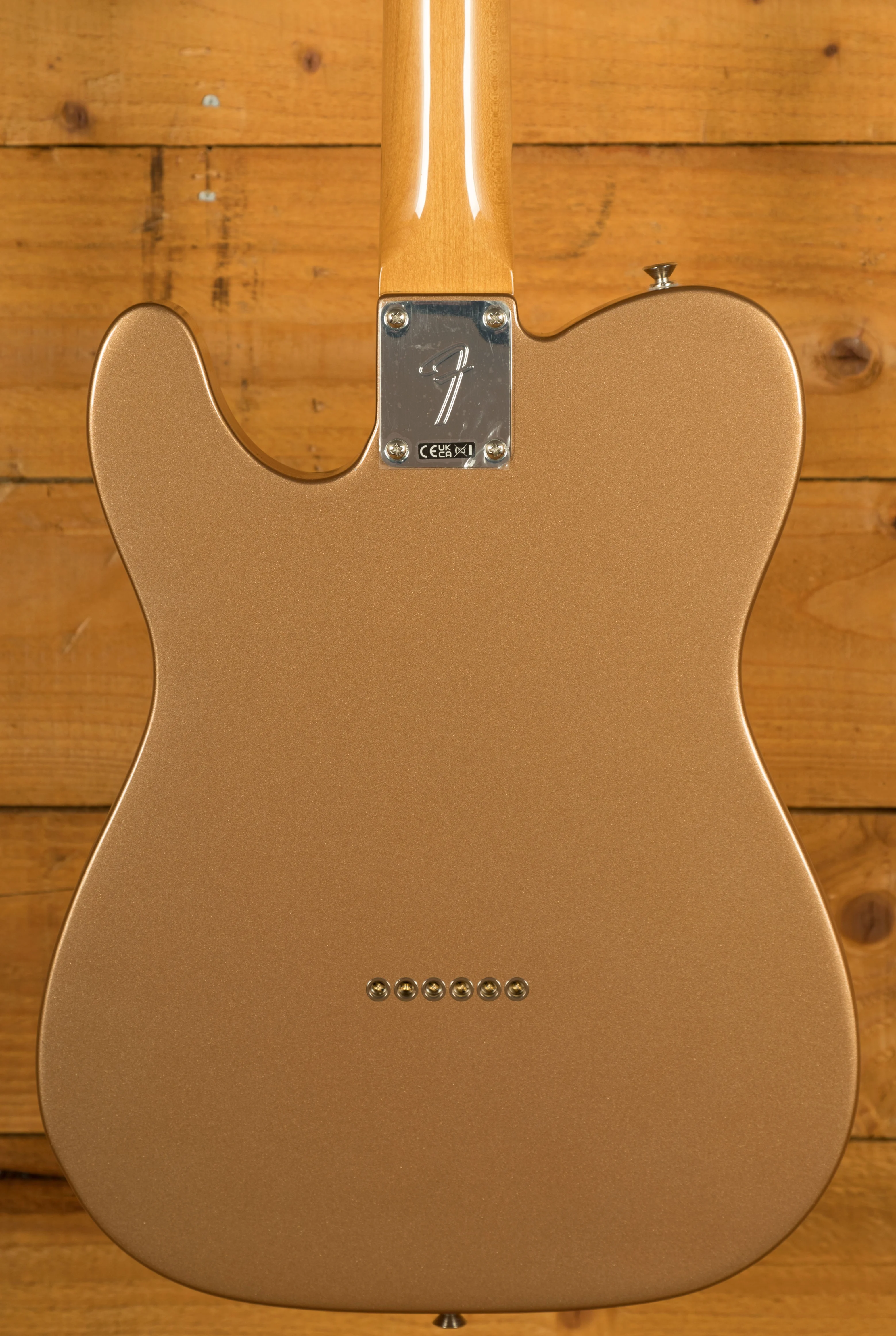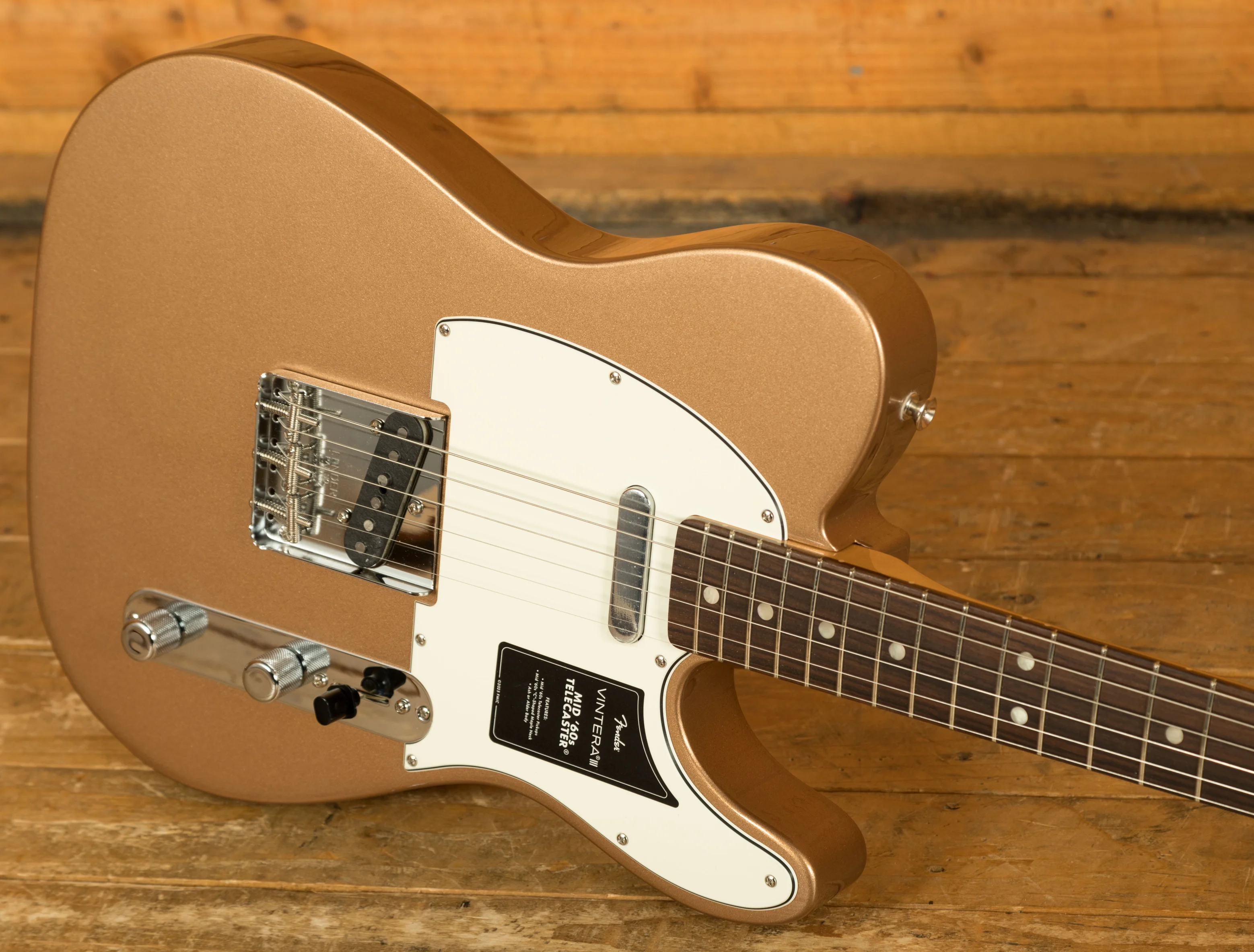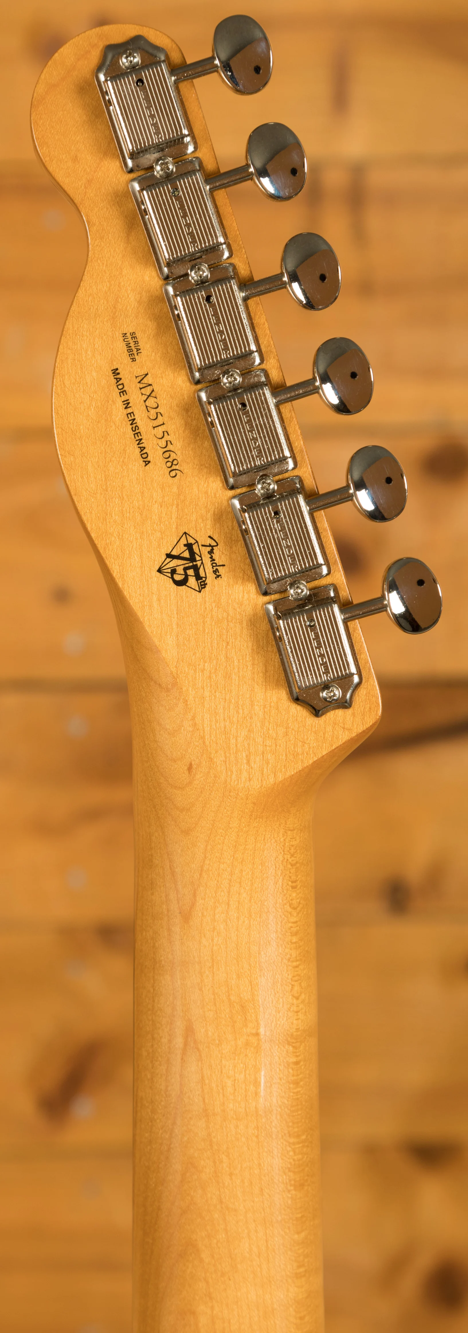 A vintage-style 3-saddle bridge with threaded steel saddles delivers authentic twang, while period-correct tuning machines combine traditional aesthetics with improved stability and accuracy. Altogether, this model delivers timeless looks, feel, and sound, staying true to one of Fender's most iconic eras.