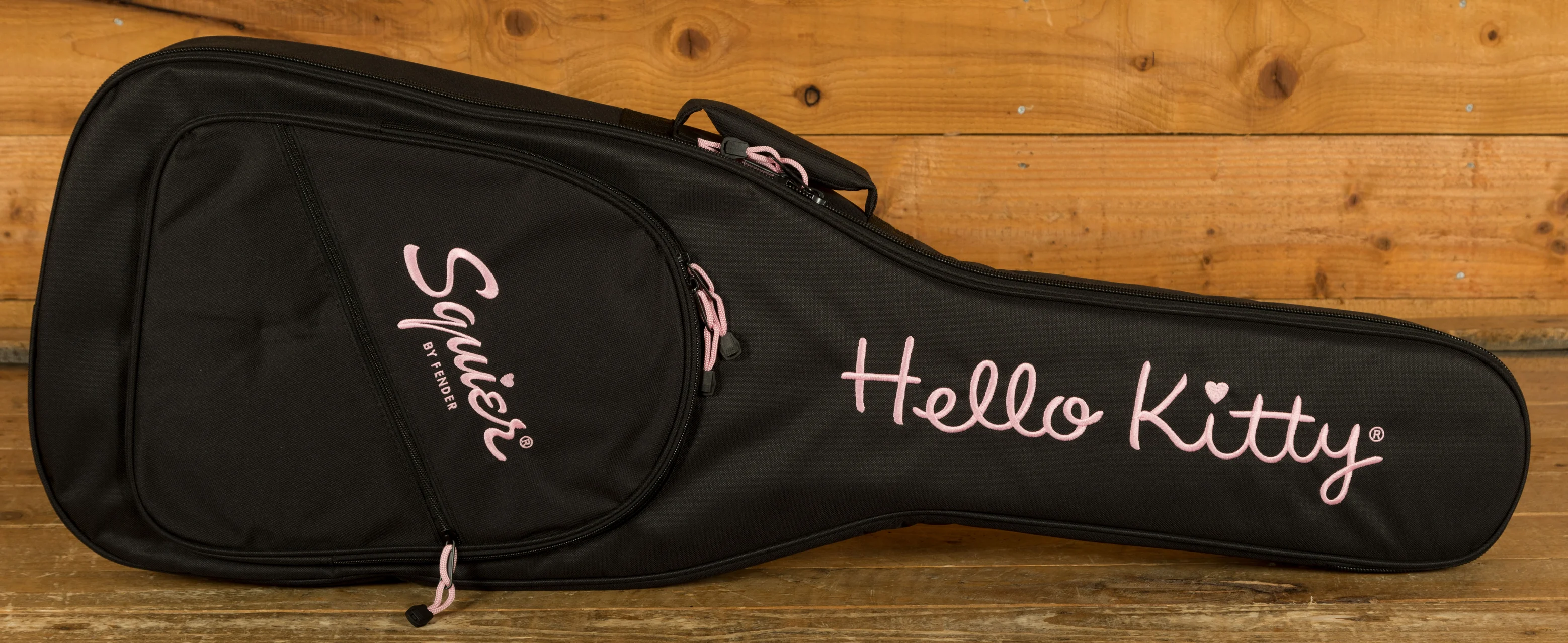 Complete with an eye-catching Hello Kitty pickguard, headstock decals, and matching body artwork, this guitar is bound to stand out. It also includes a custom Hello Kitty Deluxe gig bag in black with pink detailing, providing durable protection and easy transport. The Squier Hello Kitty Stratocaster is an instrument that combines style, quality, and playability, offering an ideal choice for fans, collectors, and budding musicians alike.