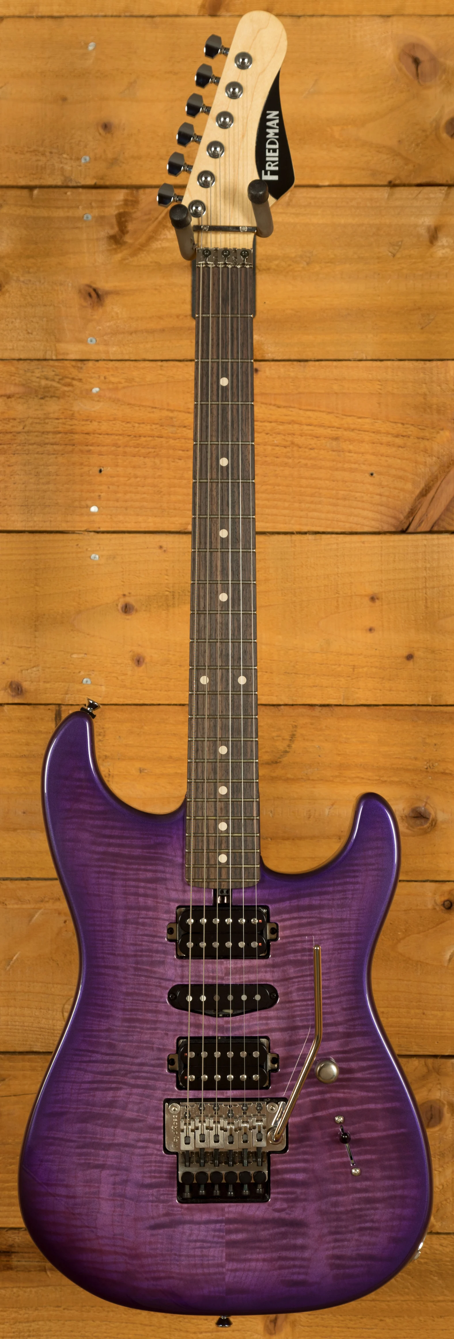 Loaded with a pair of Friedman Classic humbuckers and a Friedman Classic Single Coil this guitar offers extreme versatility. It manages to balance a clear top end and great string definition with a real aggressive midrange that sounds great when pushed hard. Finished off with Vintage style tuners and a Floyd Rose bridge this powerhouse rock machine is ready for life on the road!