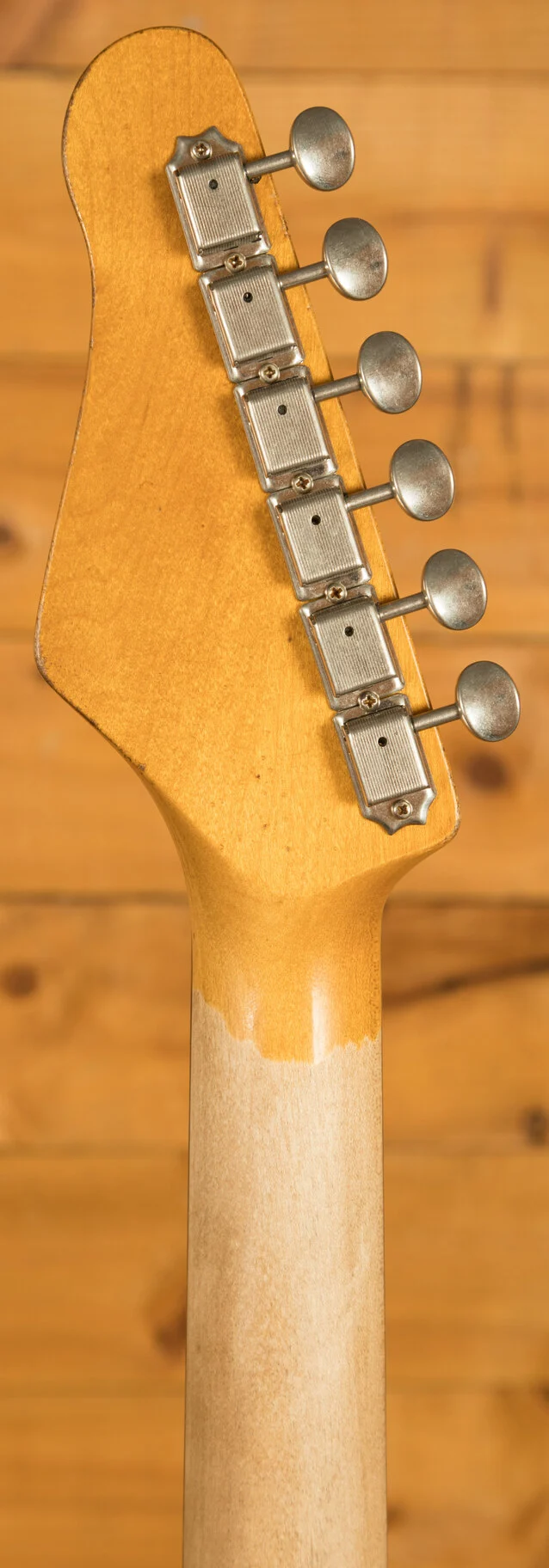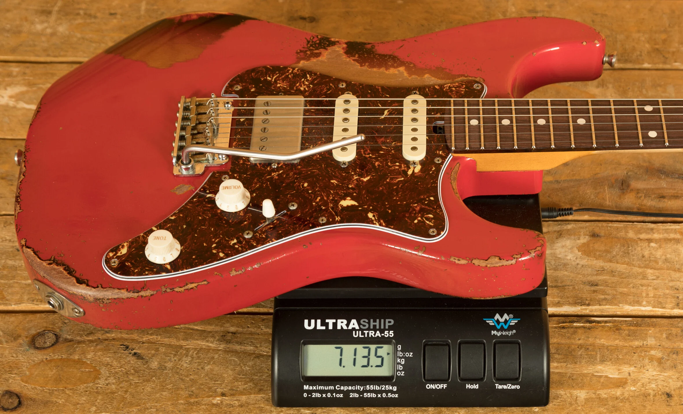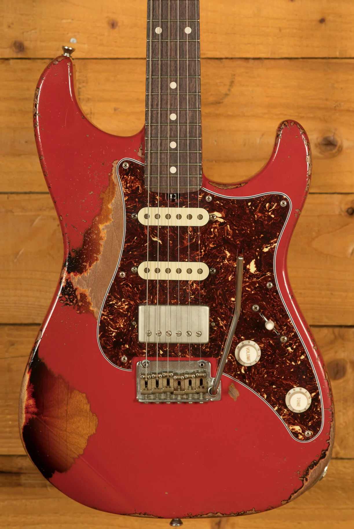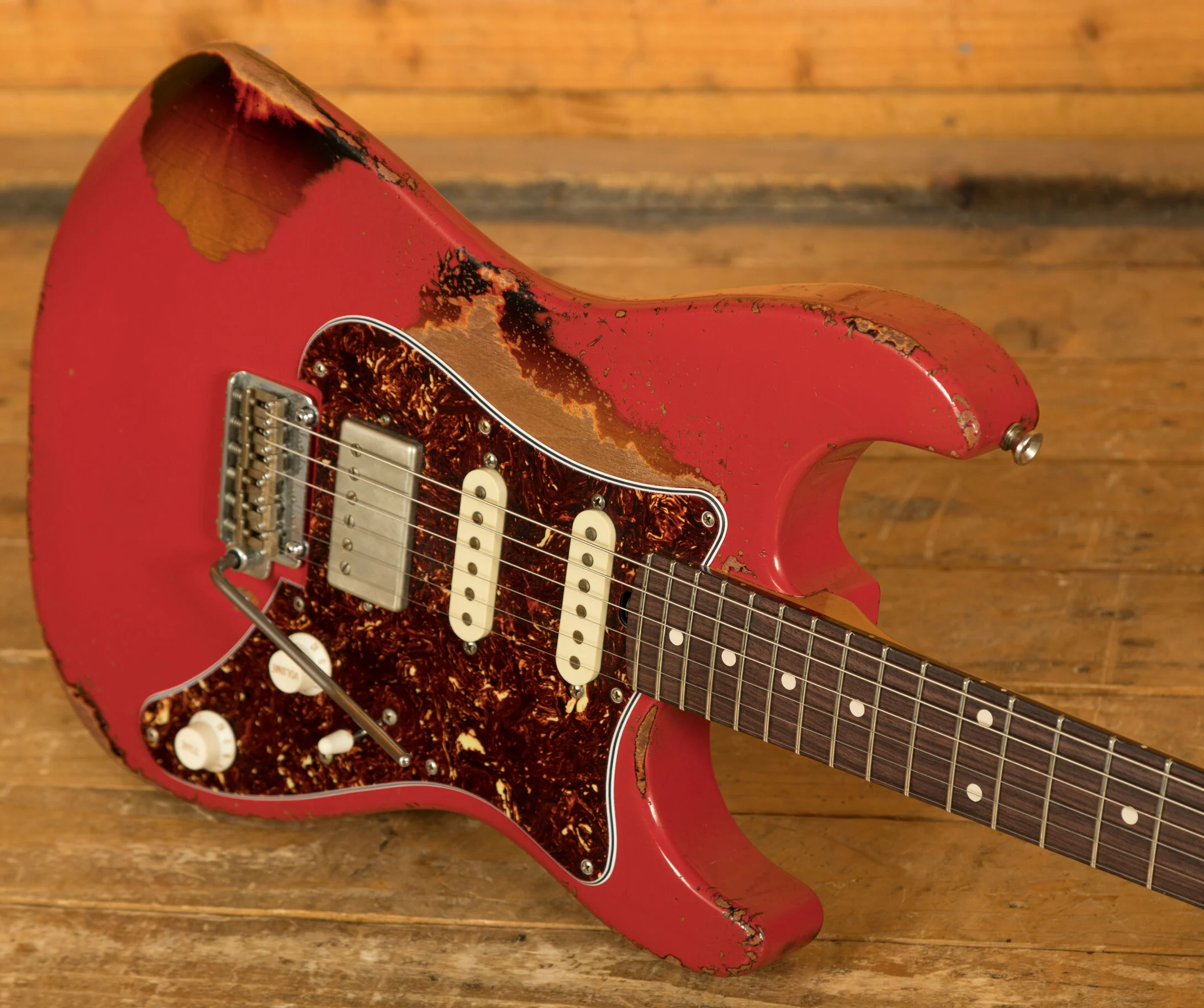 The Vintage S is a authentically aged, vintage inspired S-style guitar with a real classic rock vibe. The seriously cool Dakota Red over 3-Tone Burst finished alder body looks fresh from the road, with a medium/heavy ageing it looks mean and ready to rock. These updated Friedman Vintage S' are lovingly crafted by the incredible team over at Rock 'n' Roll Relics, they feel incredibly vintage and perfectly broken in.