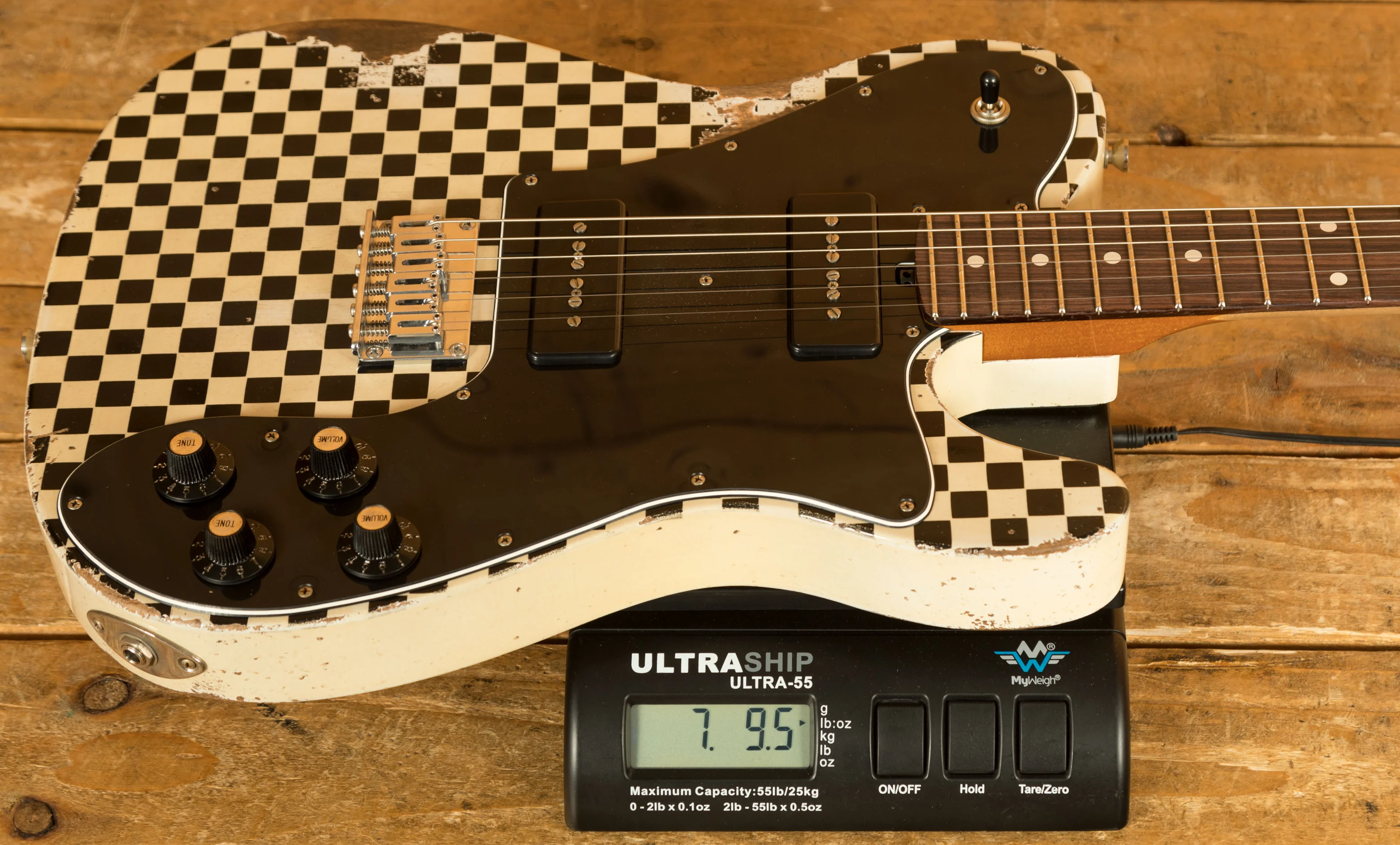 The Vintage T is a authentically aged, vintage inspired T-style guitar with a real classic rock vibe. The awesome Vintage White Checkerboard nitro finished alder body looks fresh from the road, with a medium/heavy ageing it looks mean and ready to rock. These updated Friedman Vintage Ts are lovingly crafted by the incredible team over at Rock 'n' Roll Relics, they feel incredibly vintage and perfectly broken in.