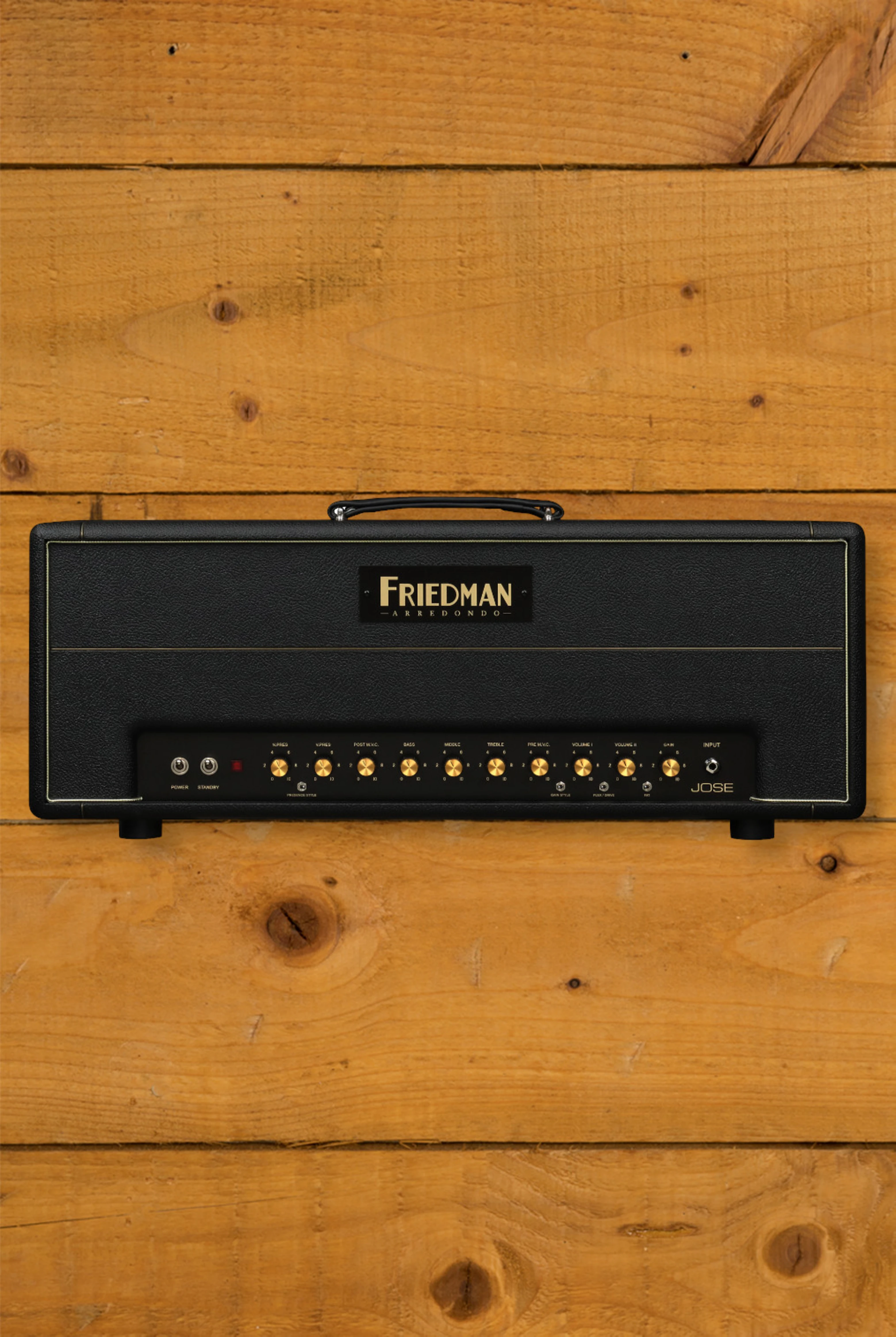The Friedman / Arredondo JOSE is a meticulously built tribute to the legendary Jose Arredondo, the modding mastermind who helped shape the golden age of high-gain tone. Developed with direct input from Jose's daughter, Marisol Arredondo, and brought to life by Dave Friedman himself, this head encapsulates the spirit of the original Jose mods with exacting attention to detail and unmatched sonic performance.