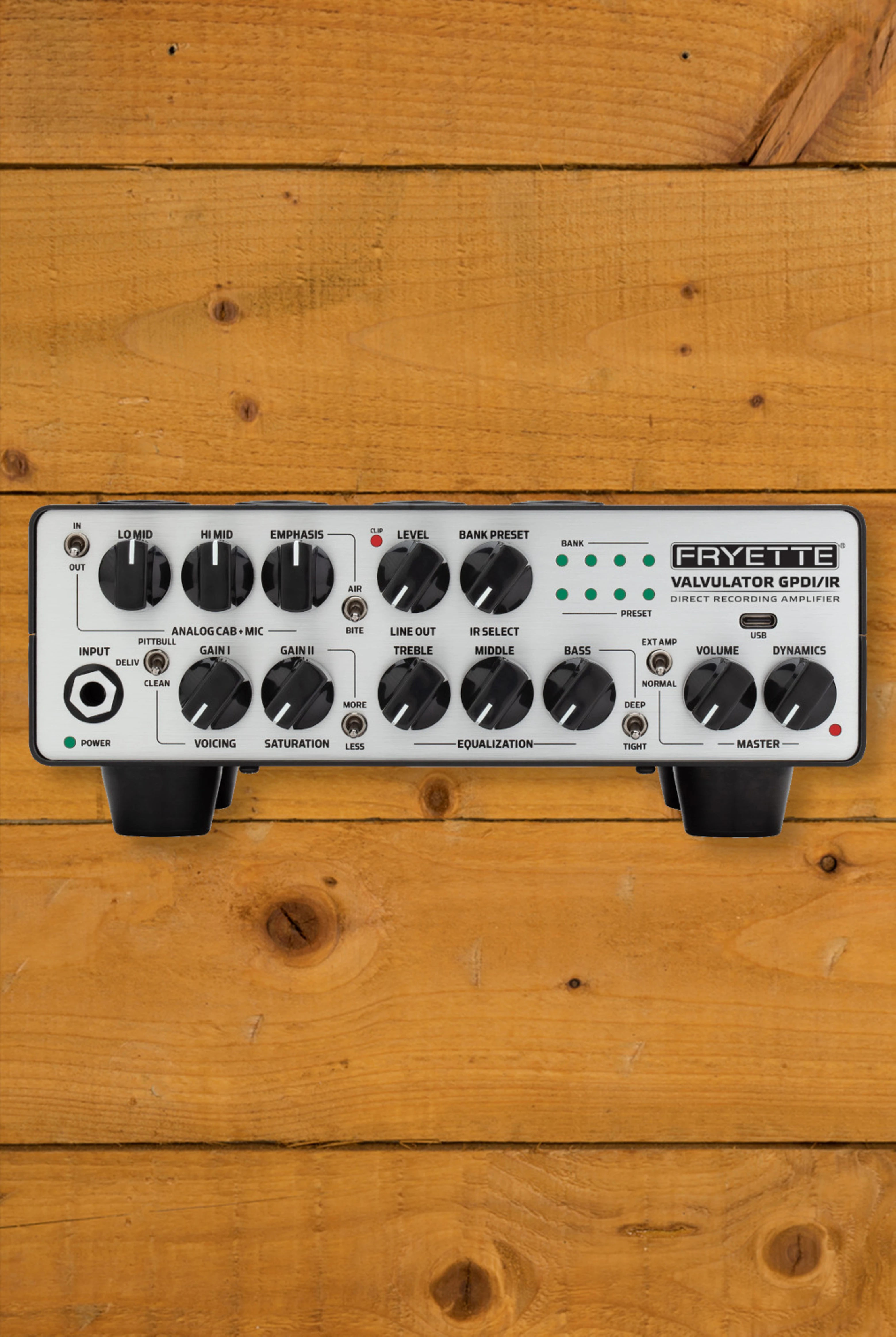 The Fryette Valvulator GPDI/IR is a professional-grade direct recording amplifier designed to deliver authentic tube amp tone in a compact and versatile format. Featuring an all-tube, one-watt amplifier, it provides the dynamics and response of a traditional tube amp, making it an ideal solution for recording, silent practice, and live performance. It can be used with a speaker cabinet, headphones, a mixing console, or even integrated into an existing amp rig, ensuring seamless operation in any setup.