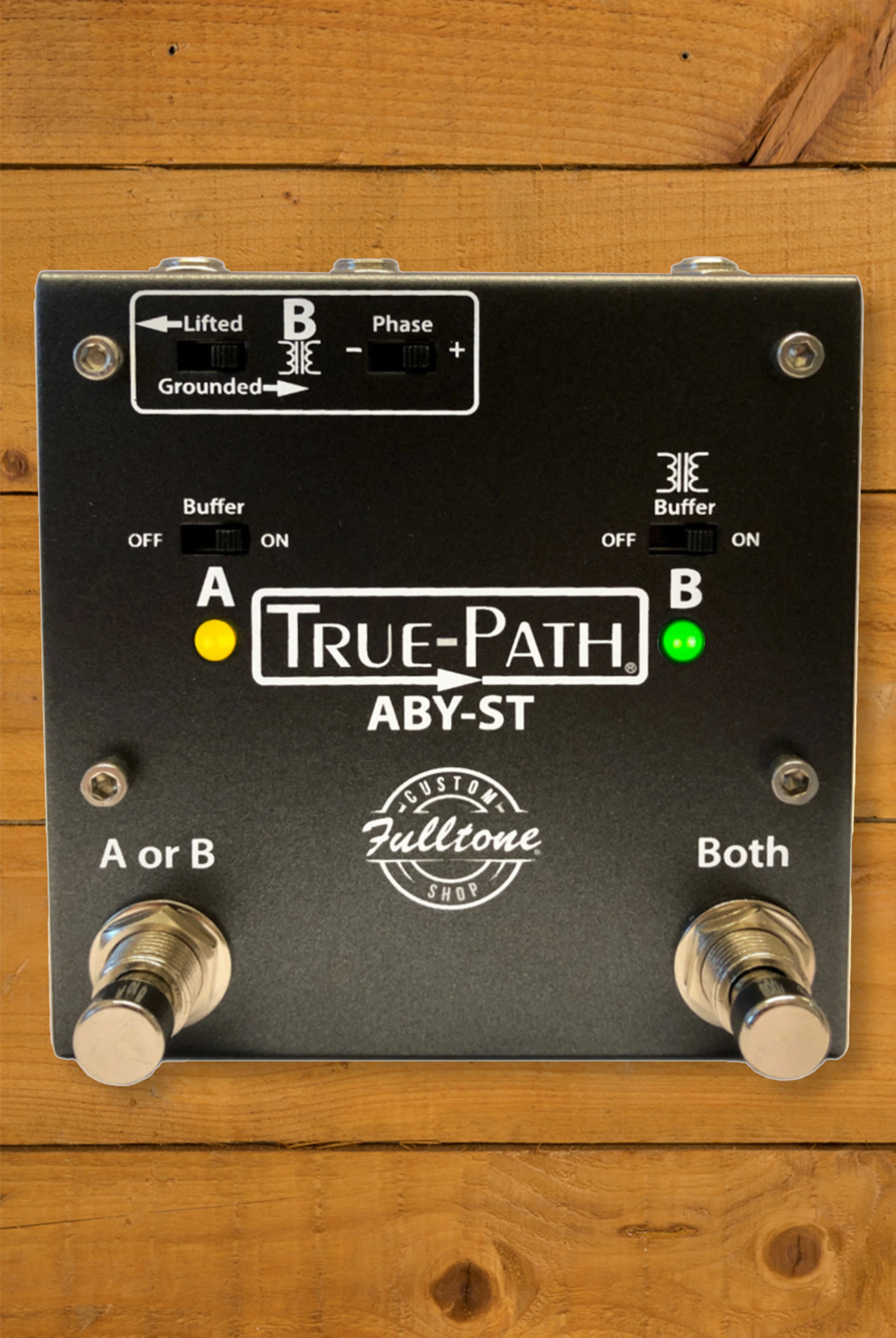 Each channel has switchable JFET Buffers to drive long lengths of cables without any tone loss. Fuzz pedals like to be hit with high impedance signal like your pickups produce. Buffers are low impedance, so if you are a Fuzz connoisseur you simply turn off the buffer on the ABY channel that goes to your fuzzes