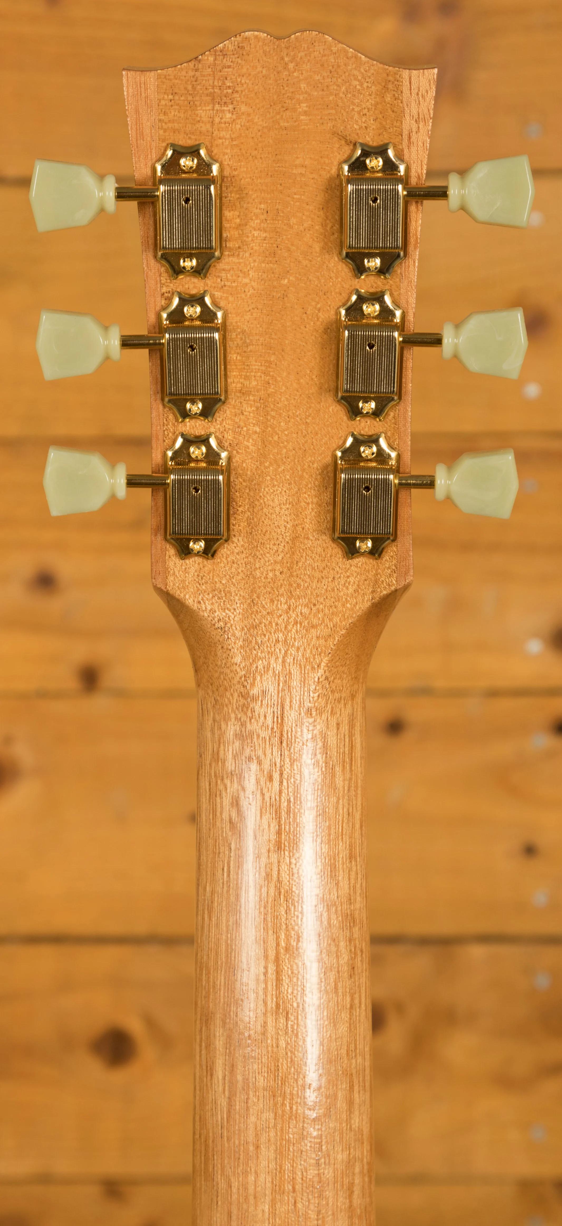Other notable features include the open slot bridge with mother-of-pearl Maltese crosses inlays, Gotoh Keystone tuning machines for precise tuning stability, and a thin finish nitrocellulose VOS (Vintage Original Spec) finish. The guitar comes with a period-correct case and a Gibson accessory kit. The 1952 J-185 is strung with gauges .012-.053.